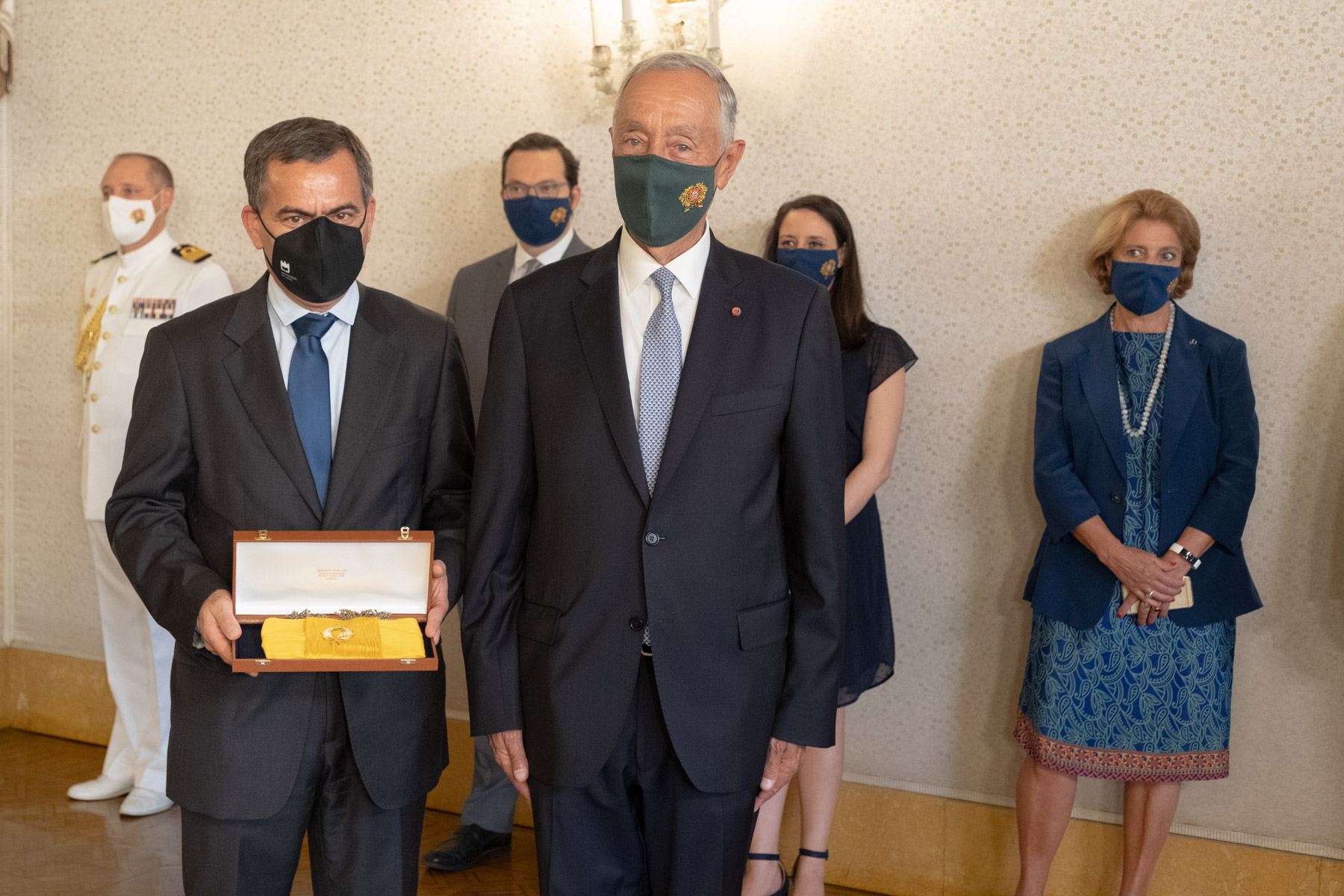 Na cerimónia restrita realizada no Palácio de Belém, receberam as insígnias pelas instituições, José Arménio Neno, Presidente da Direção da Associação Escola 31 de Janeiro e Artur Silva, Presidente da SPQ.