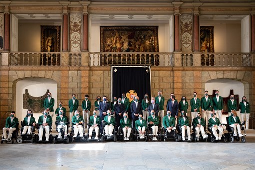 O Presidente da República felicita o atleta Miguel Monteiro pela conquista da medalha de bronze na prova de Lançamento do peso F40.