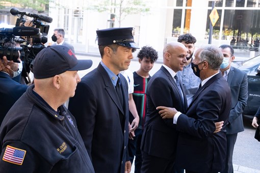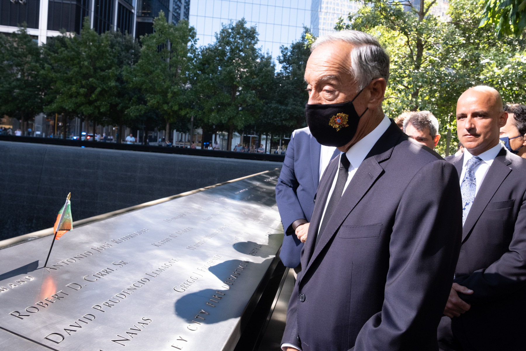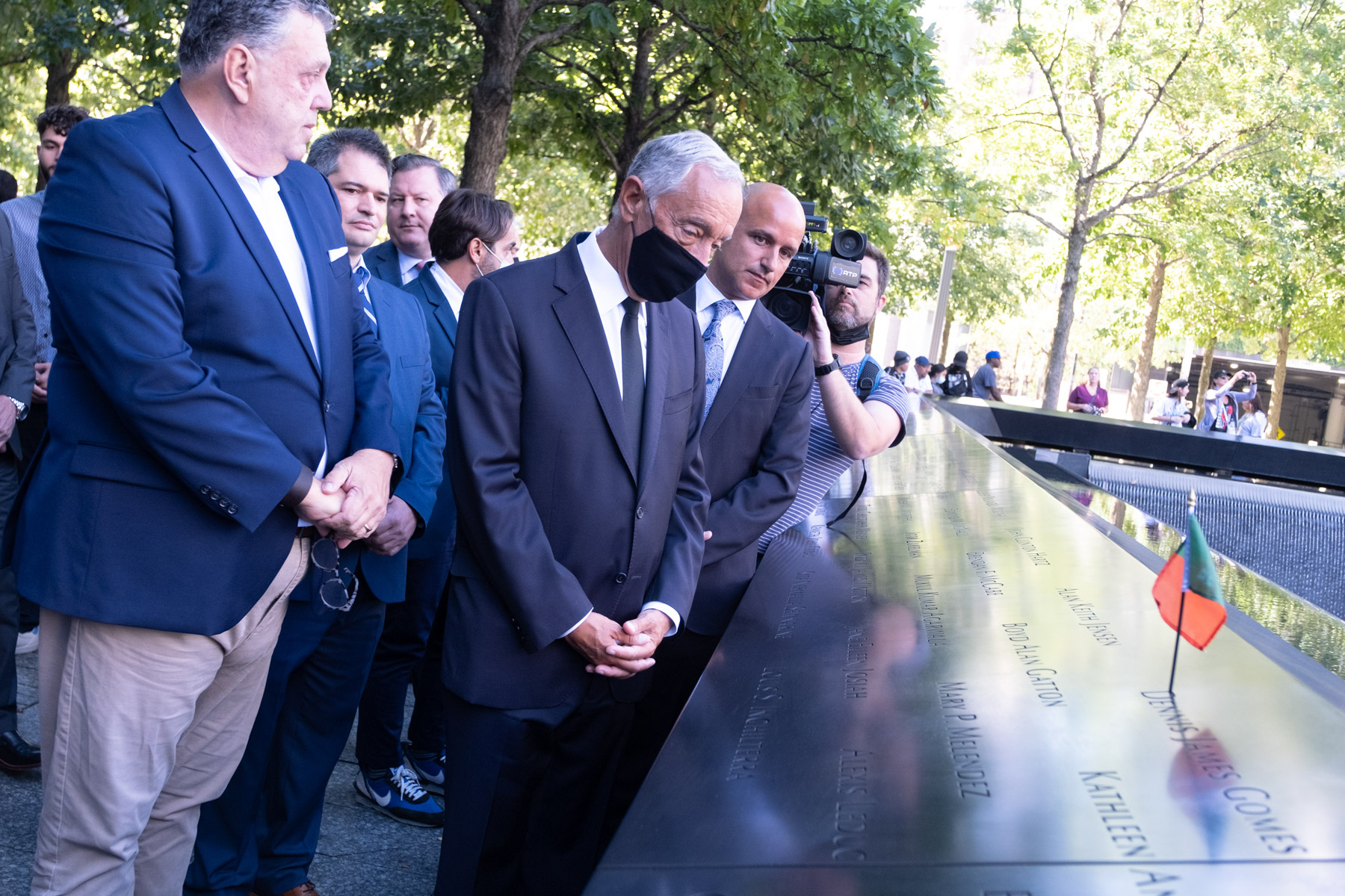 Recebido pela Cônsul-Geral de Portugal em Nova Iorque, Maria de Fátima Mendes, pelo Cônsul-Geral de Portugal em Newark, Pedro Monteiro, e por portugueses e luso-americanos que estiveram envolvidos nas operações de salvamento e mais tarde na reconstrução, o Presidente da República percorreu o Memorial e prestou homenagem junto a cada um dos nomes dos compatriotas que morreram nesse dia, quatro na torre sul e cinco na torre norte.