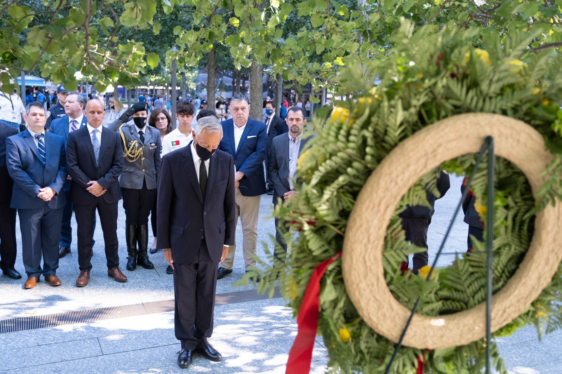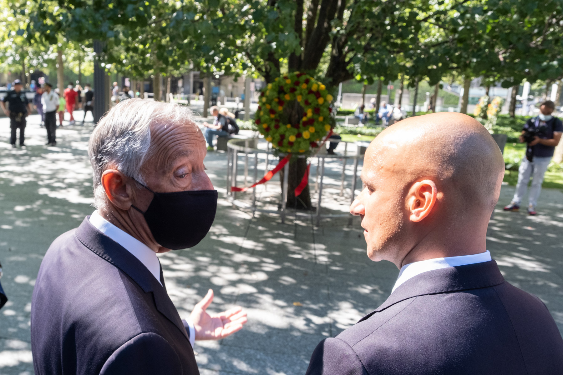 O Presidente da República visitou o Memorial 9/11, em Nova Iorque, onde prestou homenagem às vítimas dos atentados do 11 de setembro, em particular os portugueses e luso-descendentes que morreram nesses ataques terroristas, depositando uma coroa de flores junto à “Survivor Tree”.