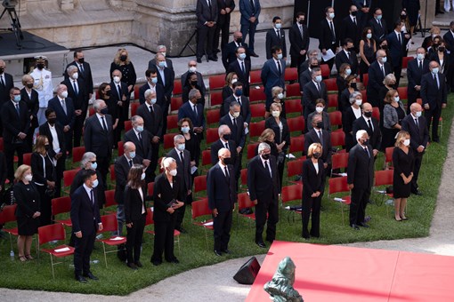 O Presidente Marcelo Rebelo de Sousa prestou homenagem ao Presidente Jorge Sampaio na Sessão Evocativa que decorreu, em sua honra, no Mosteiro dos Jerónimos.