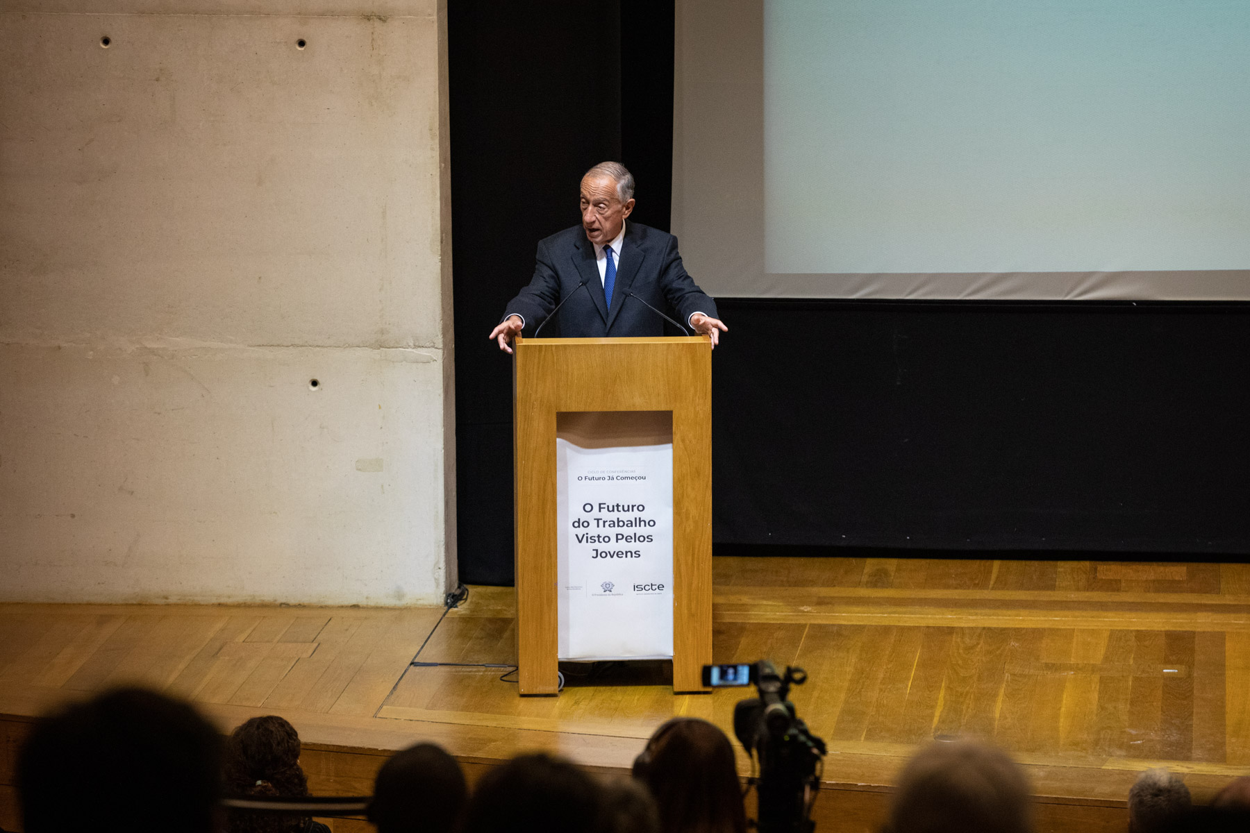 O Presidente da República presidiu, no Grande Auditório do ISCTE-IUL em Lisboa, à Sessão de encerramento da Conferência “O Futuro do Trabalho visto pelos Jovens”, integrada na 1ª edição do ciclo de conferências anuais “O Futuro Já Começou”, uma parceria ISCTE - Presidência da República.