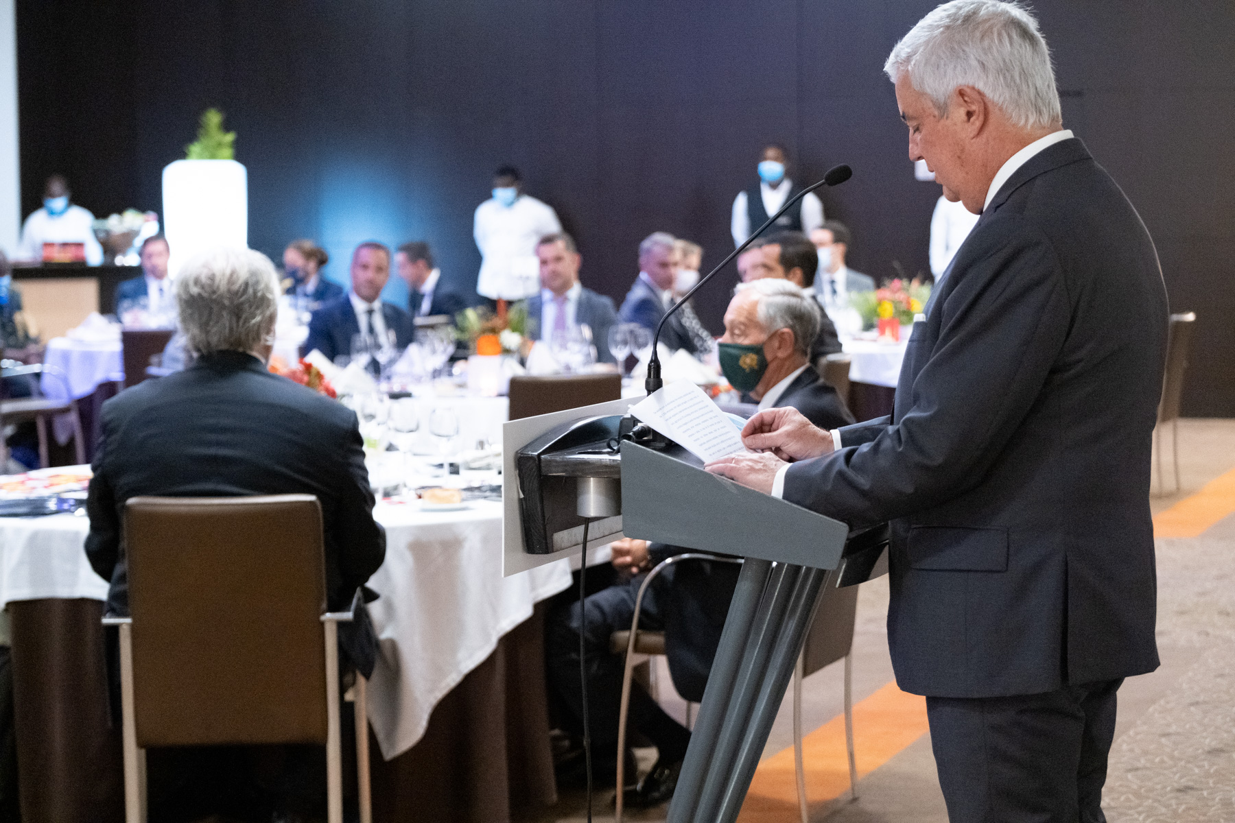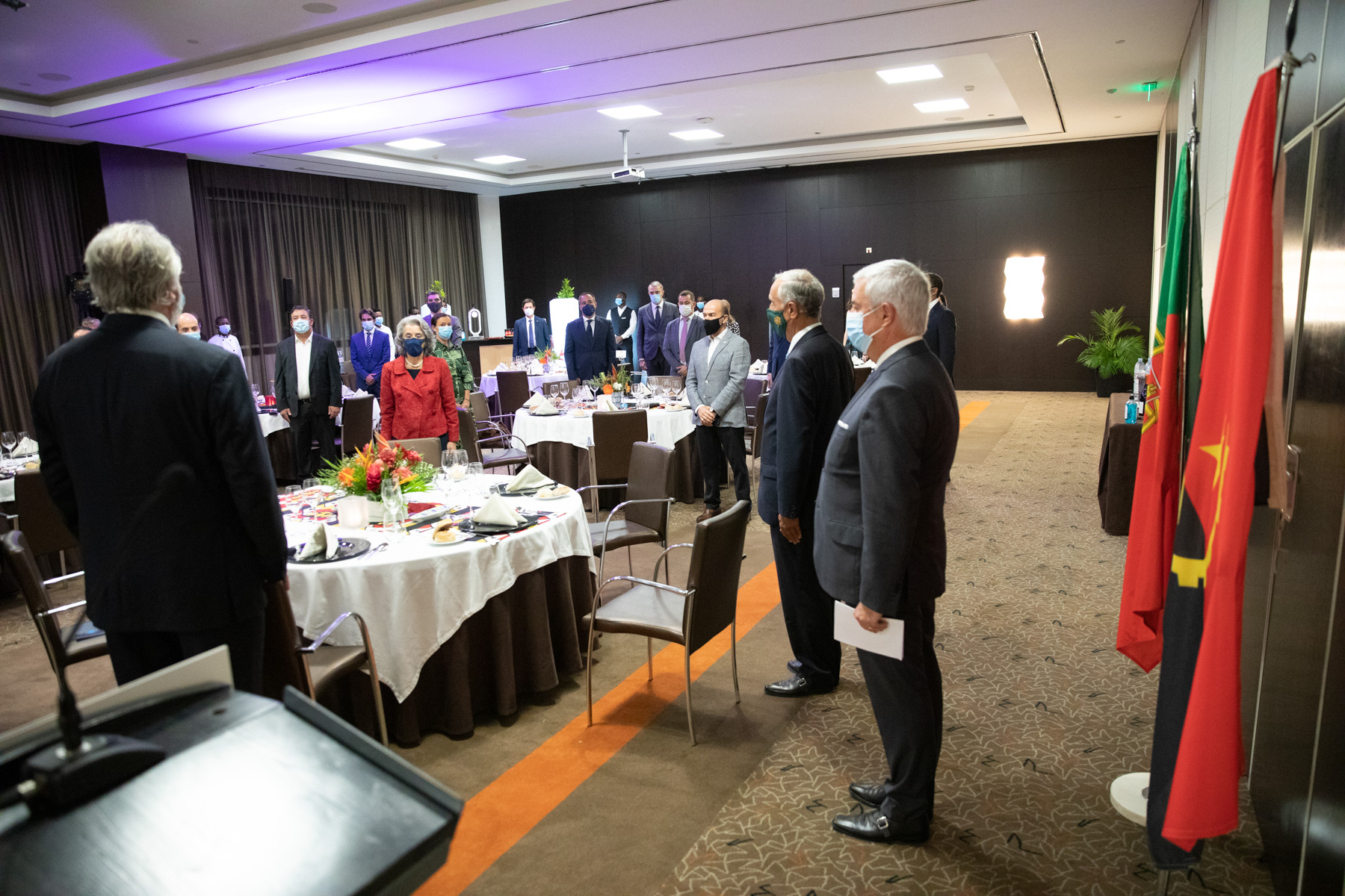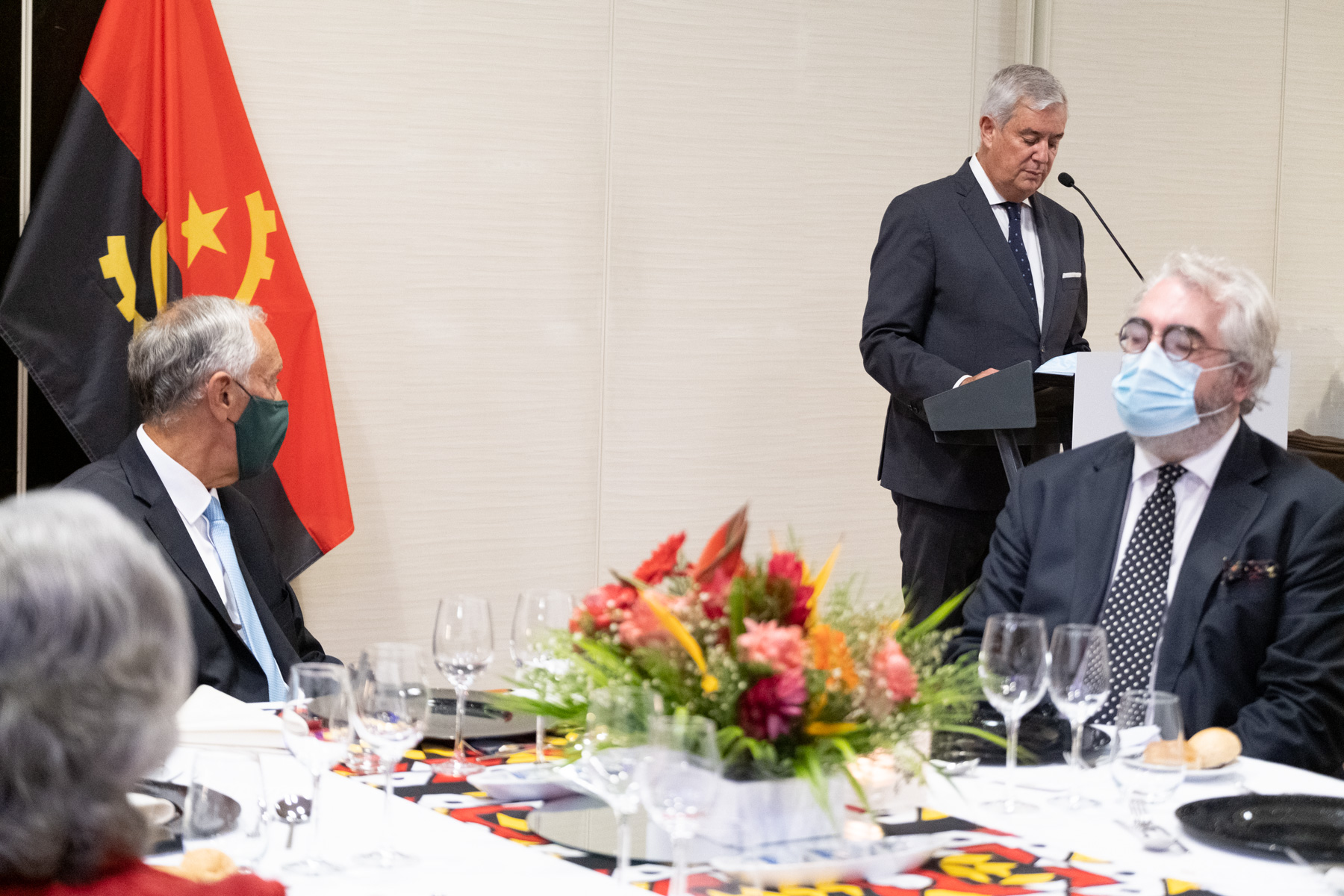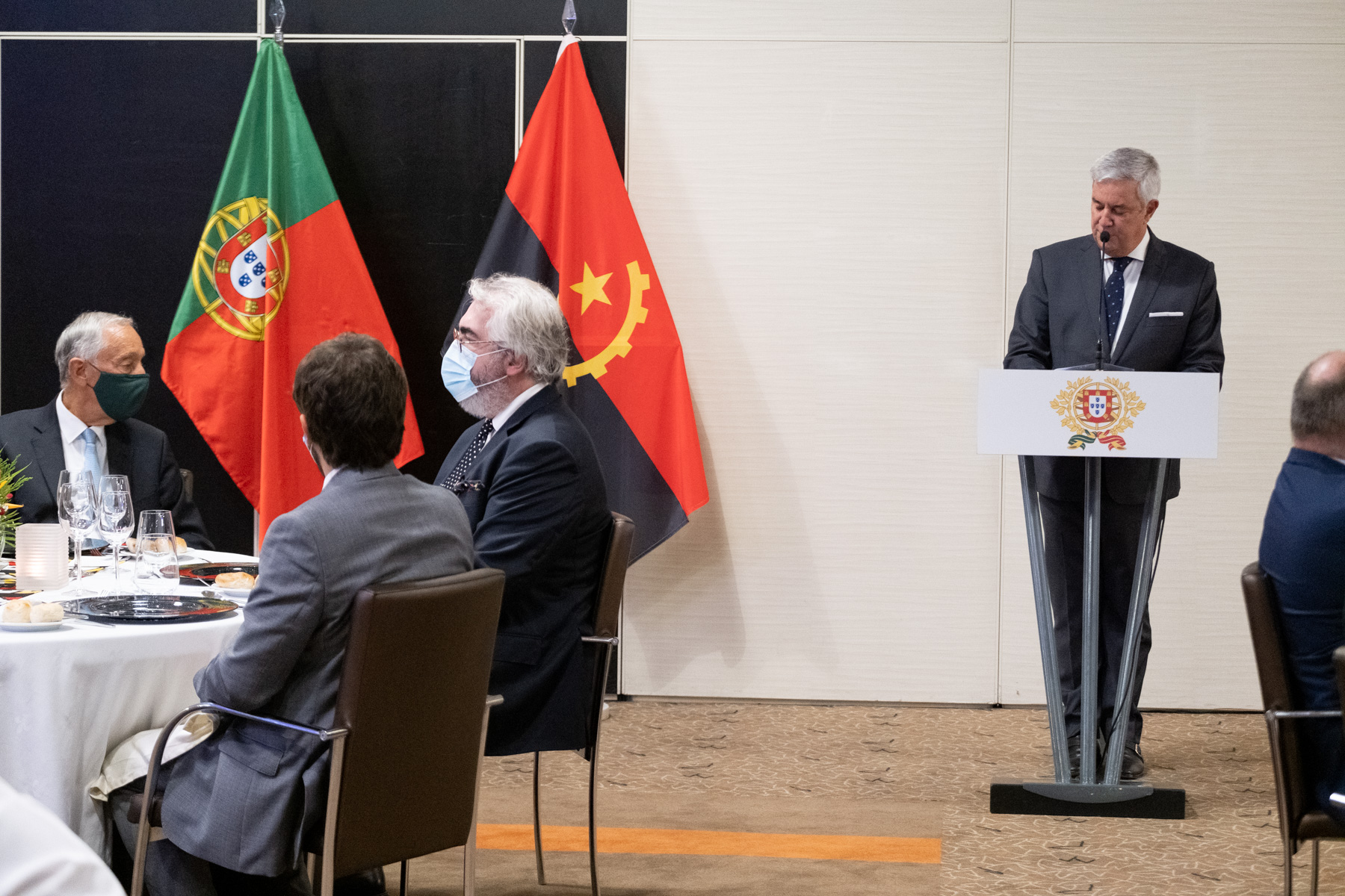 O Presidente da República acompanhado pelo Embaixador de Portugal em Luanda, Pedro Pessoa e Costa, reuniu em jantar conferência representantes da Comunidade empresarial em Angola.