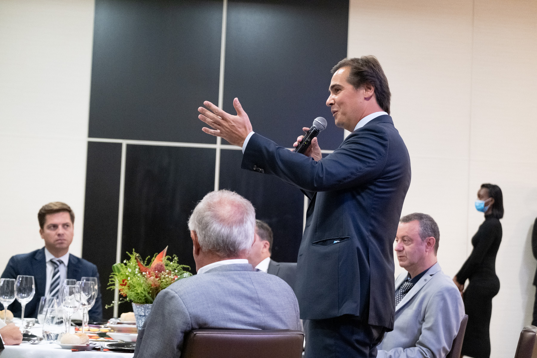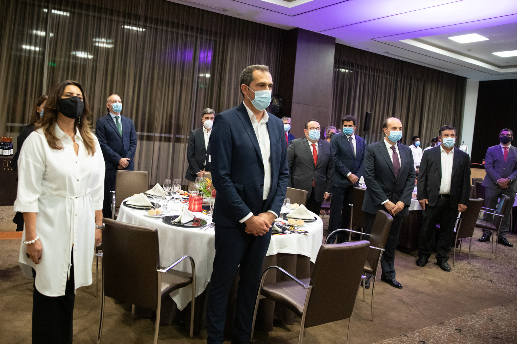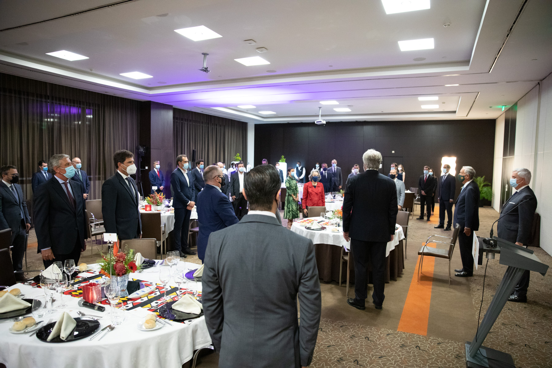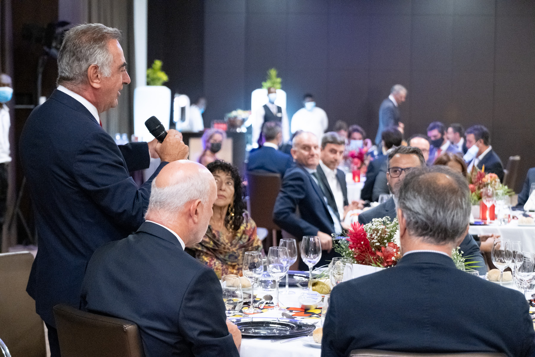 O Presidente da República acompanhado pelo Embaixador de Portugal em Luanda, Pedro Pessoa e Costa, reuniu em jantar conferência representantes da Comunidade empresarial em Angola.