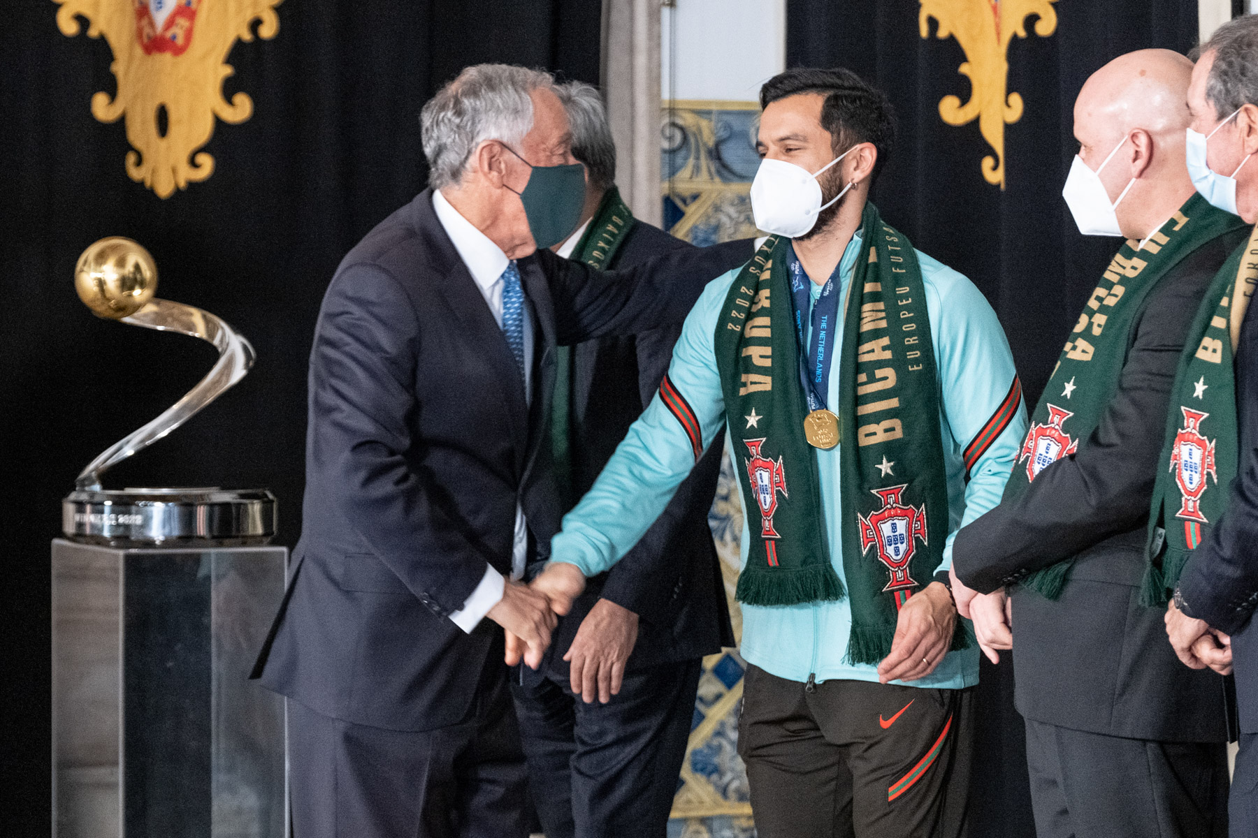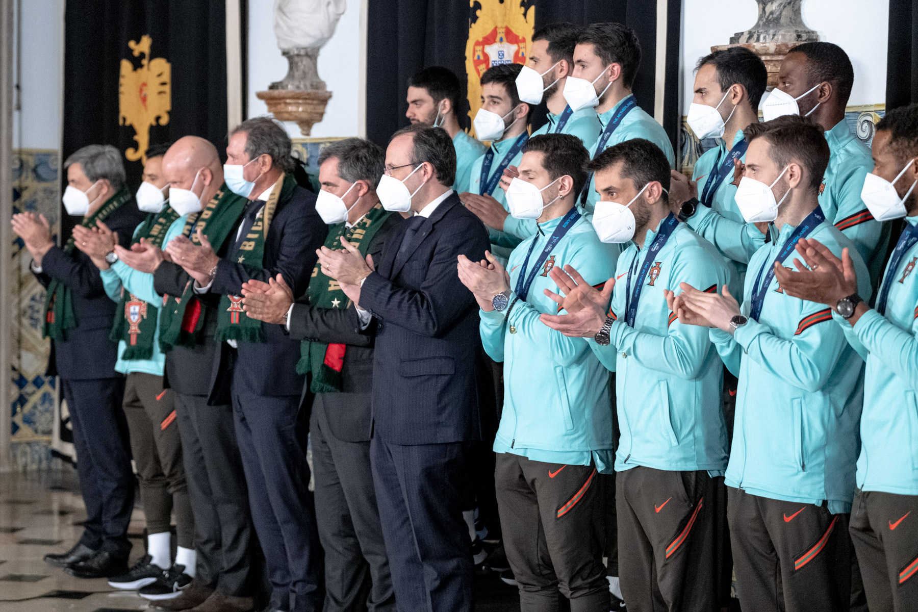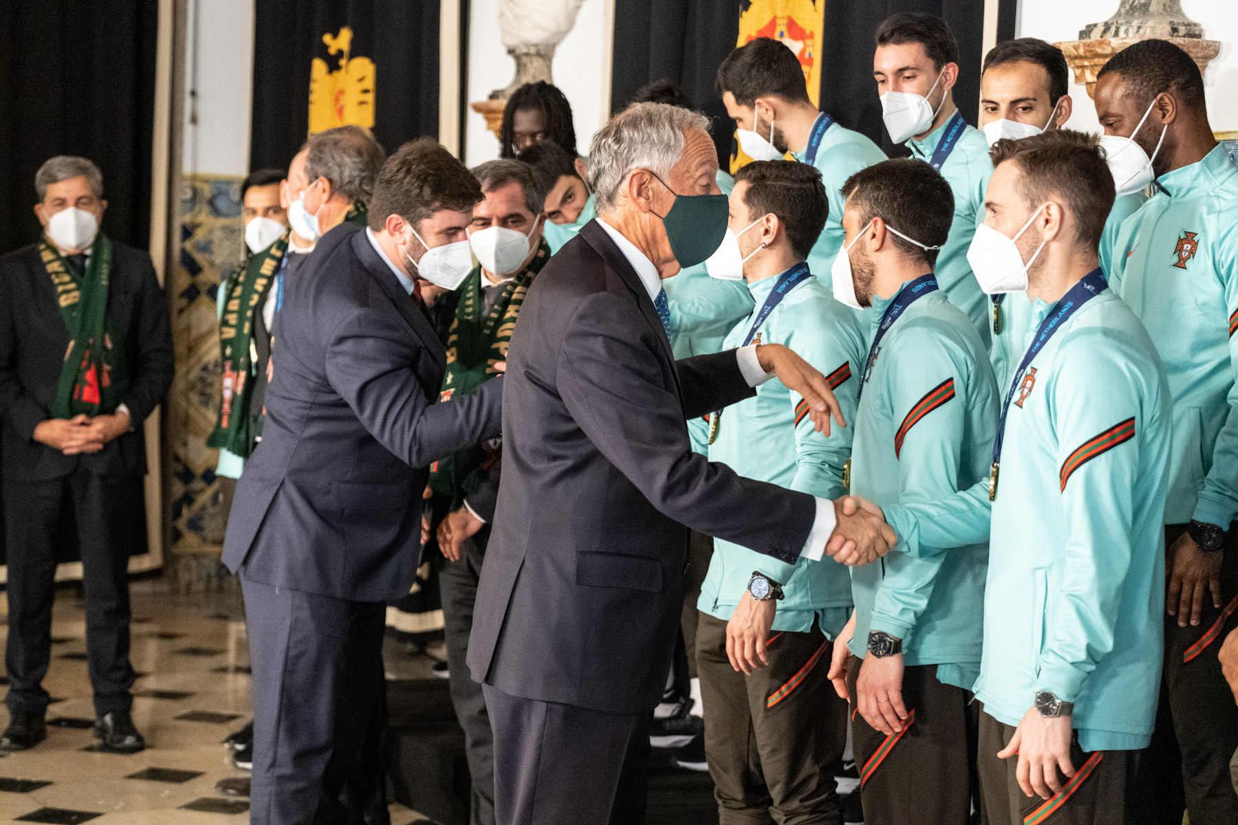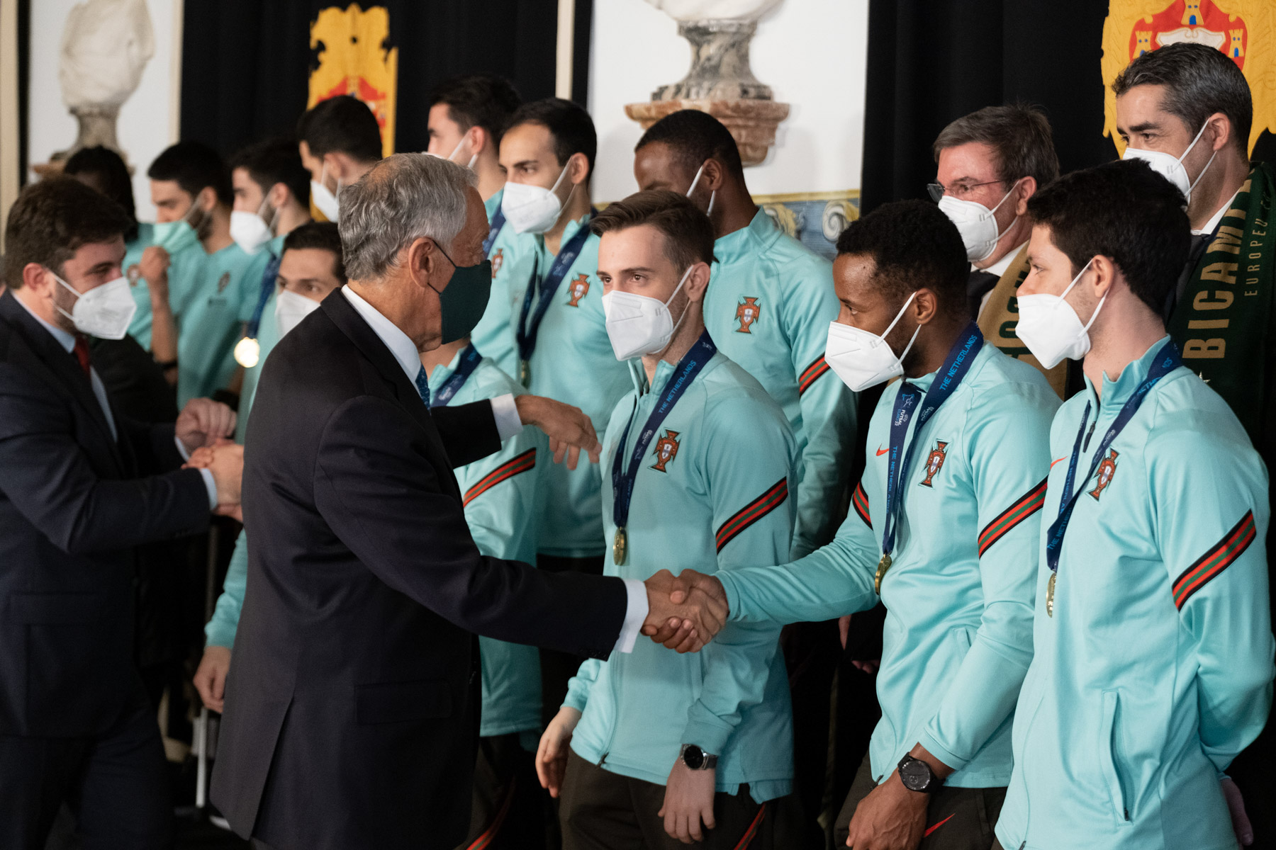 O Presidente Marcelo Rebelo de Sousa recebeu, no Palácio de Belém, a Seleção Nacional de Futsal que se sagrou bicampeã da Europa no campeonato realizado nos Países Baixos.