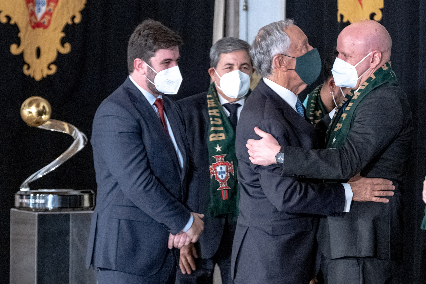 O Presidente da República, após a sua intervenção, juntou-se aos jogadores, equipa técnica e dirigentes para uma fotografia com o troféu agora conquistado.