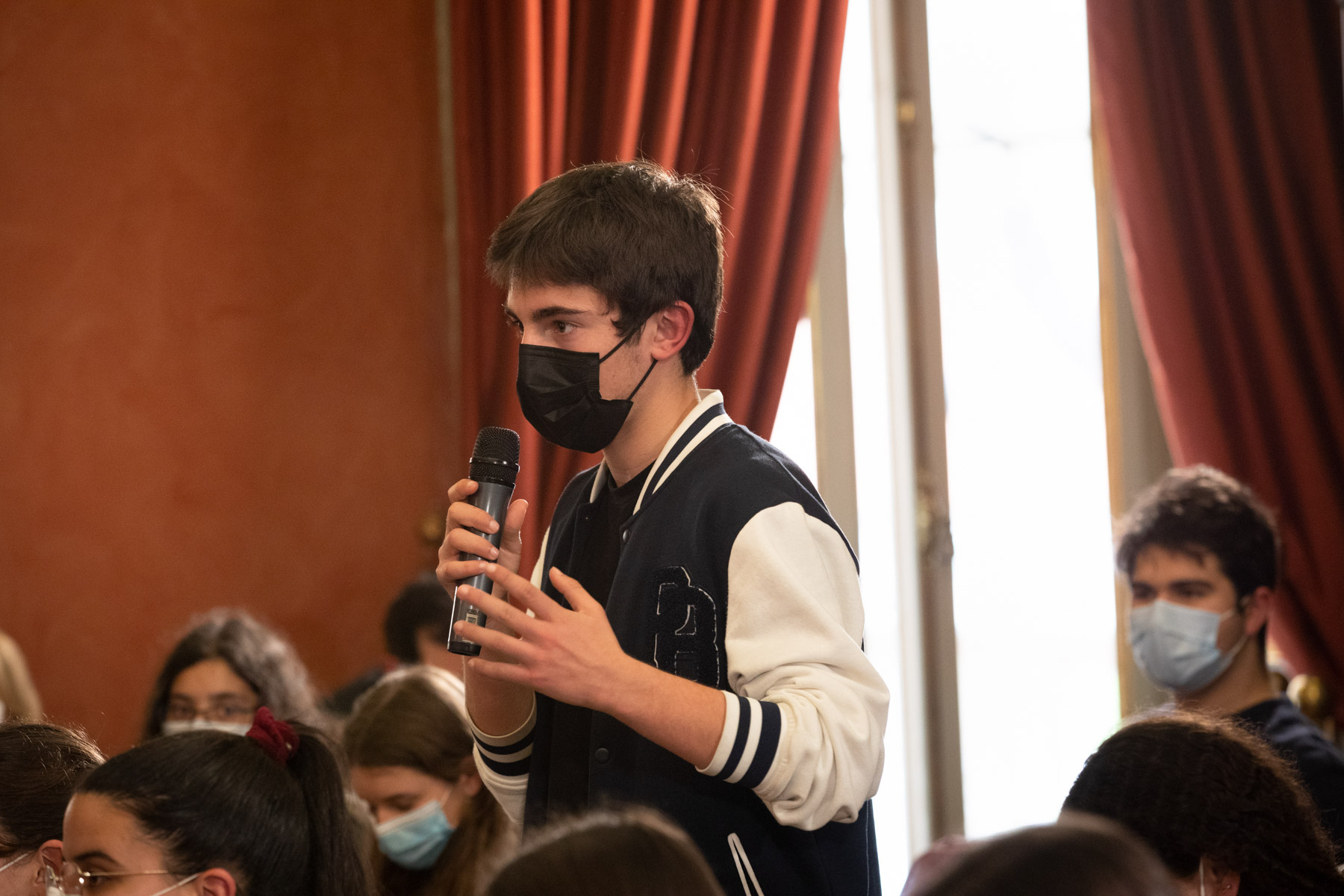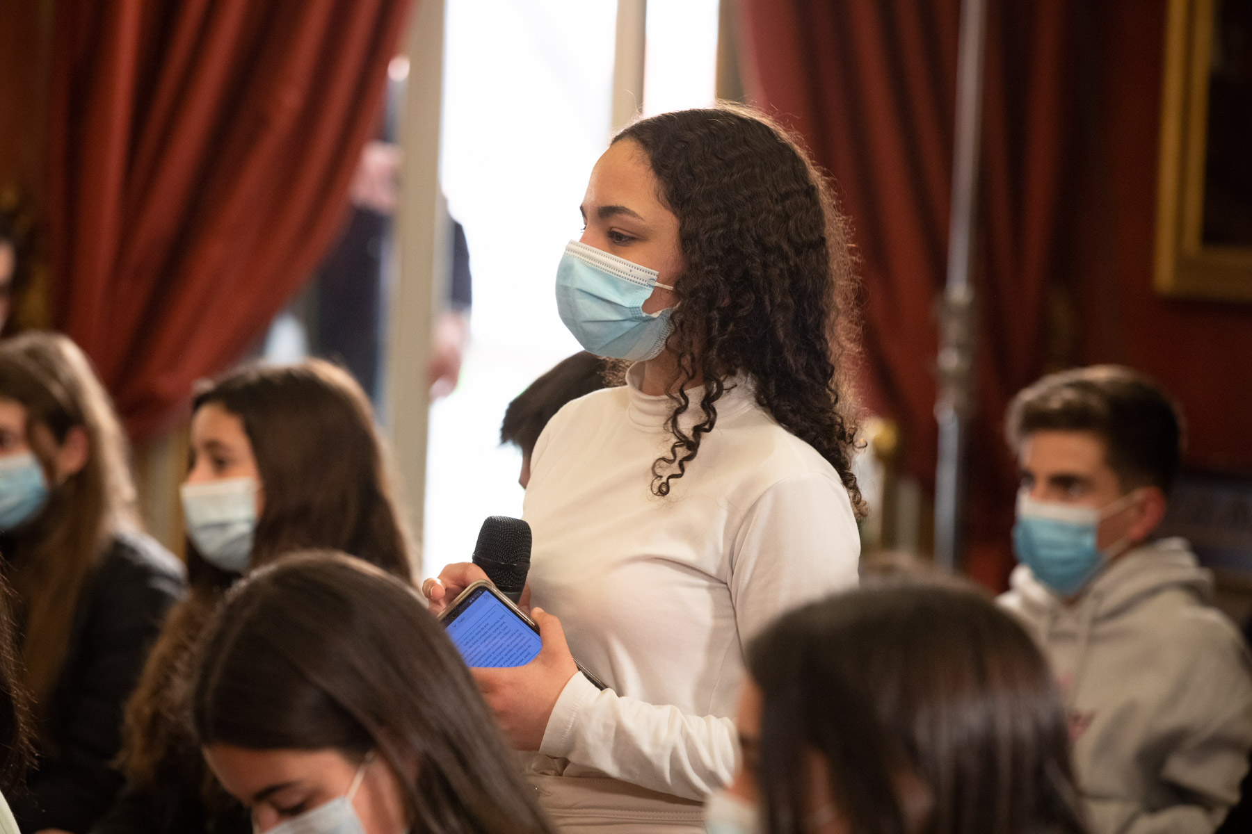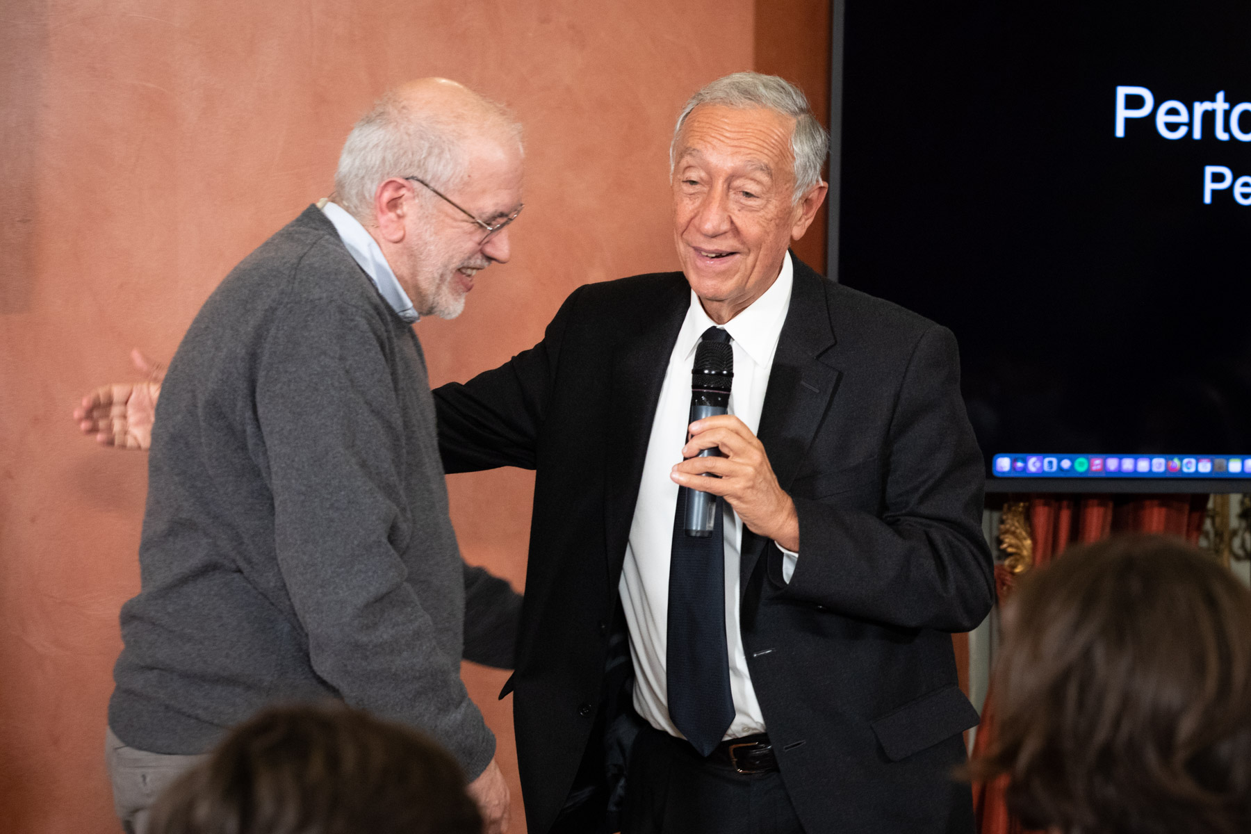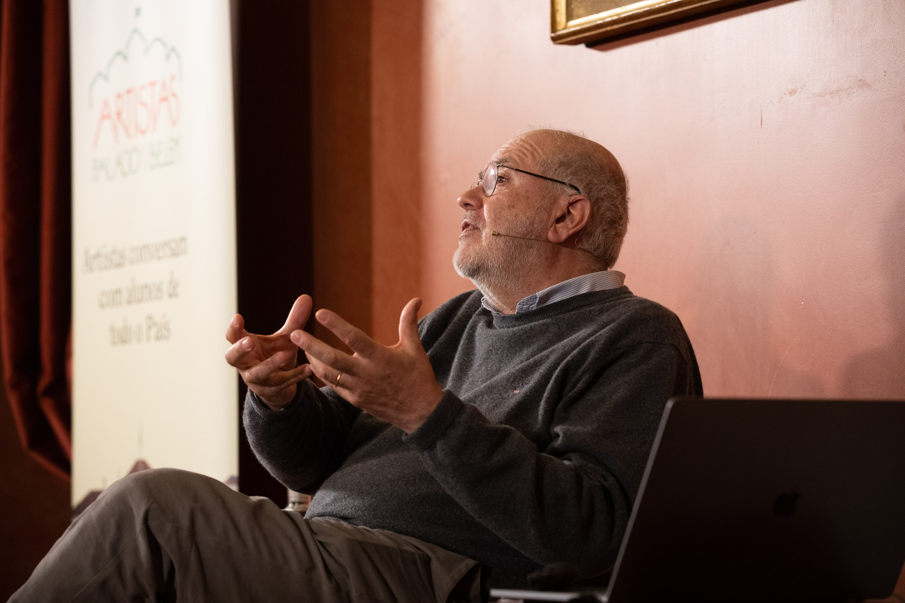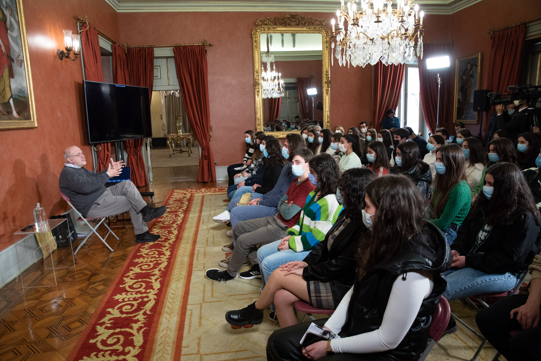 O Presidente da República participou no décimo encontro do Programa “Artistas no Palácio de Belém”, que teve como convidado o artista plástico Pedro Calapez, que manteve um diálogo com alunos da Escola Básica e Secundária Dr. Ferreira da Silva, de Cucujães, em Oliveira de Azeméis, sobre o seu percurso artístico.