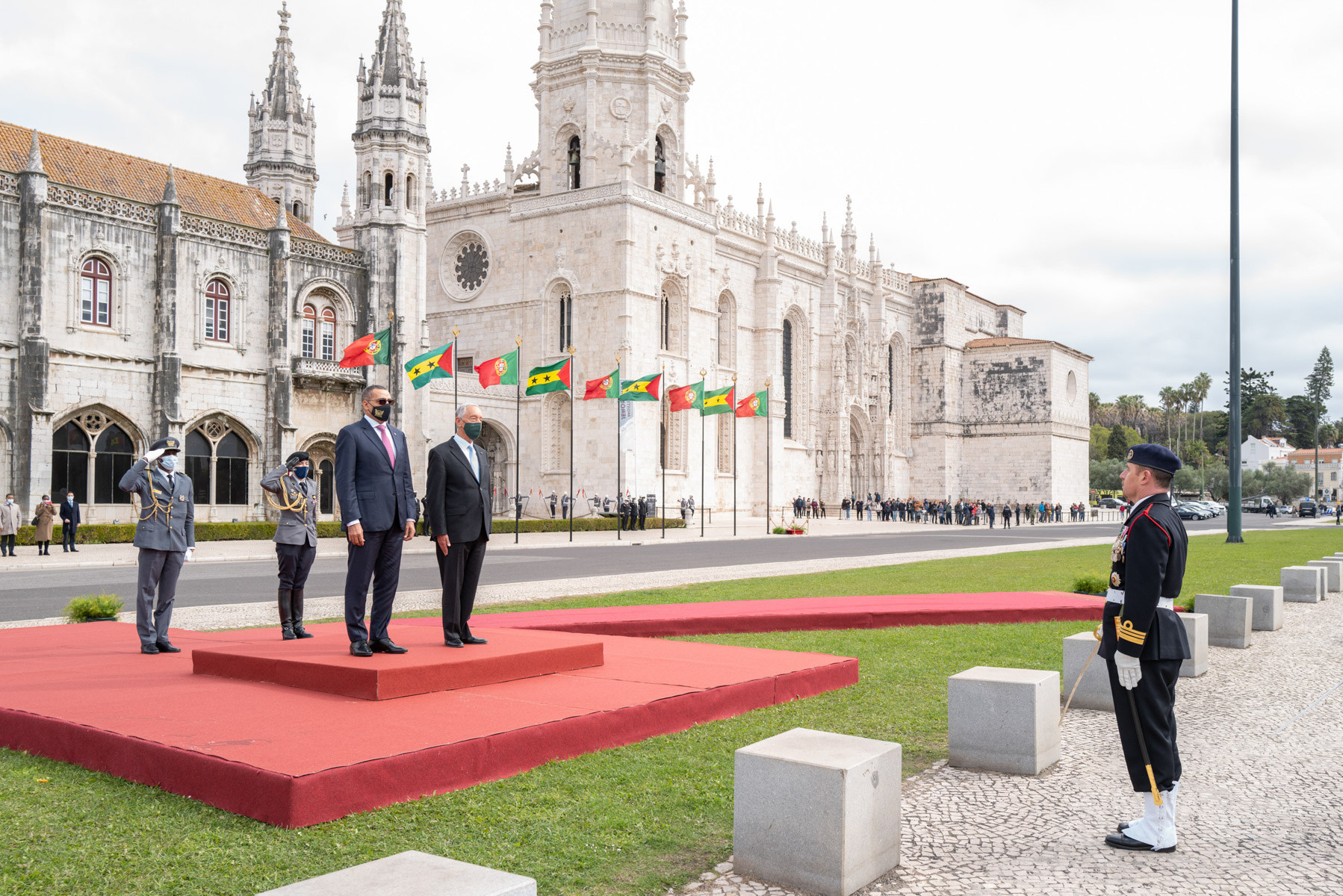 O Presidente da República recebeu, na Praça do Império - Mosteiro dos Jerónimos em Lisboa, o Presidente da República Democrática de São Tomé e Príncipe, Carlos Vila Nova, e Senhora, Maria de Fátima Vila Nova, numa cerimónia oficial de boas-vindas que deu início à Visita de Estado a Portugal do Chefe de Estado santomense.