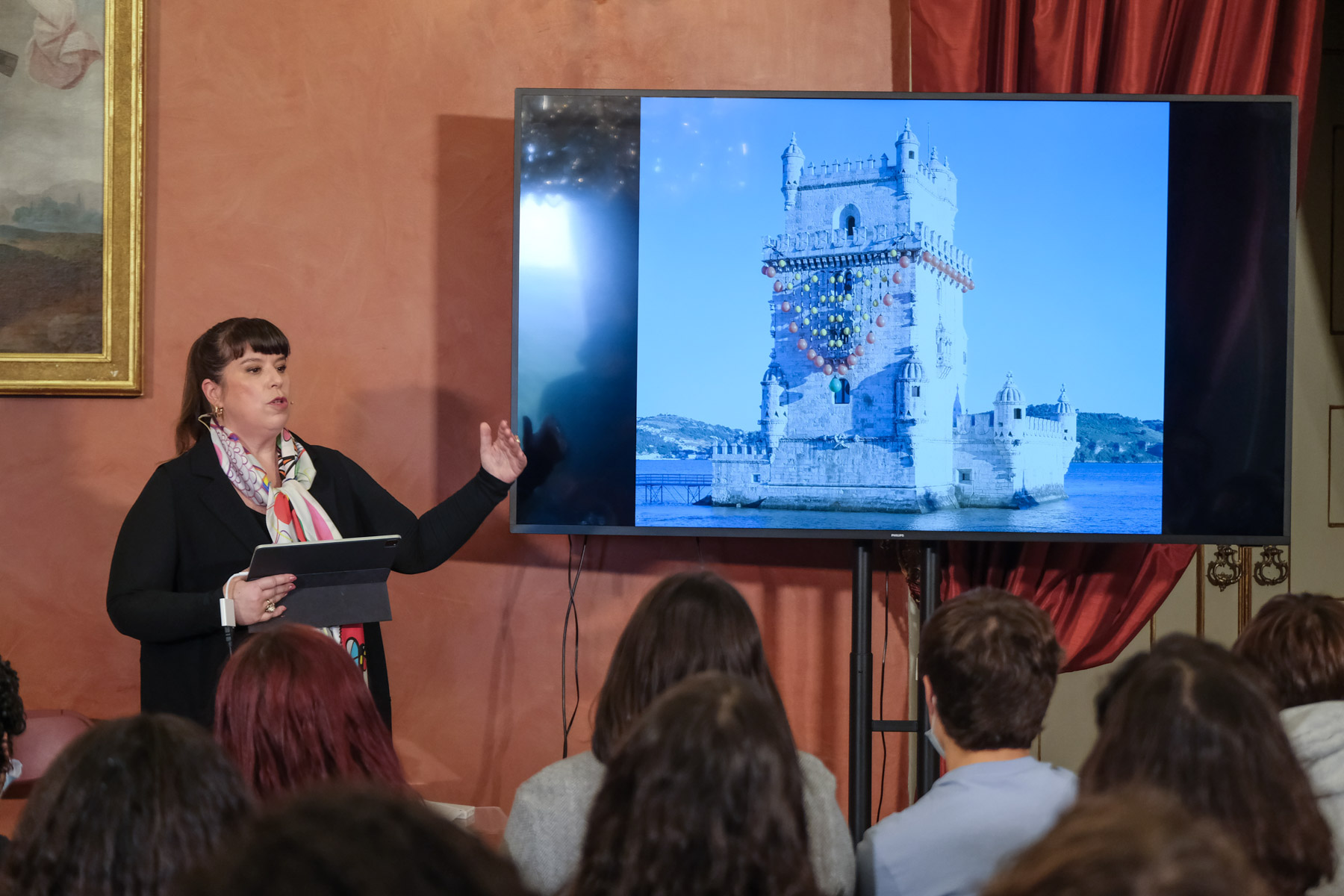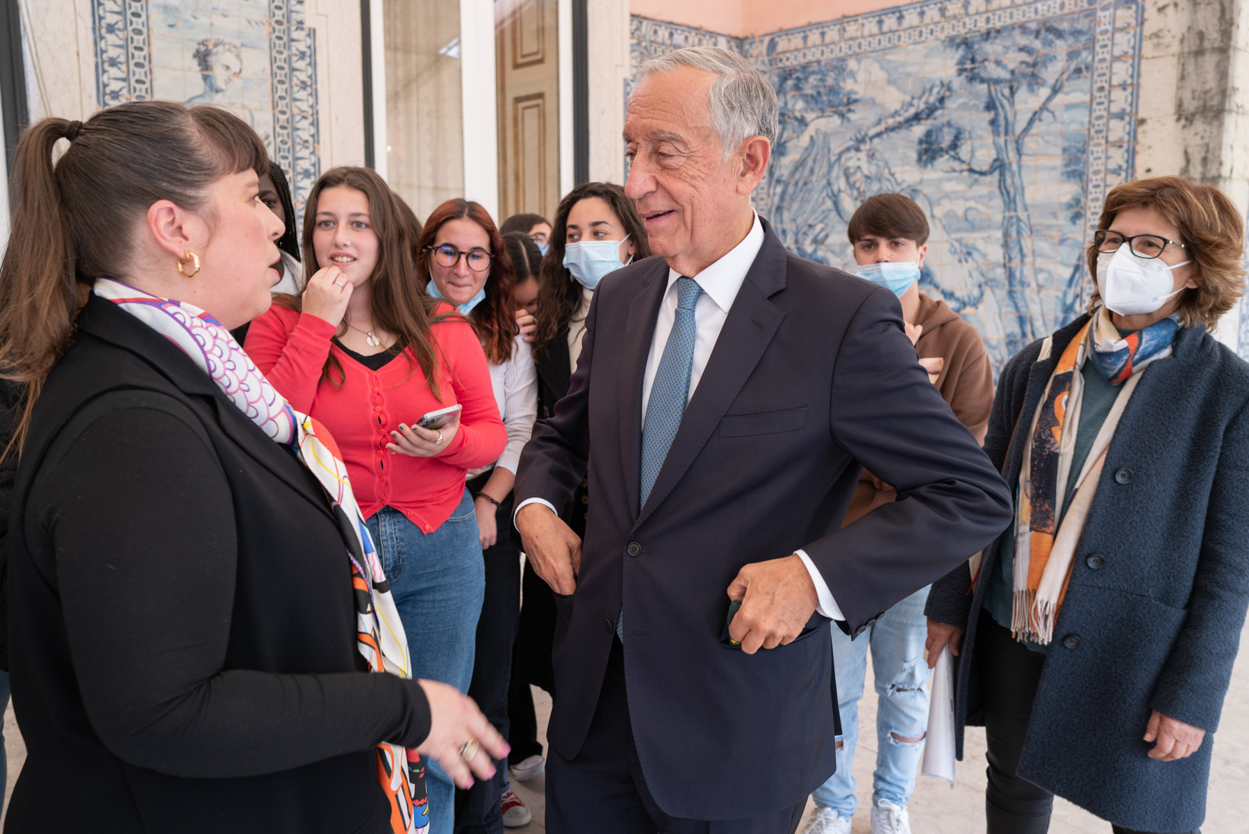 O Presidente da República participou no décimo terceiro e último encontro da segunda edição do Programa “Artistas no Palácio de Belém”, no qual a artista plástica Joana Vasconcelos dialogou com alunos da EB 2,3 Secundária IBN Mucana em Alcabideche, Cascais, sobre o seu percurso artístico.