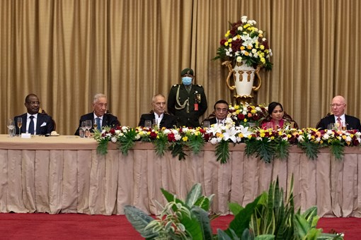 Após a cerimónia de condecoração, o Presidente da República Democrática de Timor-Leste ofereceu um banquete em honra do Presidente Marcelo Rebelo de Sousa.