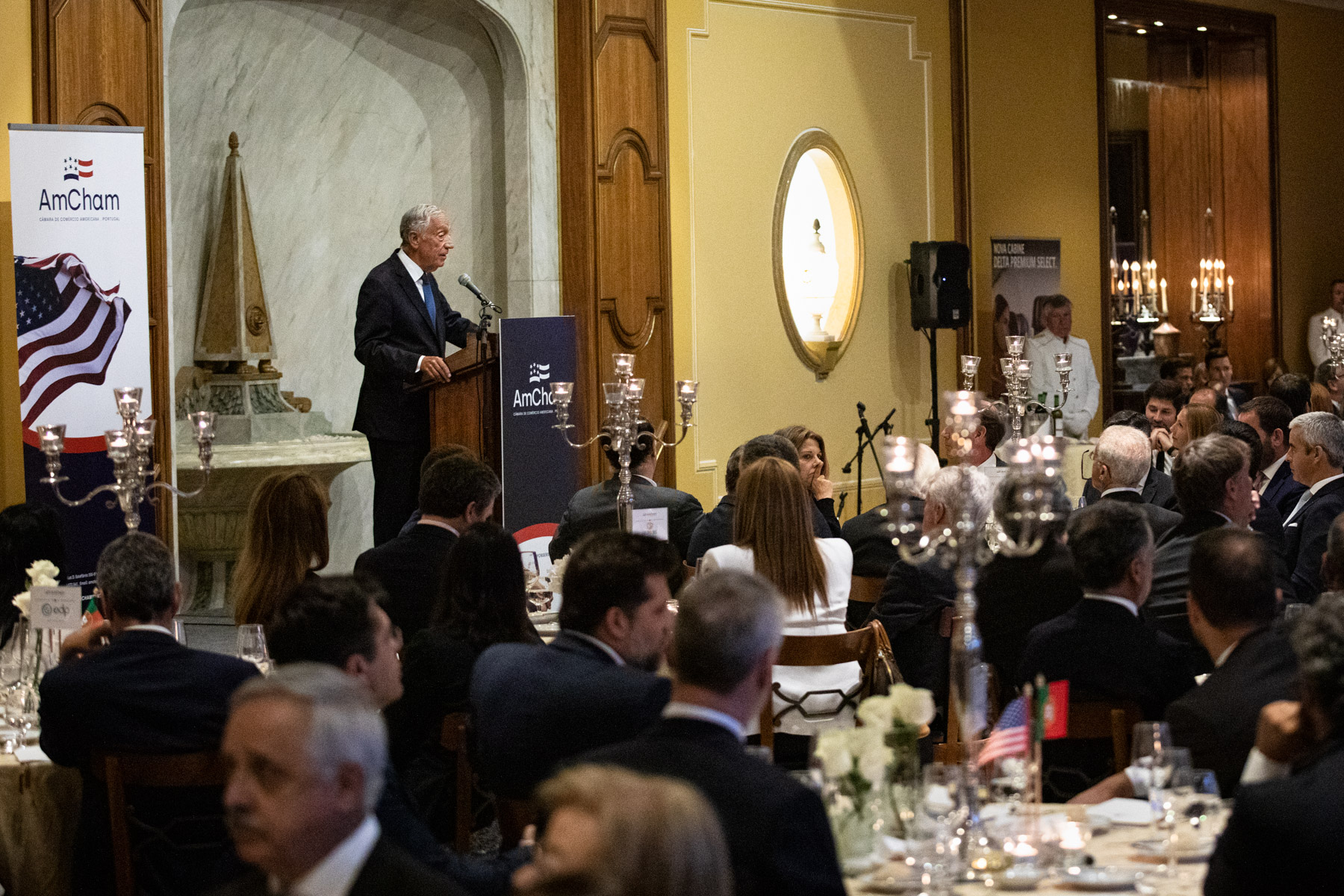 Antes do jantar, e após terem usado da palavra o Presidente da AmCham Portugal, António Martins da Costa, e a Embaixadora Randi Charno Levine, o Presidente Marcelo Rebelo de Sousa fez uma intervenção sobre Portugal e os Estados Unidos da América no atual contexto nacional e internacional.