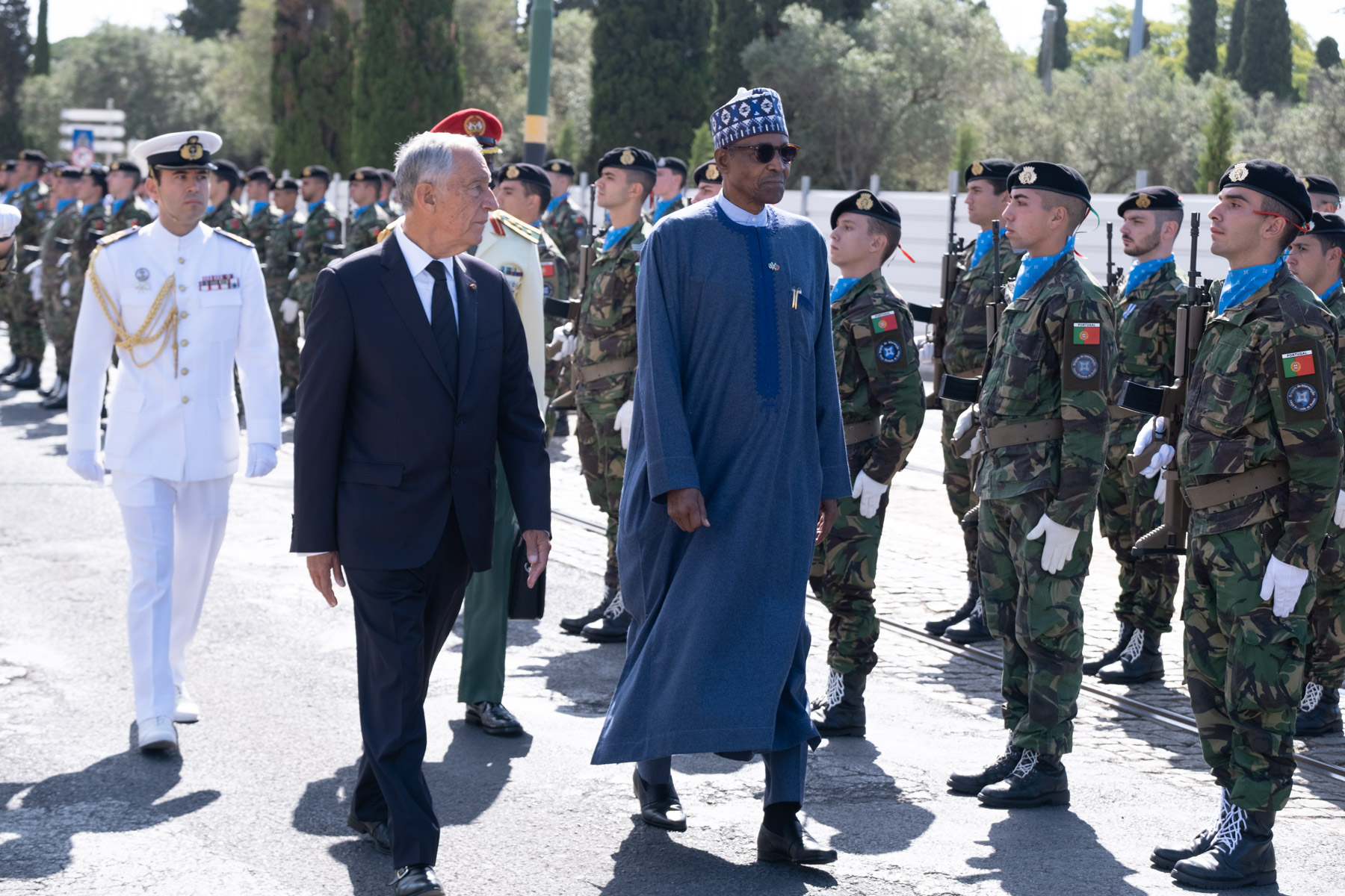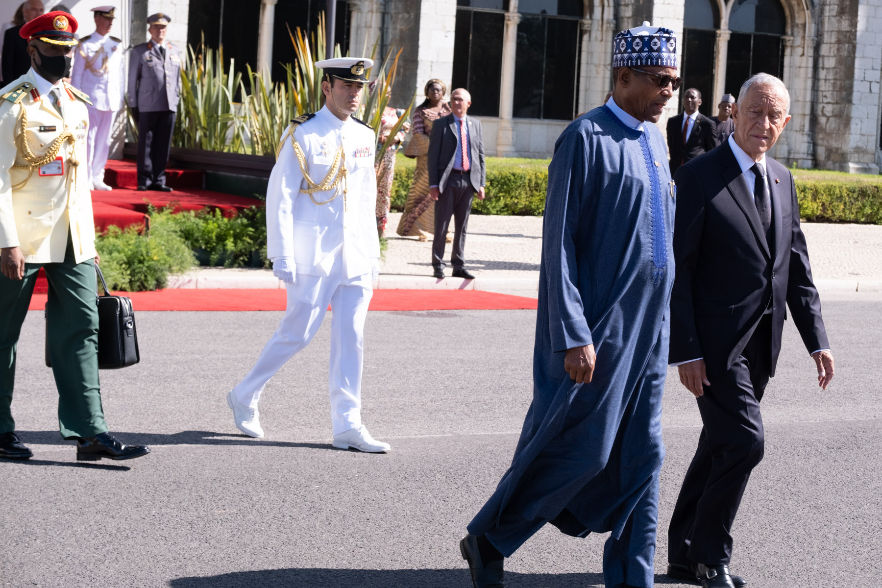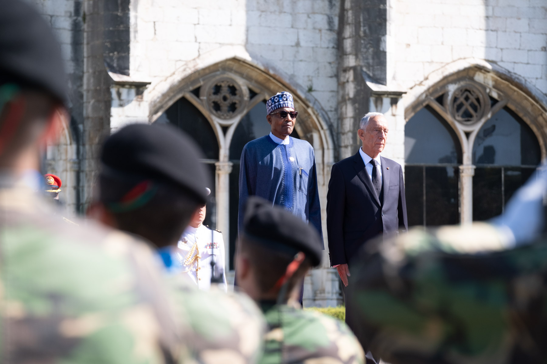 No início da Visita de Estado a Portugal, o Presidente da República da Nigéria, Muhammadu Buhari foi recebido pelo Presidente da República na Praça do Império - Mosteiro dos Jerónimos, em Lisboa, numa cerimónia oficial de boas-vindas. Foram prestadas Honras Militares, com a execução dos Hinos Nacionais dos dois países, salva de 21 tiros, revista e desfile da Guarda de Honra.