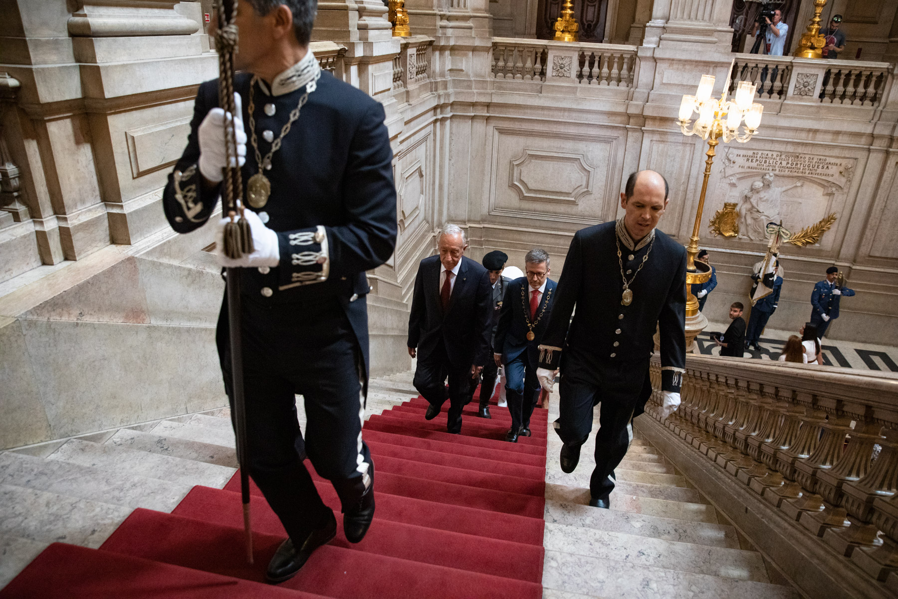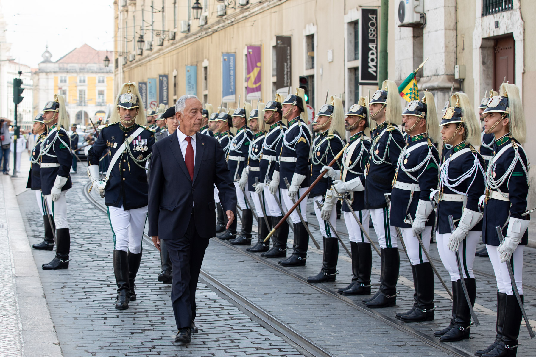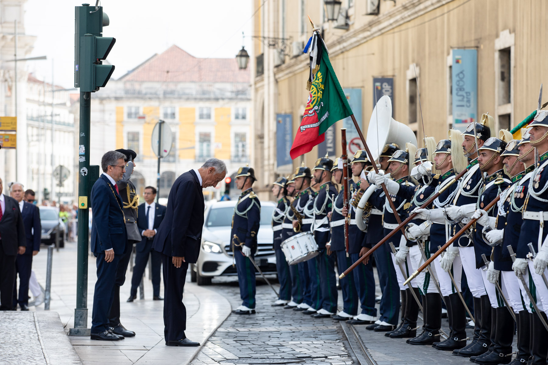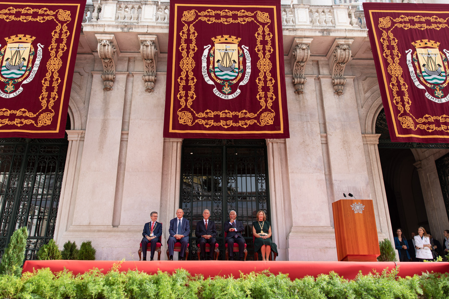Após revista à Guarda de Honra, o Presidente Marcelo Rebelo de Sousa, acompanhado pelo Presidente da Câmara Municipal de Lisboa (CML), Carlos Moedas, foi recebido pela vereação da Câmara e dirigiu-se à varanda dos Paços do Concelho onde hasteou a bandeira nacional.