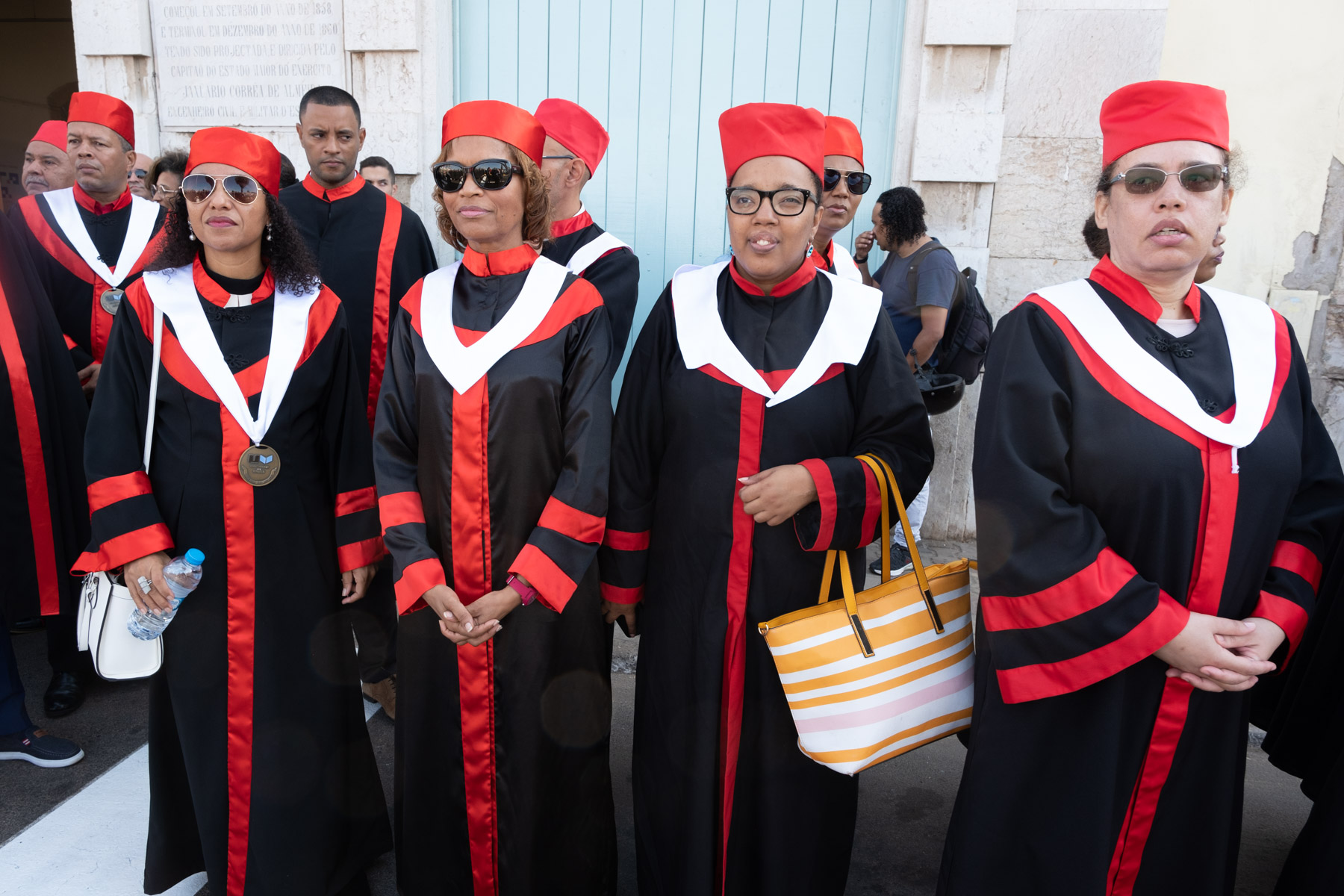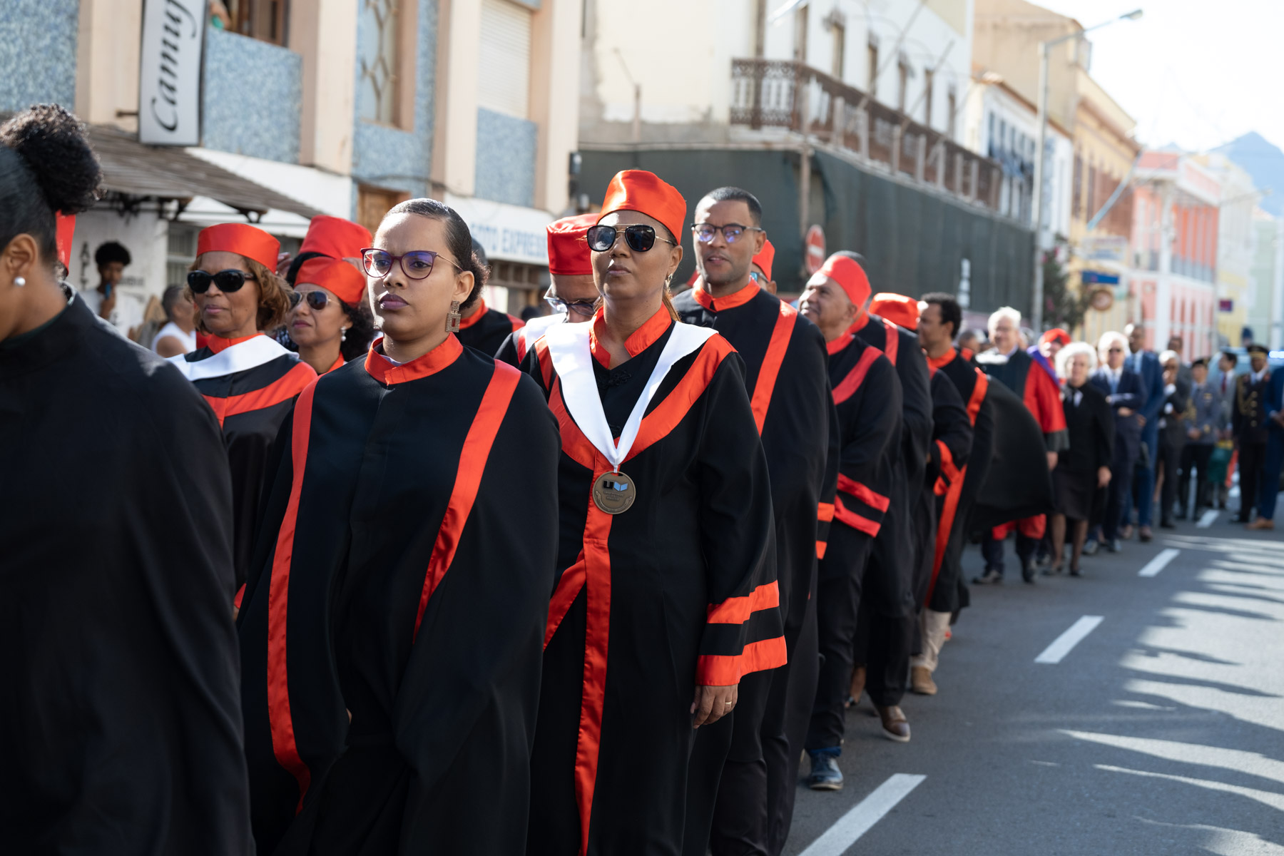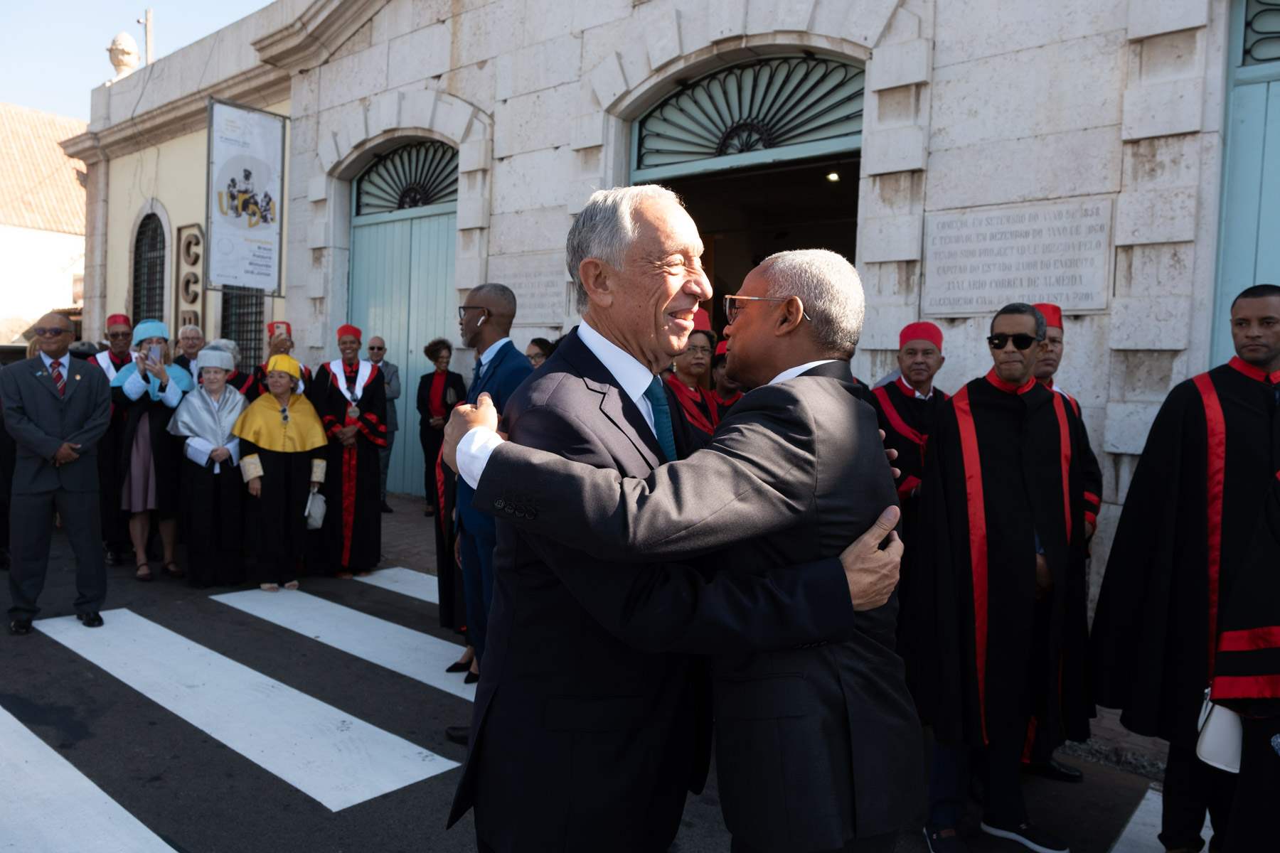 Acompanhados pelo Reitor da Universidade, instituição que comemora este ano o seu 20.º aniversário, o Presidente da República e o Presidente da República de Cabo Verde, José Maria Neves, integraram o cortejo académico e foram recebidos por estudantes na entrada da Universidade.