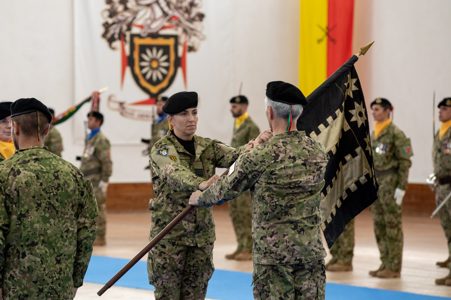 Foi conferida posse à nova Comandante, em cerimónia militar, com a entrega do Estandarte Heráldico e assinatura do termo de posse.