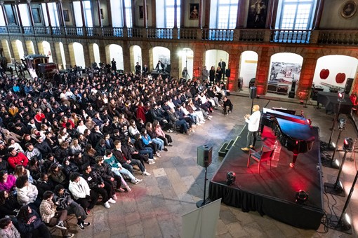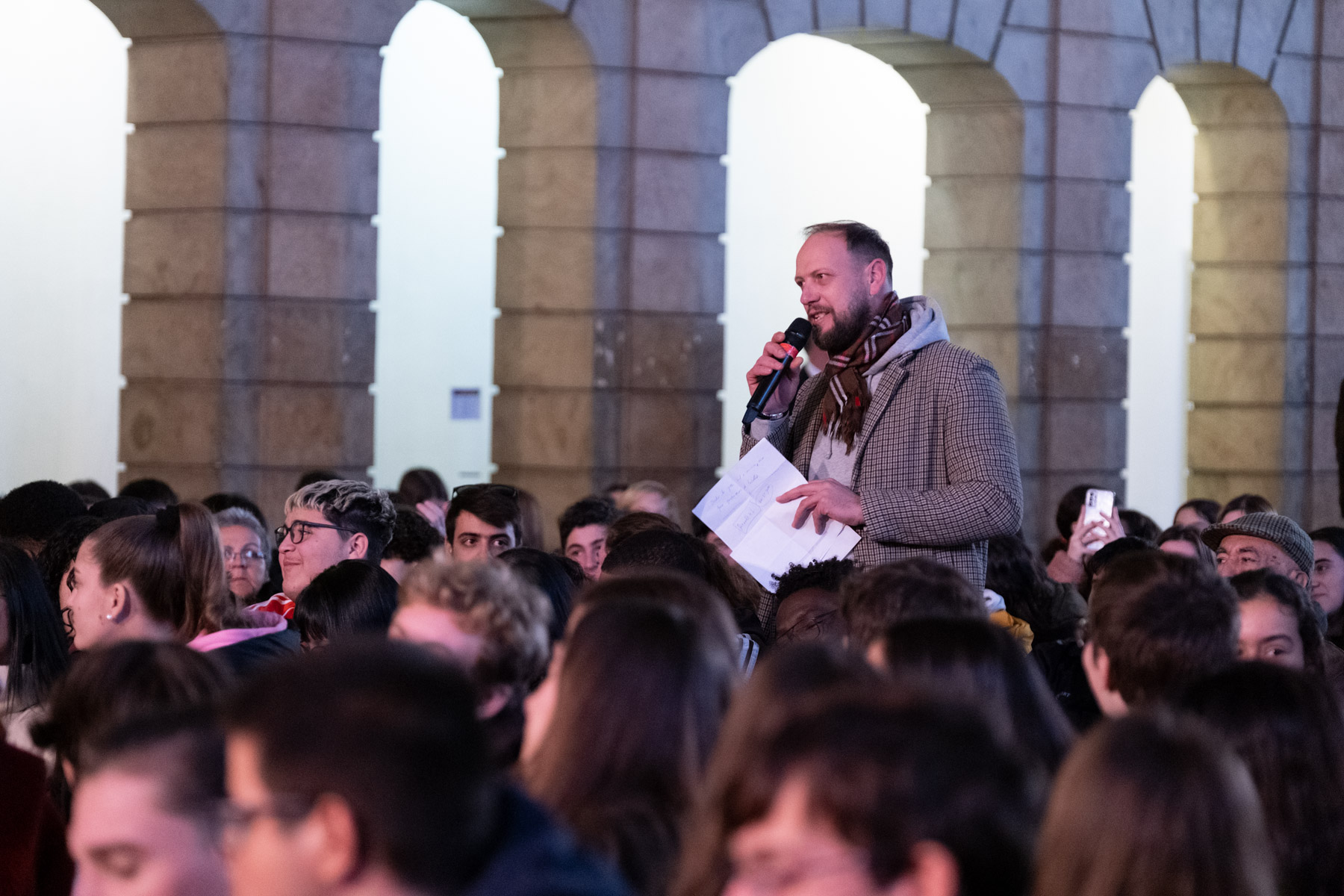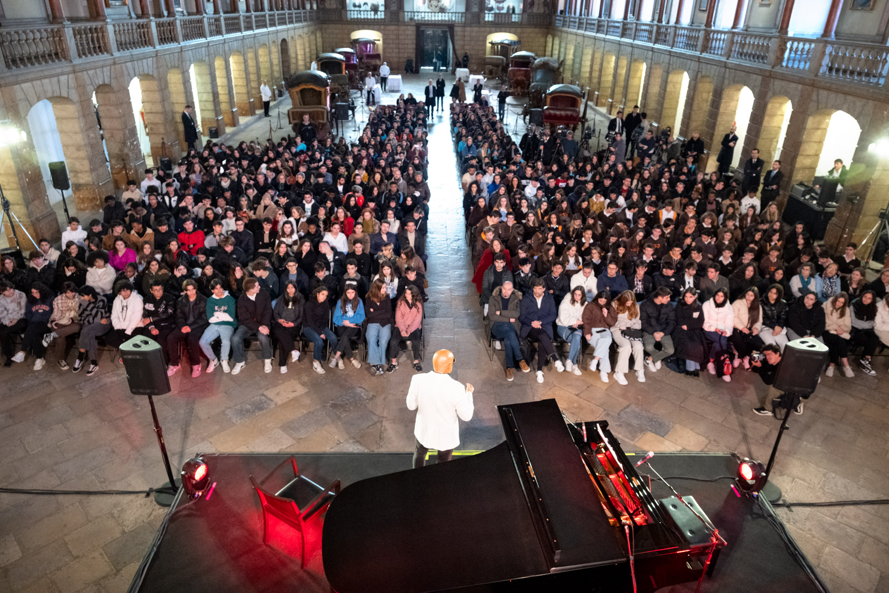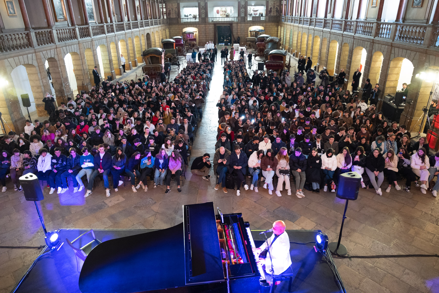 Durante a sessão, Pedro Abrunhosa manteve uma conversa com os alunos sobre o seu percurso artístico e interpretou alguns dos seus temas mais conhecidos.