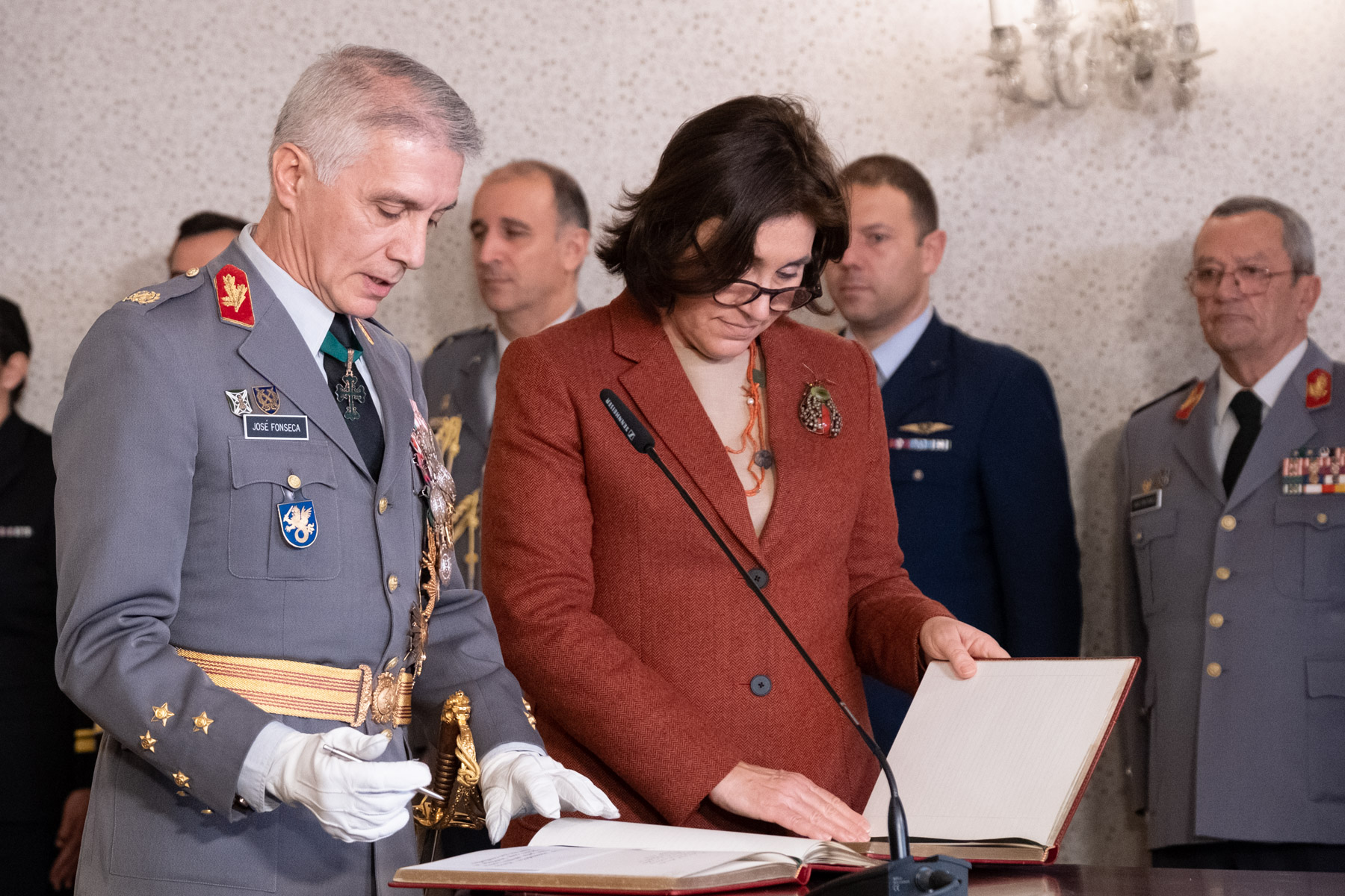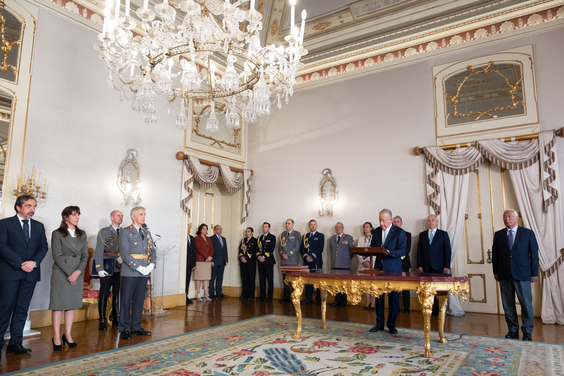 Na cerimónia, que decorreu na Sala dos Embaixadores no Palácio de Belém, e após a assinatura do auto de posse, o Chefe de Estado e o novo CEMGFA usaram da palavra.