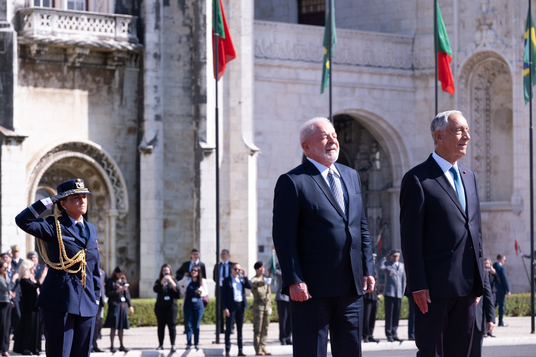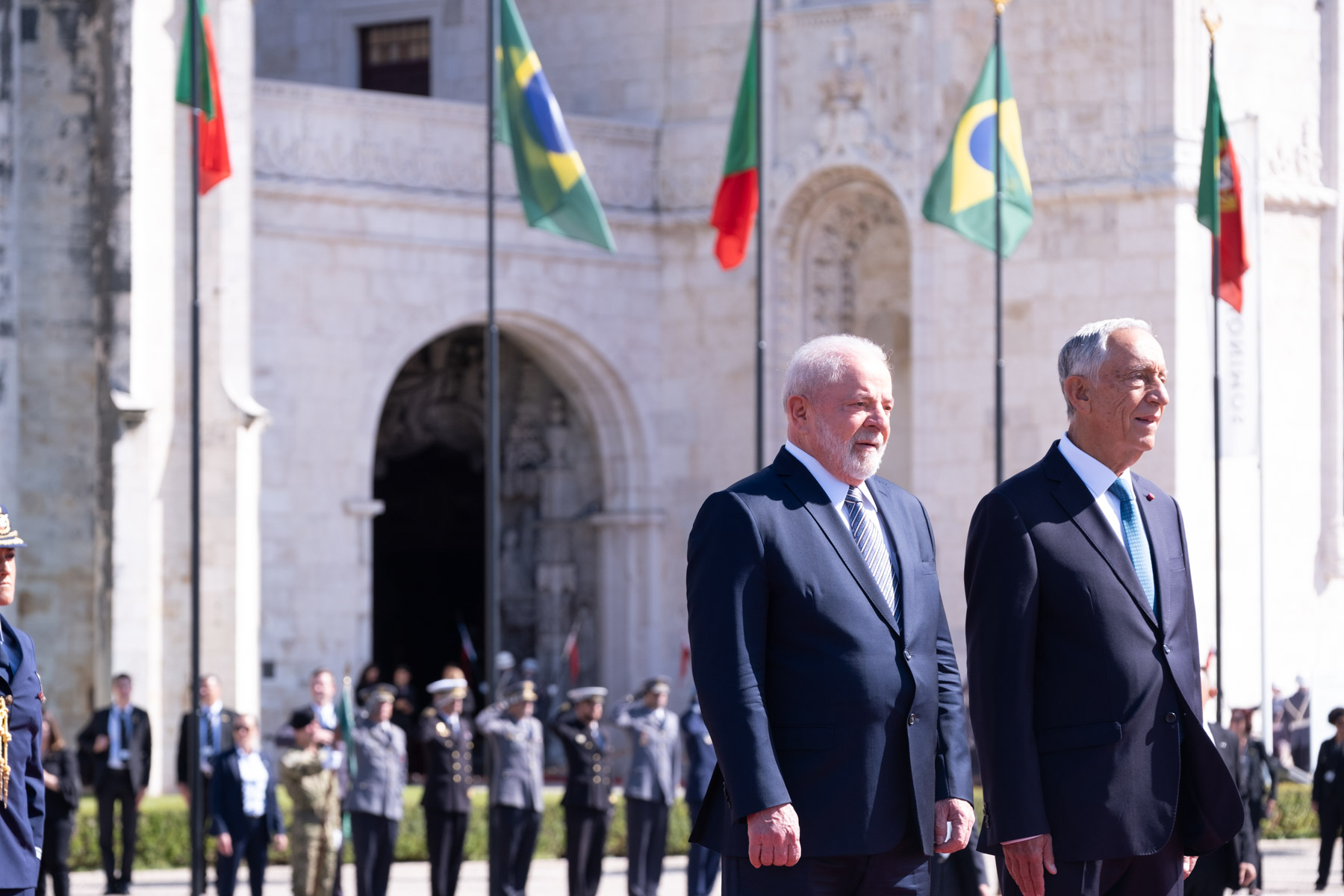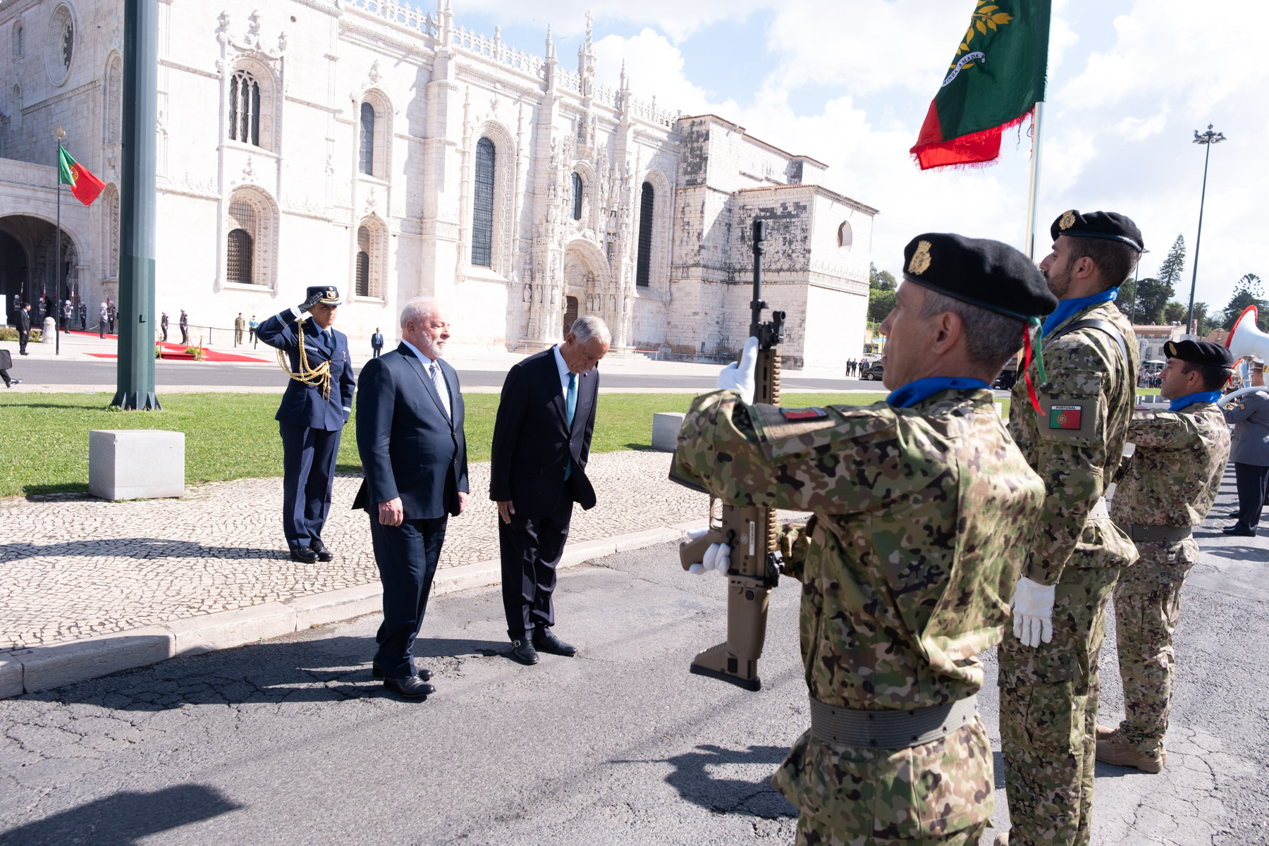 No início da Visita de Estado a Portugal, o Presidente da República Federativa do Brasil, Luiz Inácio Lula da Silva, foi recebido pelo Presidente da República na Praça do Império - Mosteiro dos Jerónimos, em Lisboa, numa cerimónia oficial de boas-vindas. Foram prestadas Honras Militares, com a execução dos Hinos Nacionais dos dois países, salva de 21 tiros, revista e desfile da Guarda de Honra.
