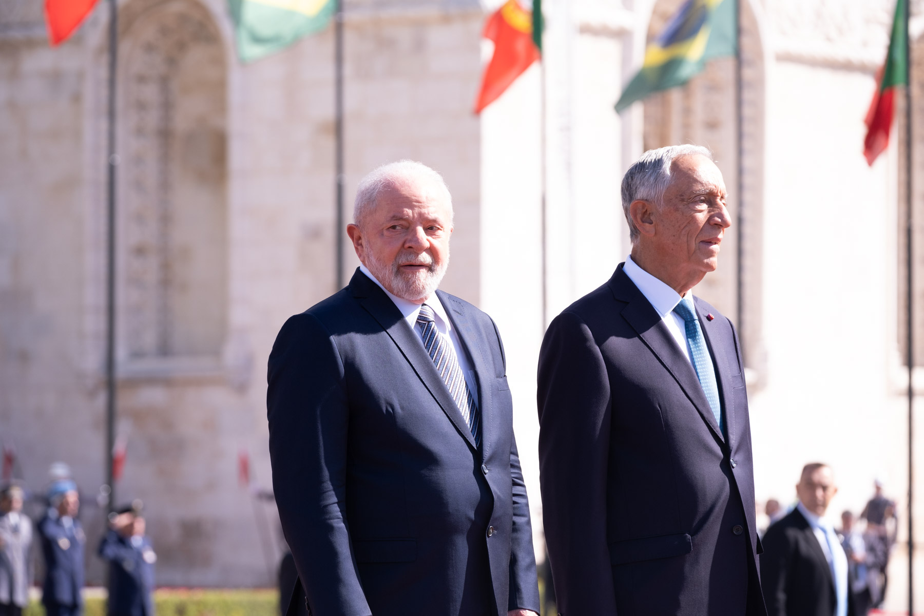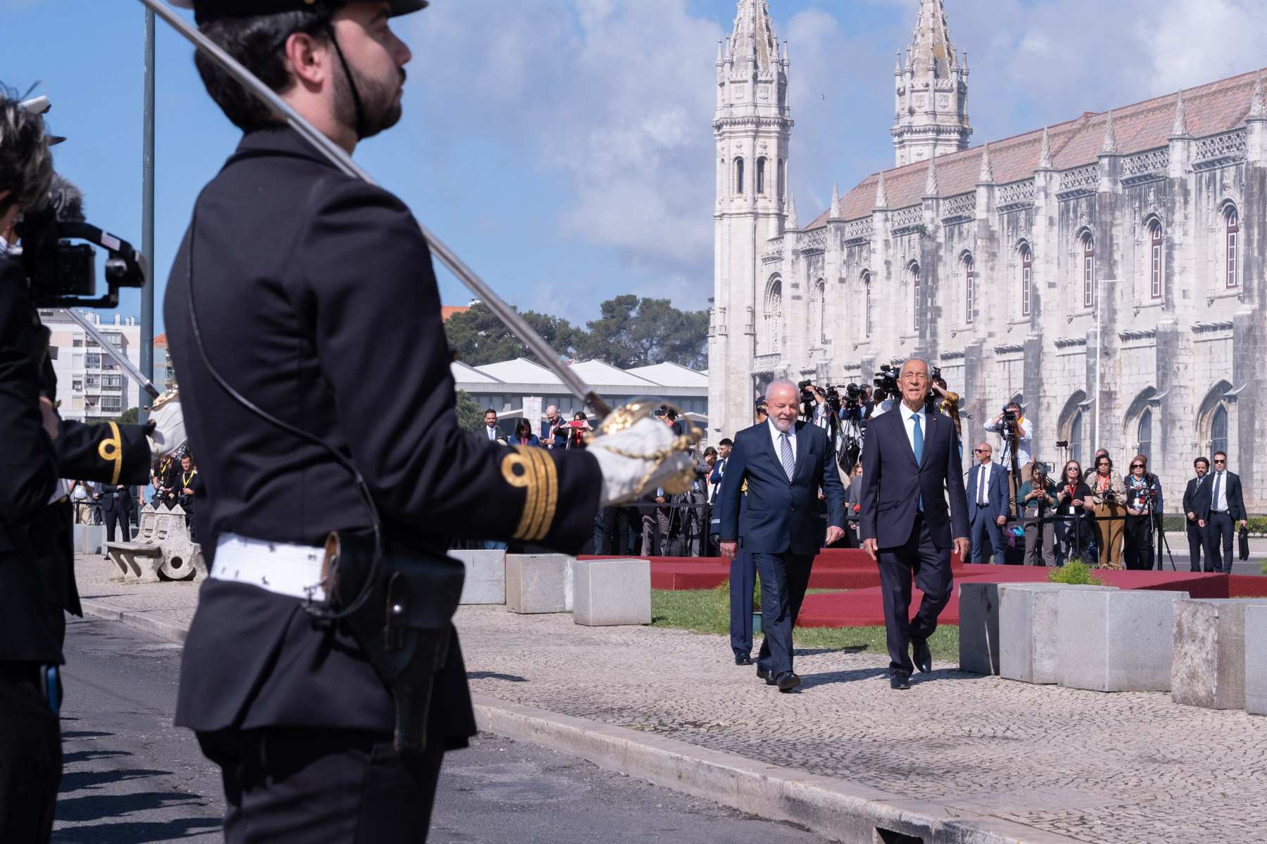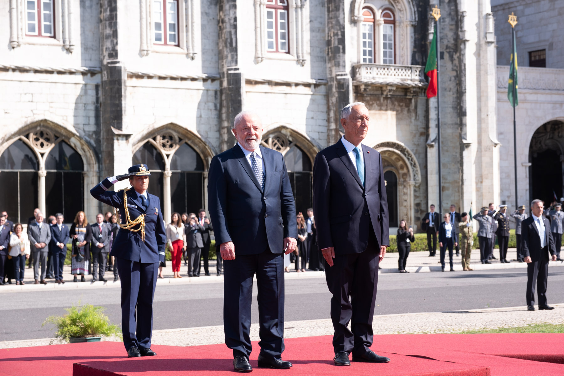 No início da Visita de Estado a Portugal, o Presidente da República Federativa do Brasil, Luiz Inácio Lula da Silva, foi recebido pelo Presidente da República na Praça do Império - Mosteiro dos Jerónimos, em Lisboa, numa cerimónia oficial de boas-vindas. Foram prestadas Honras Militares, com a execução dos Hinos Nacionais dos dois países, salva de 21 tiros, revista e desfile da Guarda de Honra.