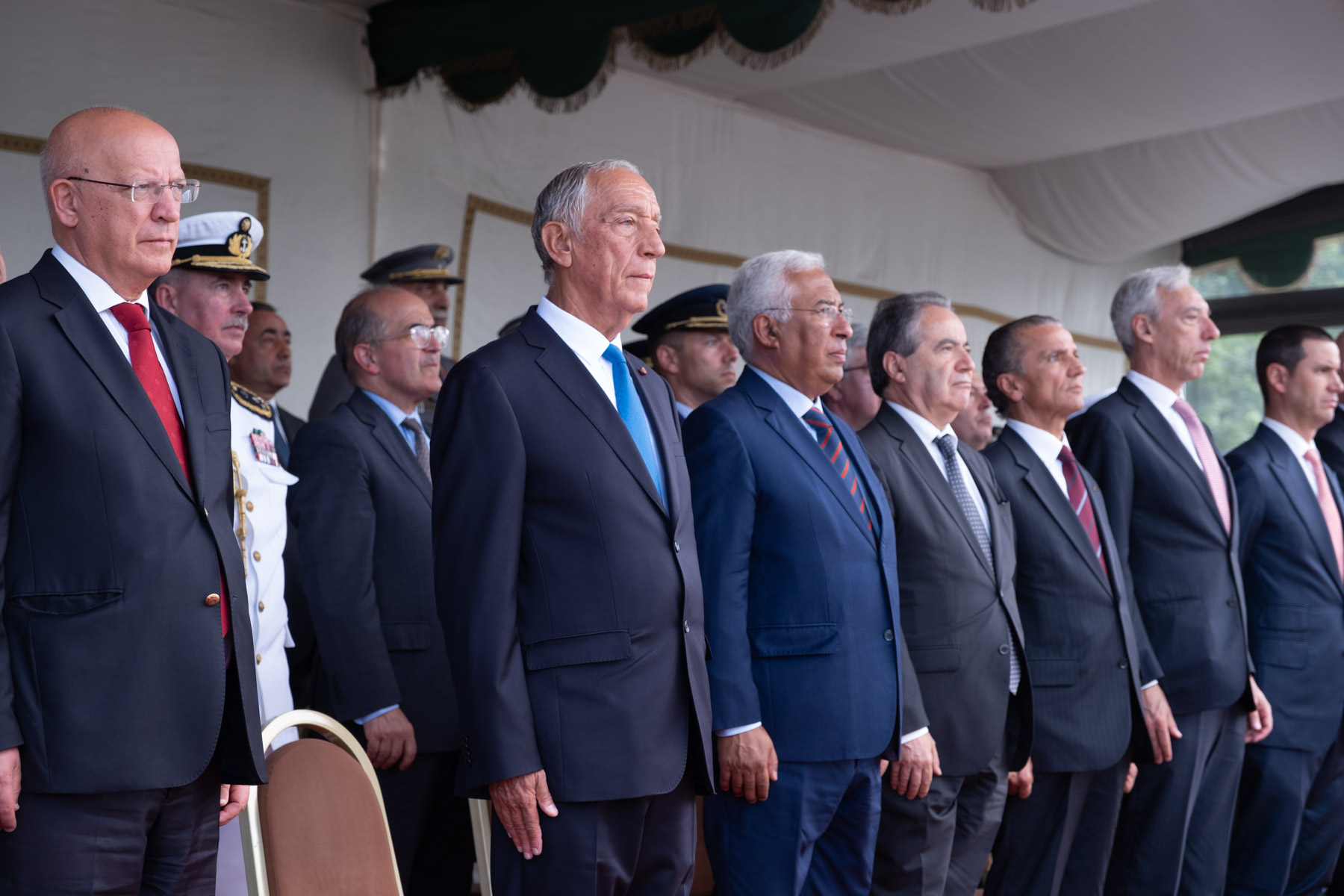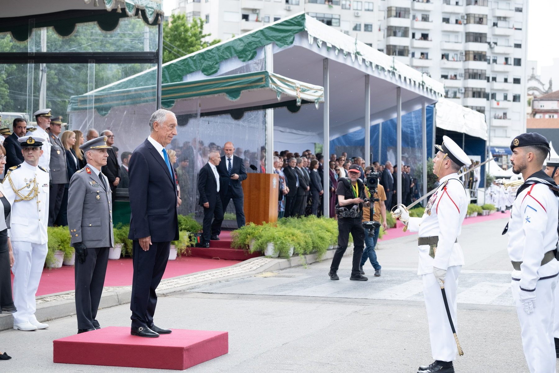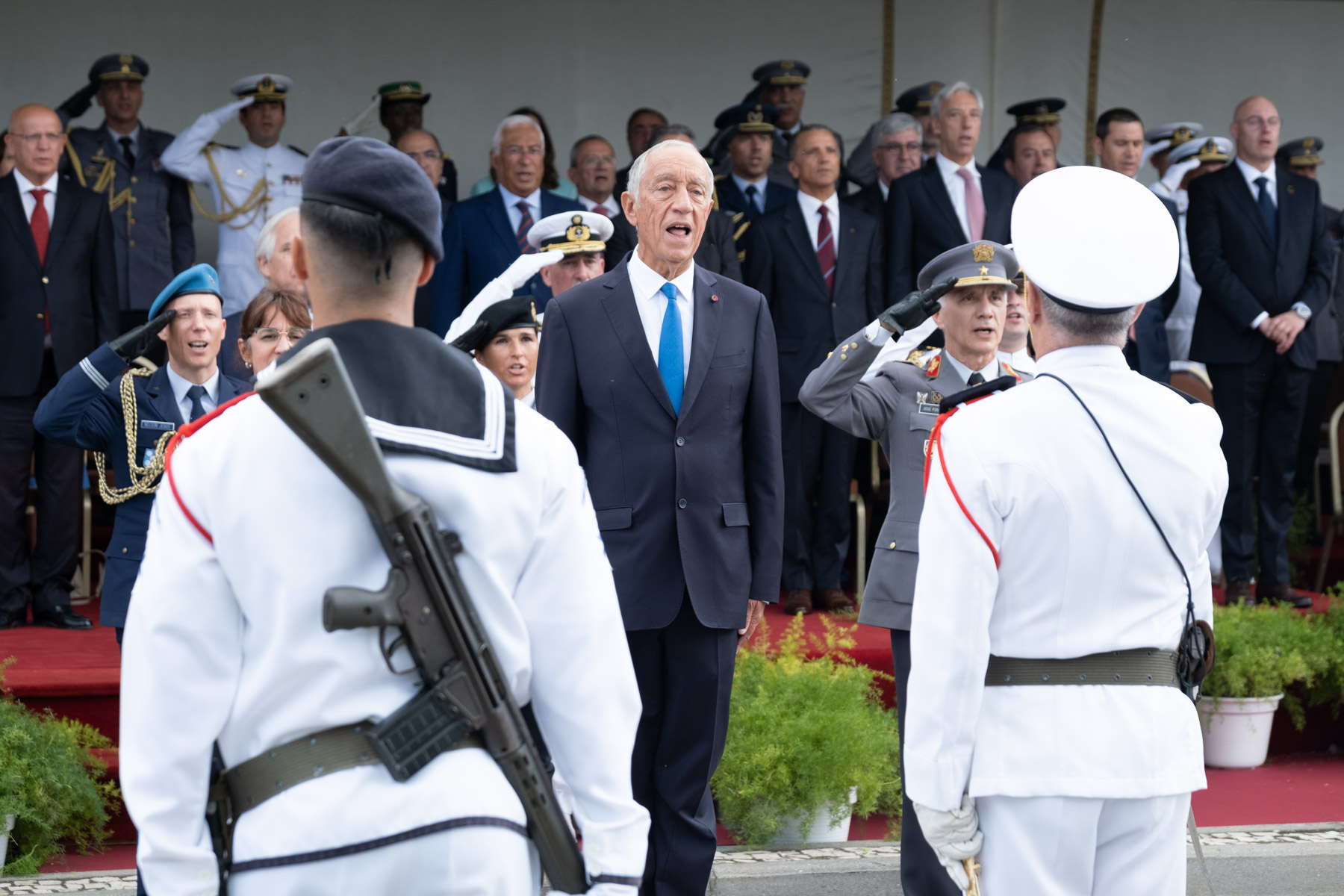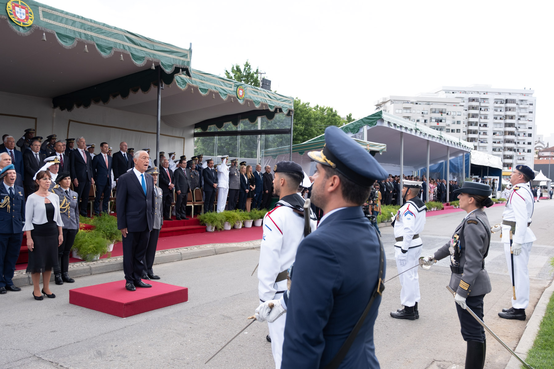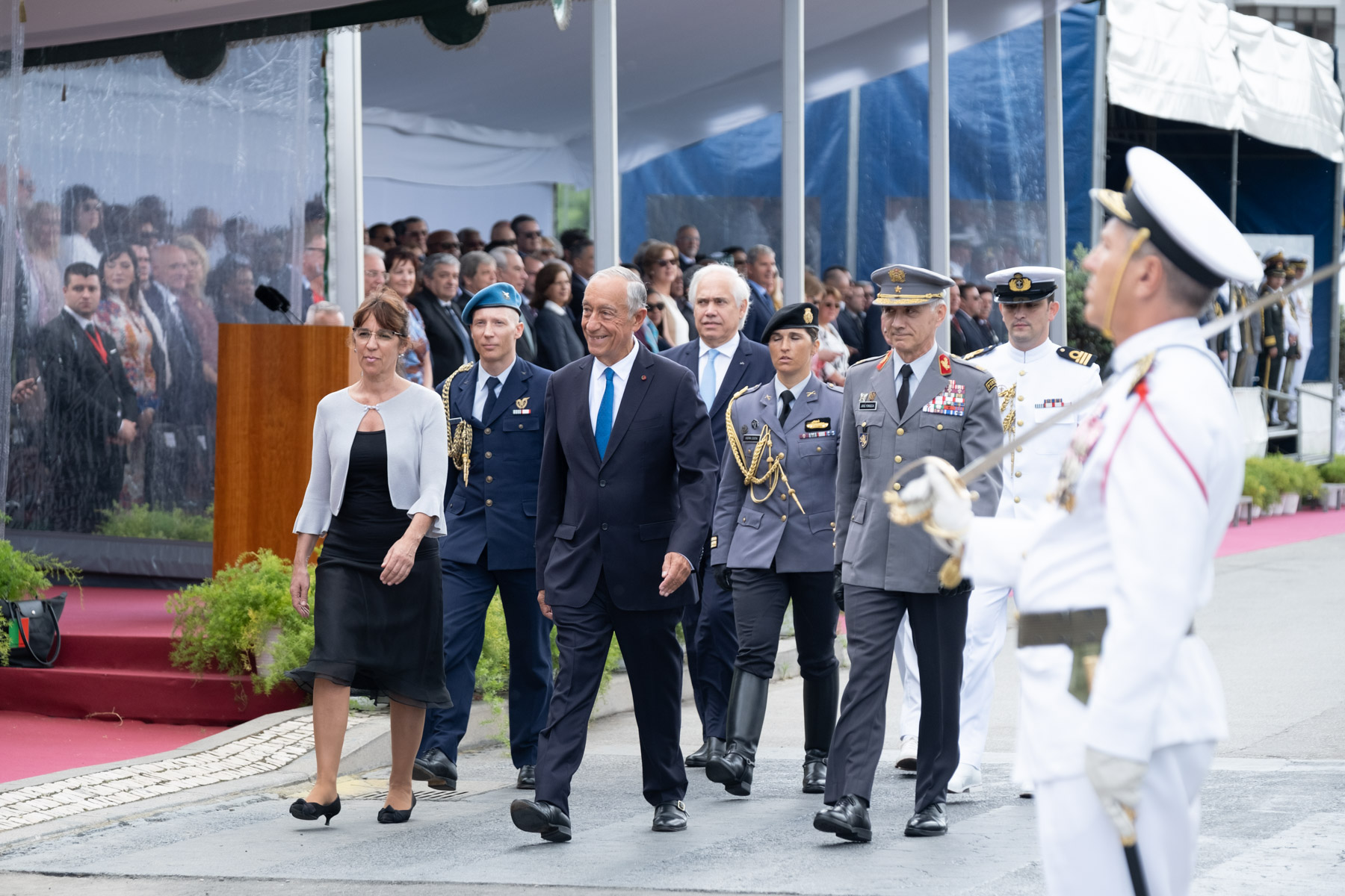 A Cerimónia Militar teve início com a execução do Hino Nacional pela Banda da Armada e, em simultâneo, foi executada uma salva de 21 tiros pelo Regimento de Artilharia N.º 5, tendo, o Presidente da República passado revista às Forças em Parada.