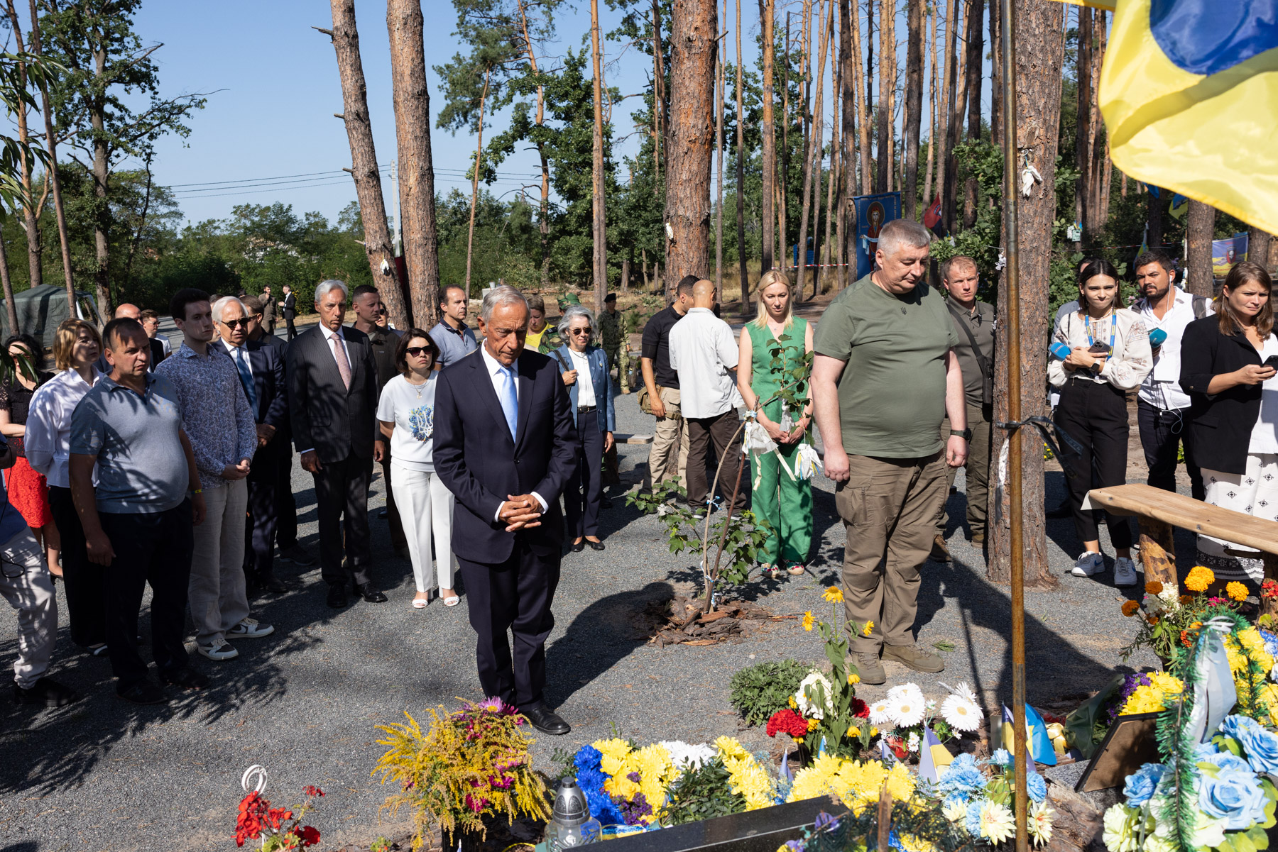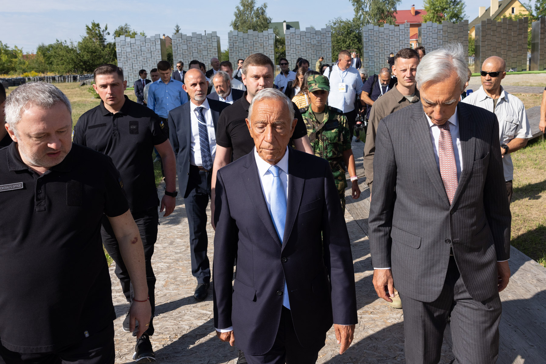 Este primeiro dia de visita iniciou-se na cidade de Bucha, local de um dos massacres provocados pela ocupação russa, onde foram encontrados numerosos civis em valas comuns. No memorial, erigido em memória das vítimas, o Presidente da República reforçou o apoio de Portugal nas investigações forenses para levar à justiça os responsáveis pelo massacre.
