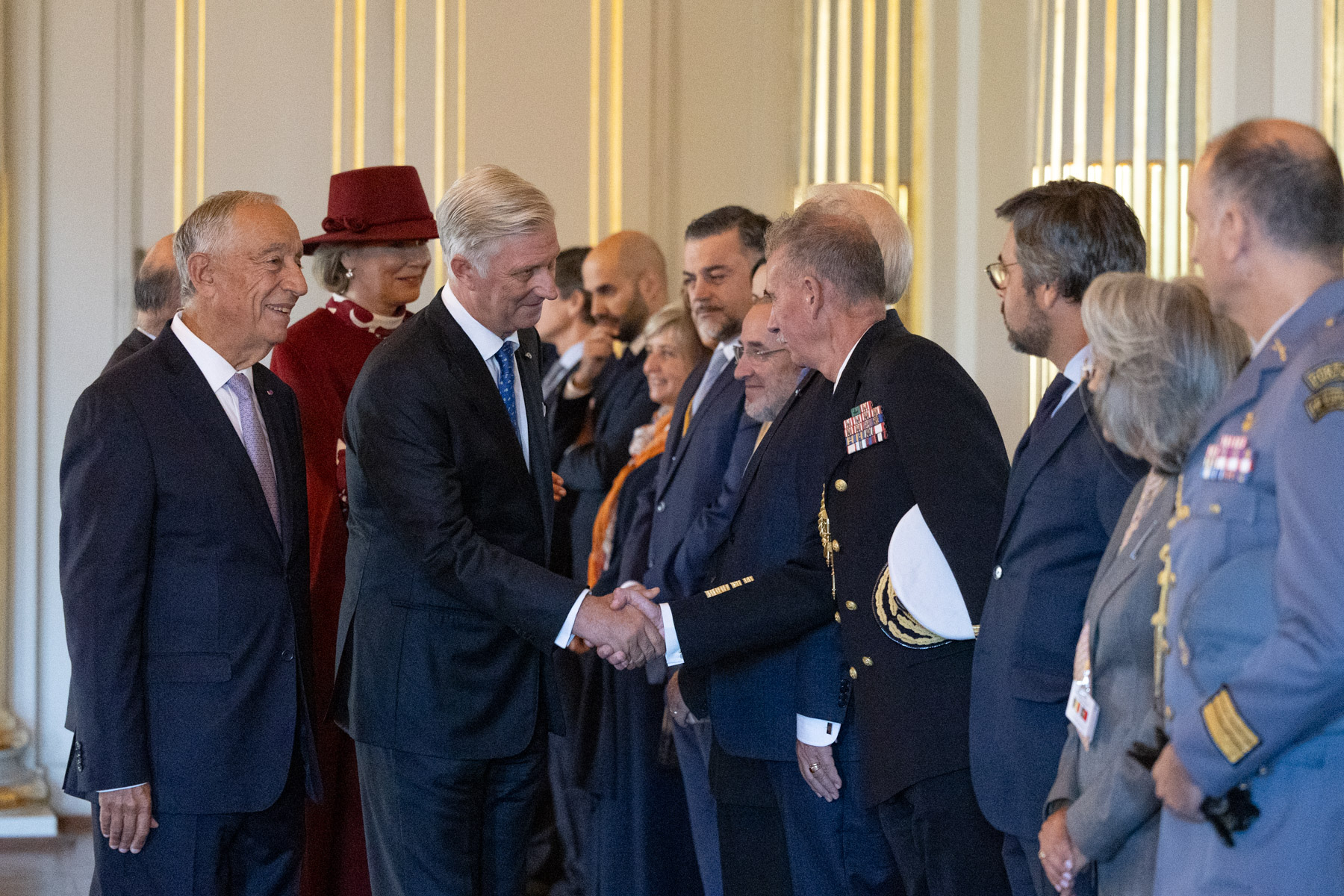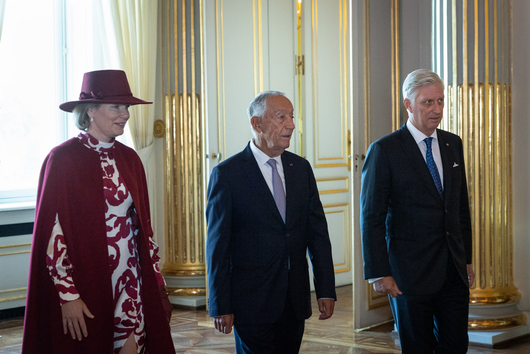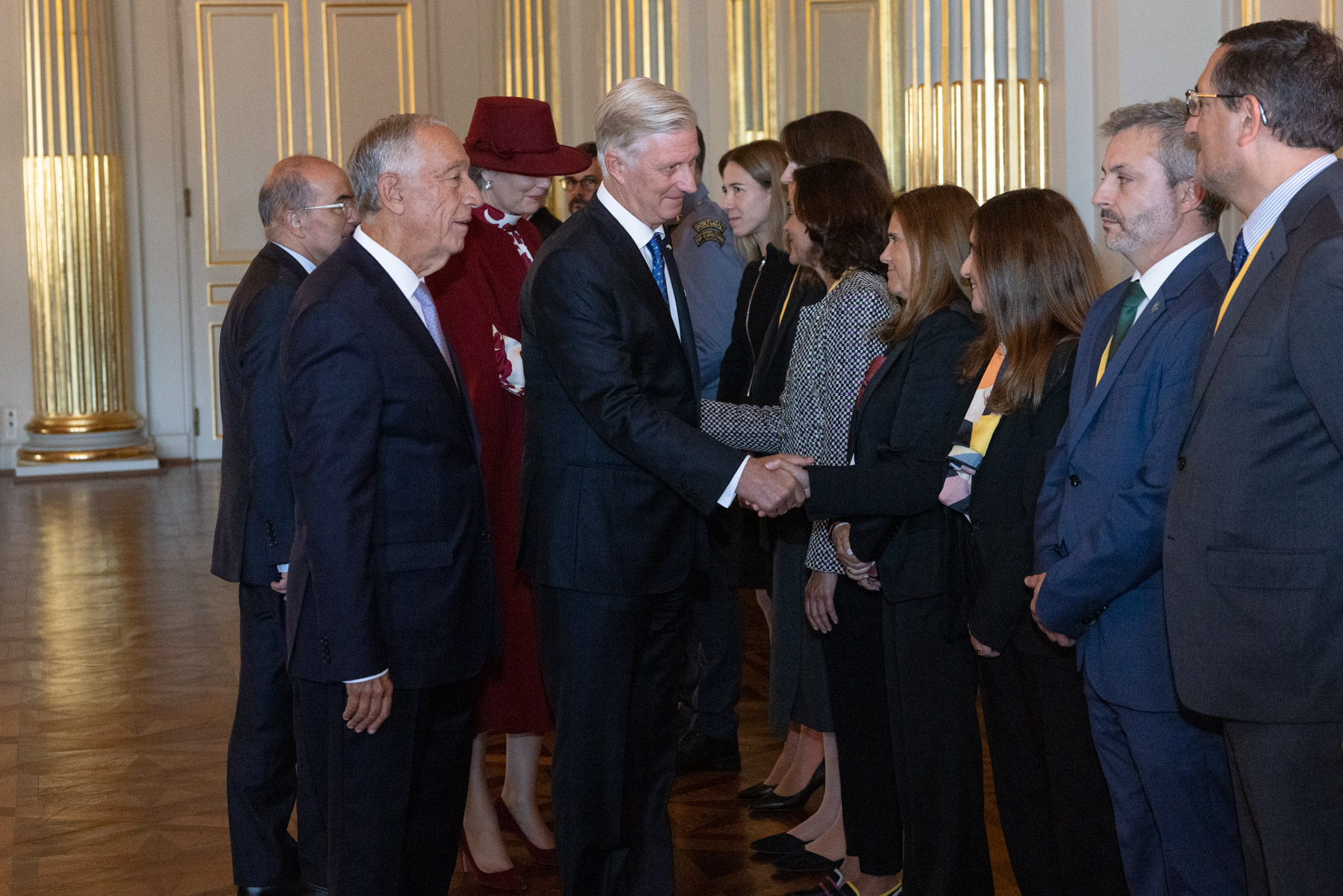 O Presidente da República foi recebido no Palácio Real, em Bruxelas, por Suas Majestades os Reis dos Belgas.