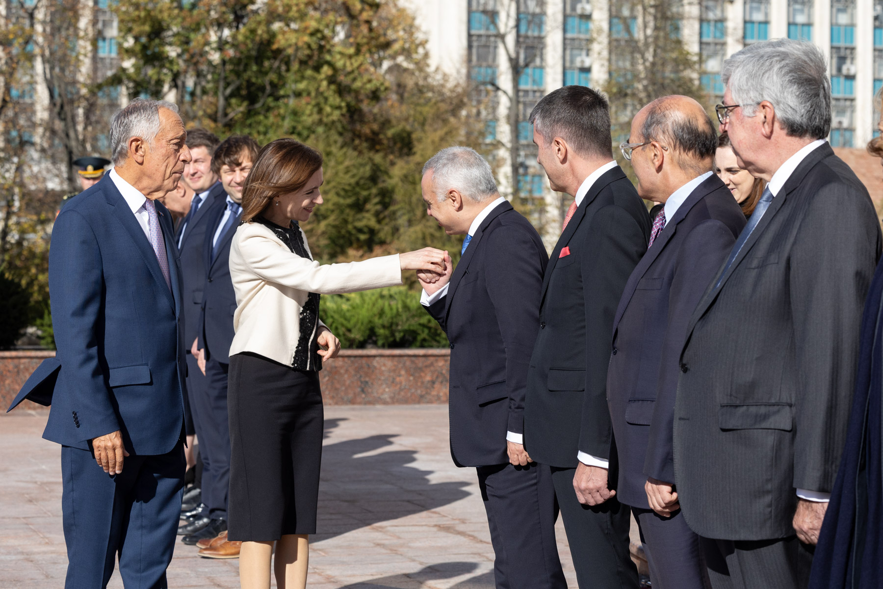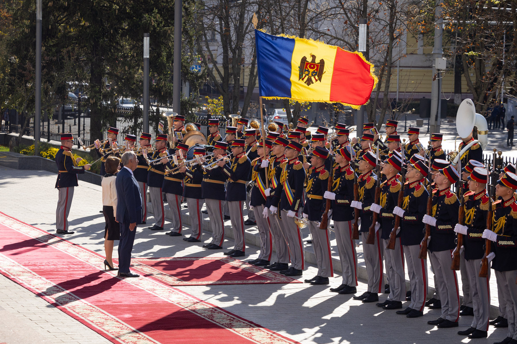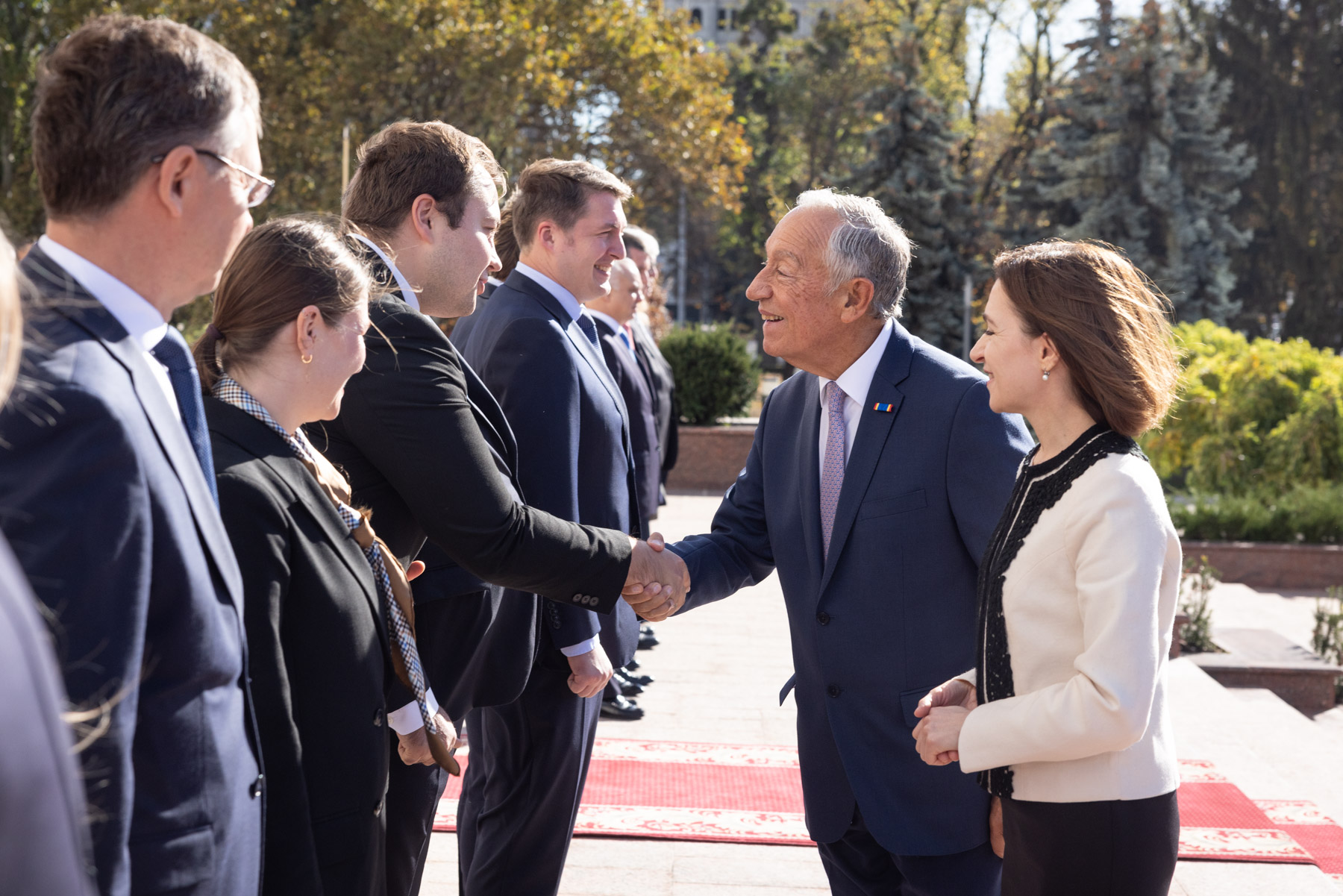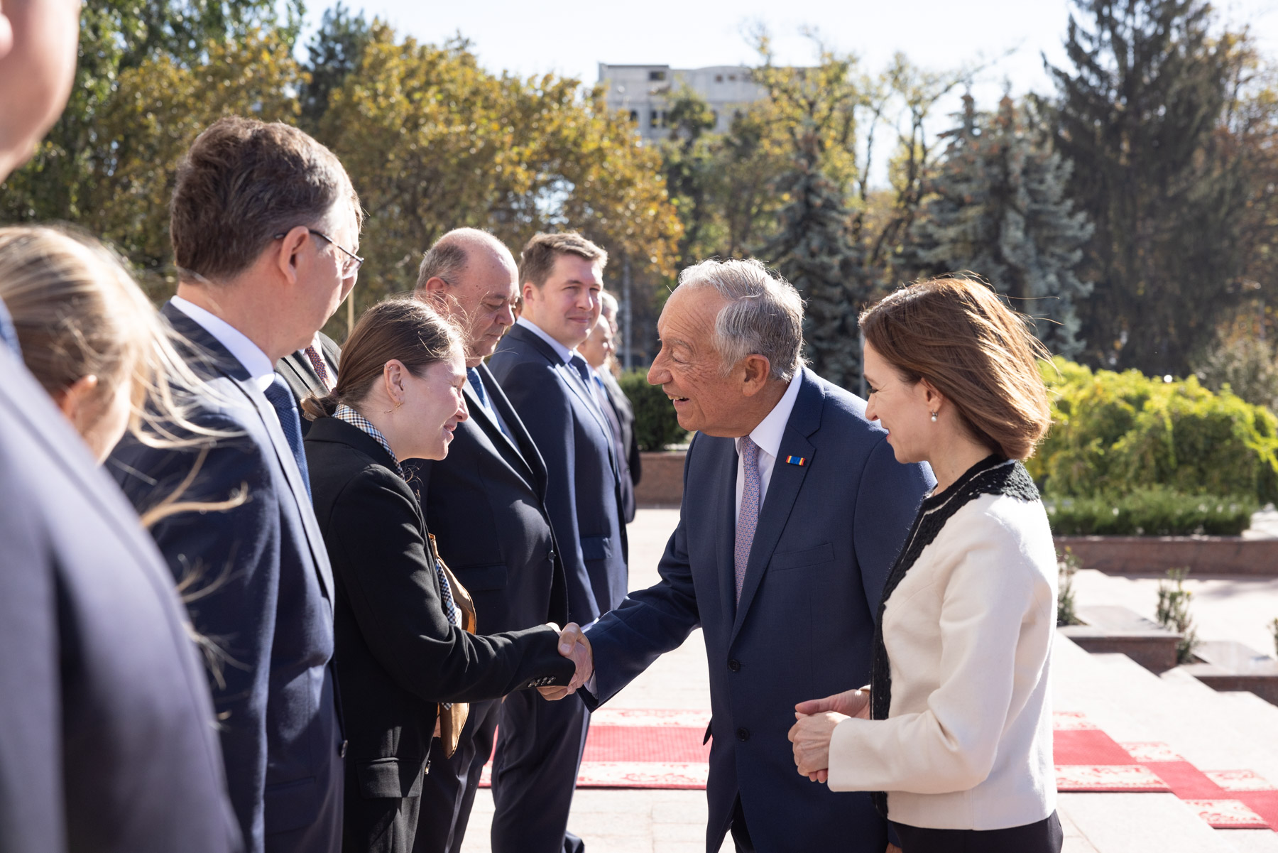 No início da Visita Oficial à Moldova, o Presidente da República foi recebido pela Presidente da República da Moldova, Maia Sandu, com uma cerimónia de boas-vindas no Palácio Presidencial em Chisinau.