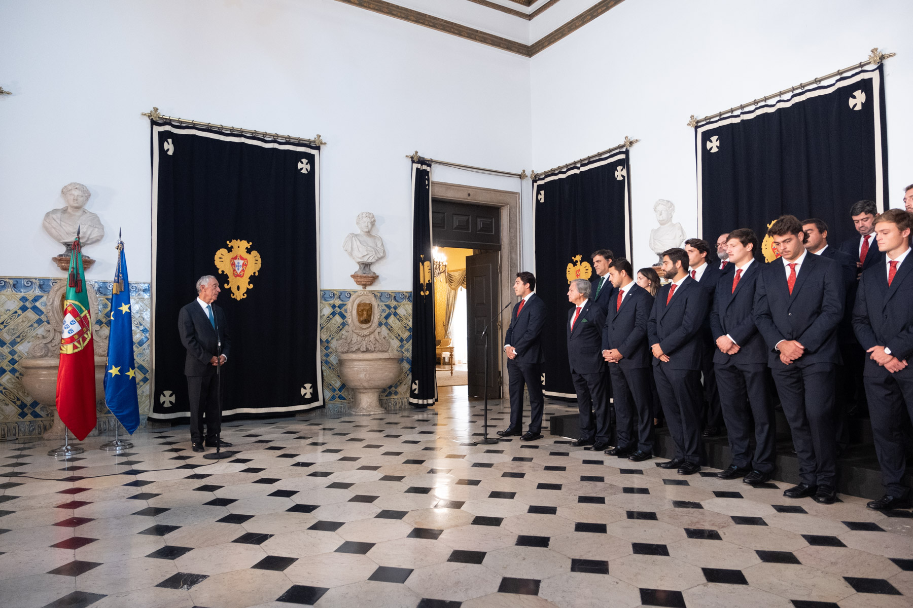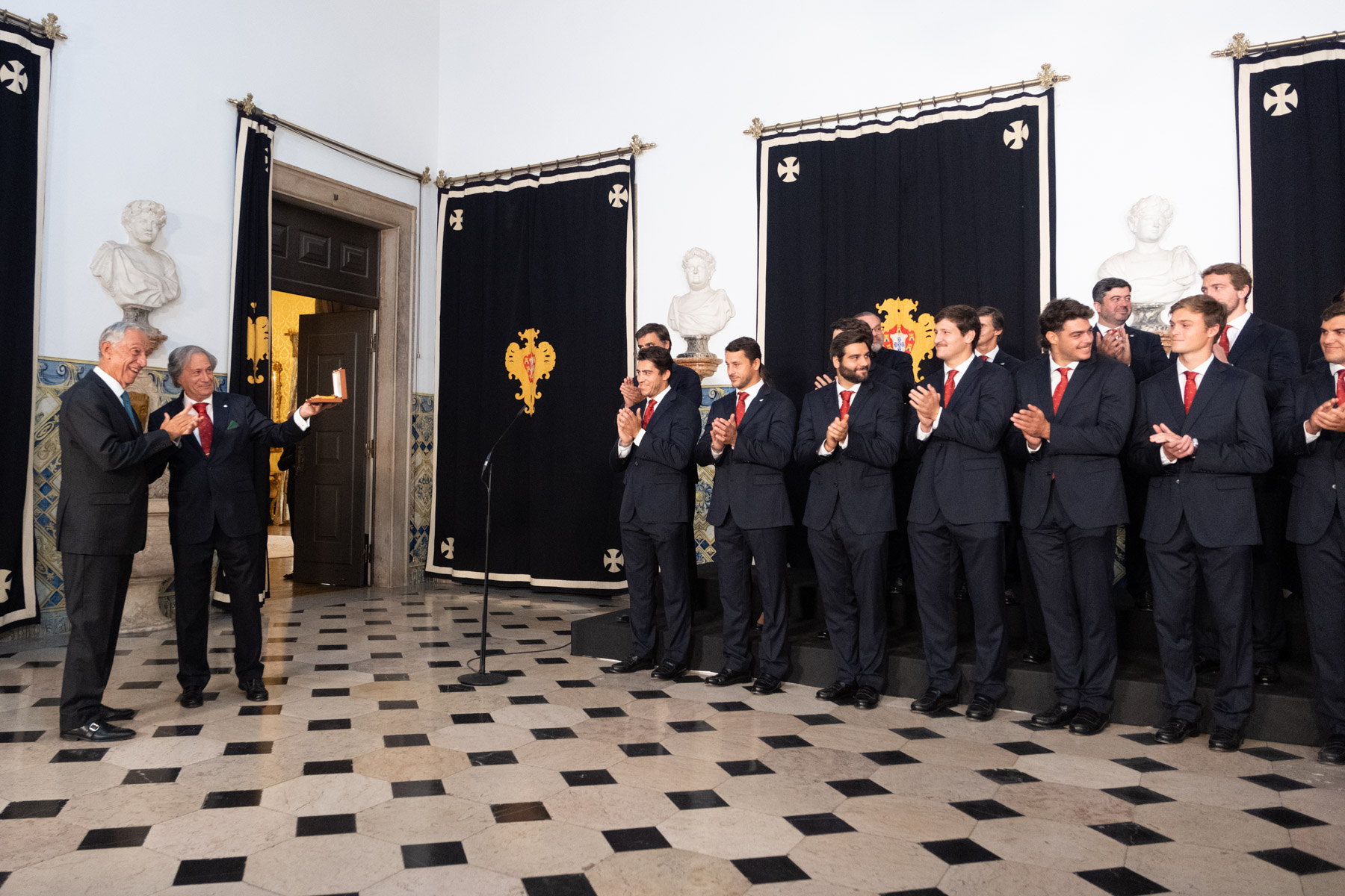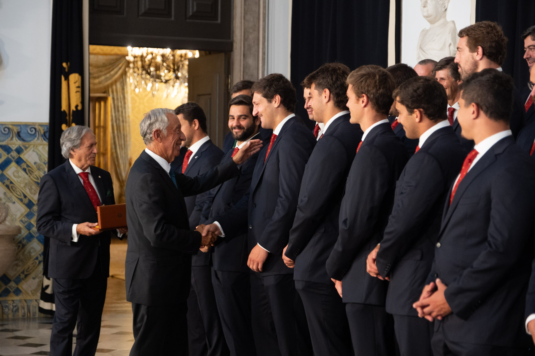 O Presidente da República recebeu, no Palácio de Belém, a Seleção Nacional de Râguebi, tendo no final condecorado a Federação de Rugby como Membro Honorário da Ordem da Instrução Pública.