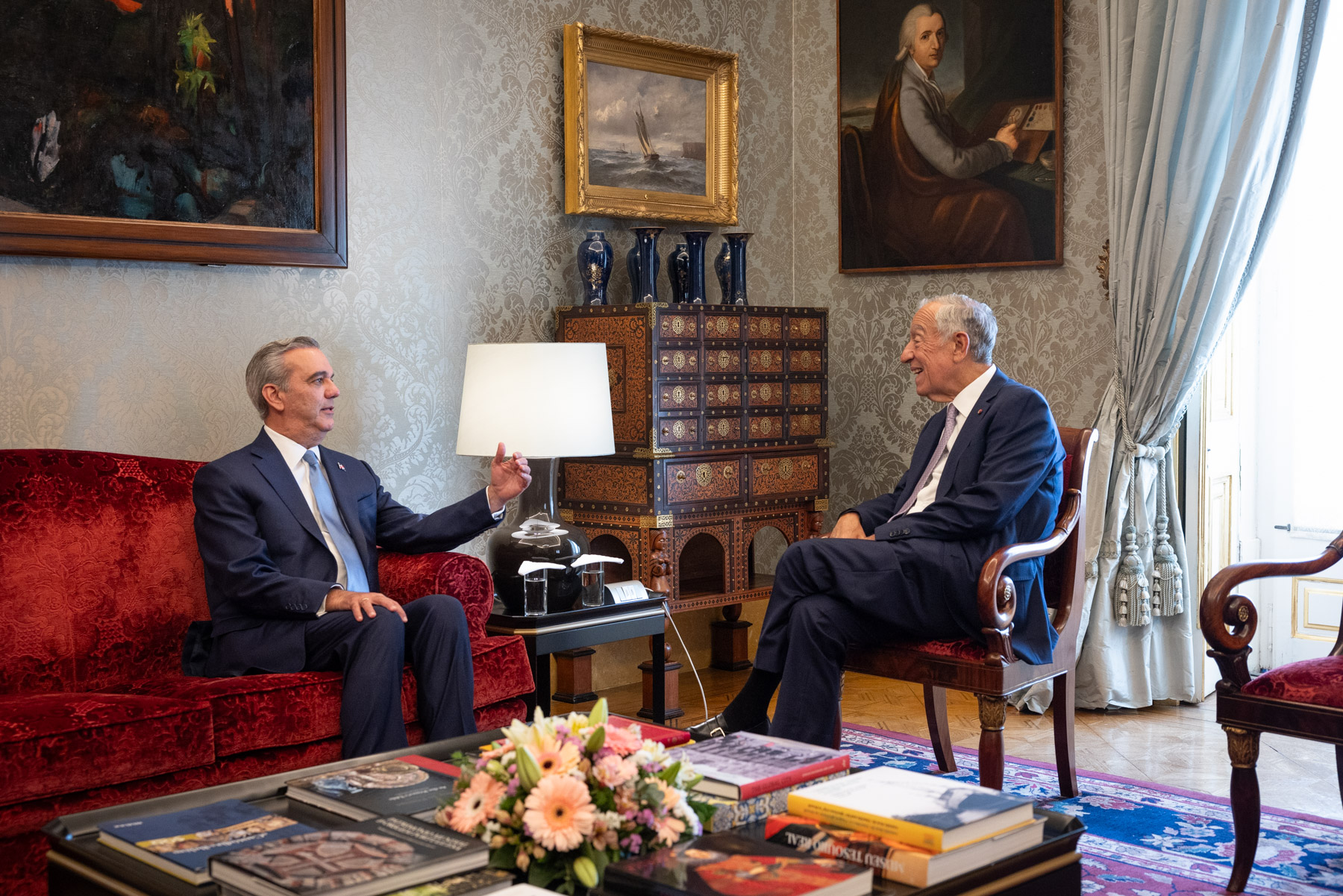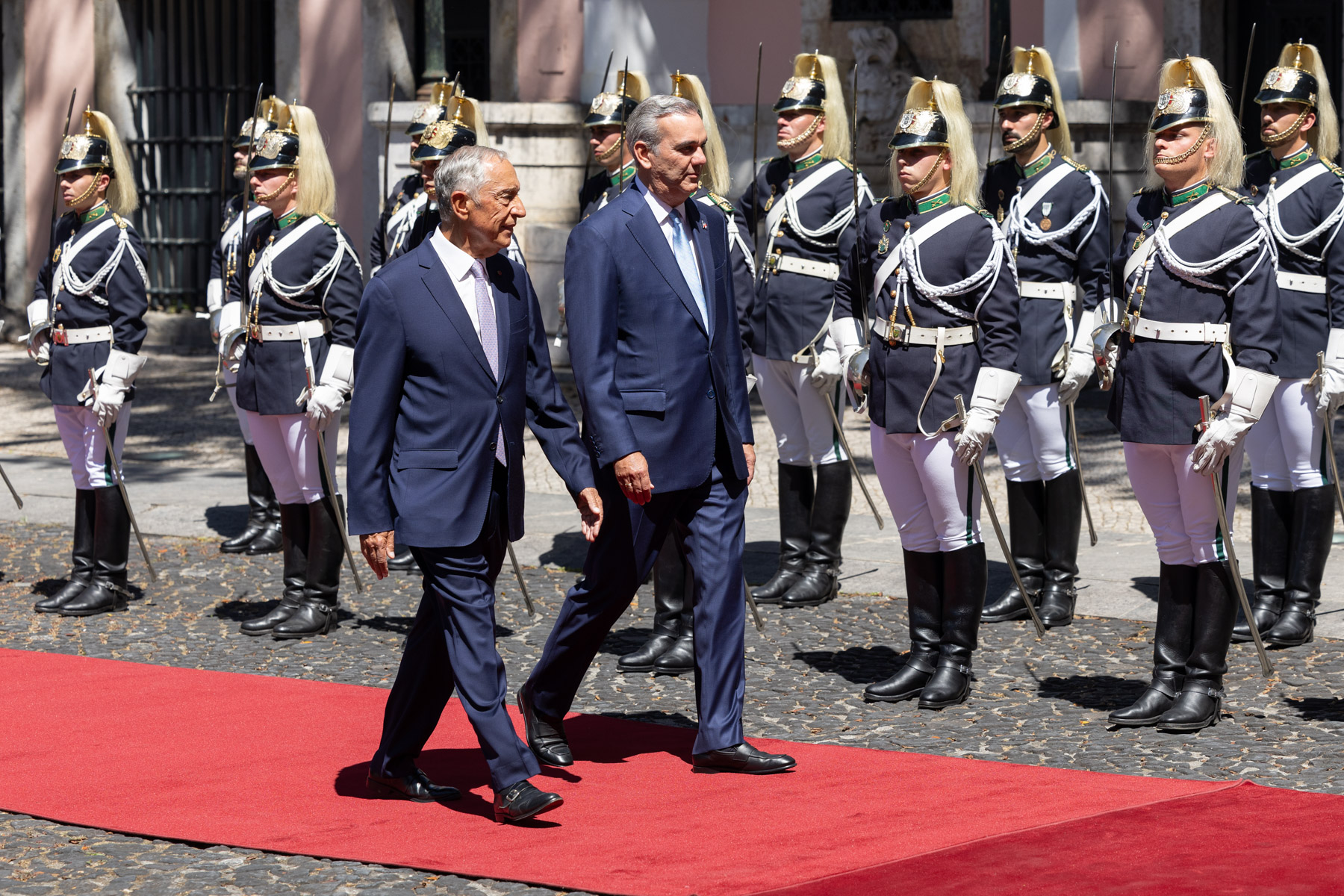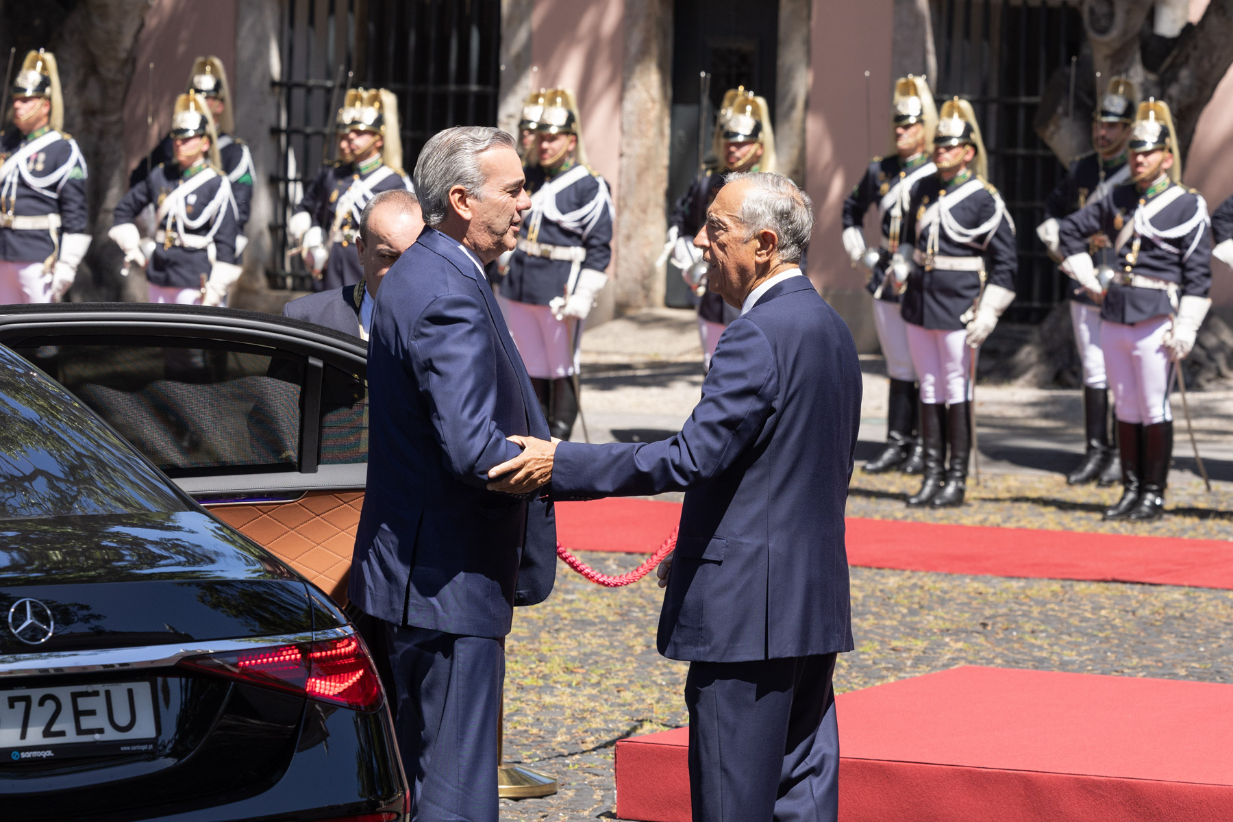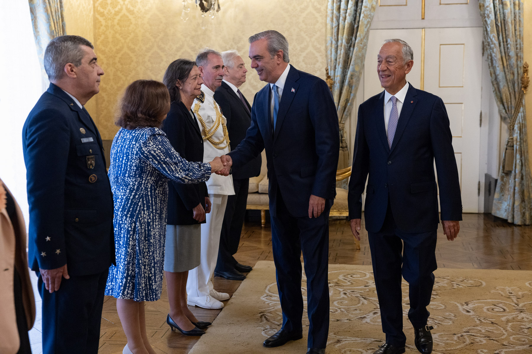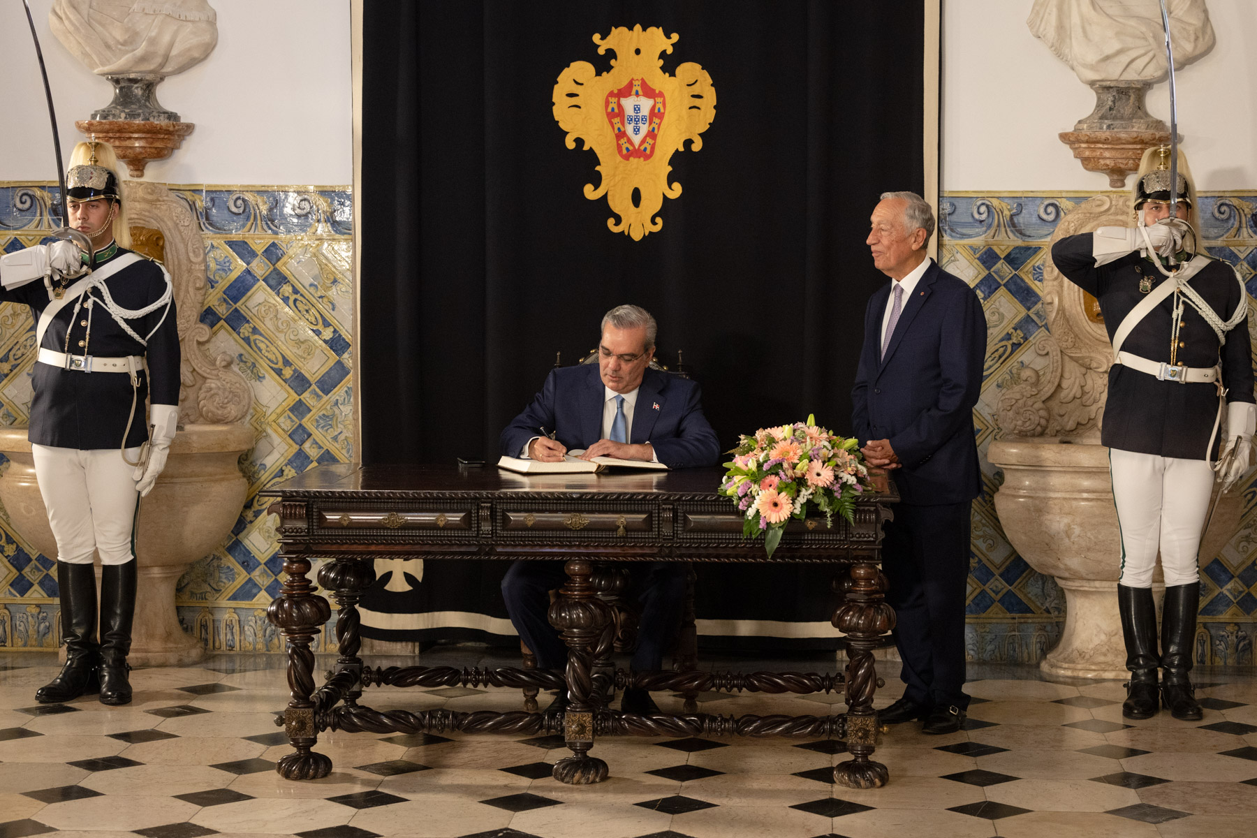 O Presidente da República Dominicana, Luis Abinader, foi recebido, no Palácio de Belém, pelo Presidente Marcelo Rebelo de Sousa, no âmbito da Visita Oficial que realiza a Portugal.