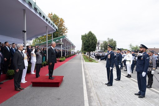 Perante os titulares dos Órgãos de Soberania, distintos convidados e muitos assistentes, foram prestadas Honras militares ao Presidente da República com a execução do Hino Nacional pela Banda de Música da Força Aérea, acompanhados de uma salva de 21 tiros pelo Regimento de Artilharia N.º 4, e realizada a revista às Forças em Parada.