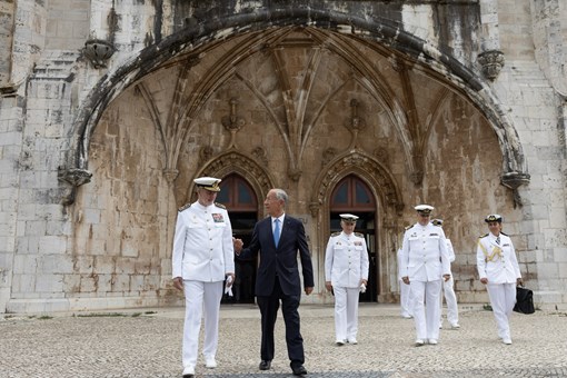 O Chefe de Estado entregou as insígnias ao Diretor do Museu, Capitão-de-mar-e-guerra Alves Salgado, numa cerimónia realizada no Museu de Marinha.
