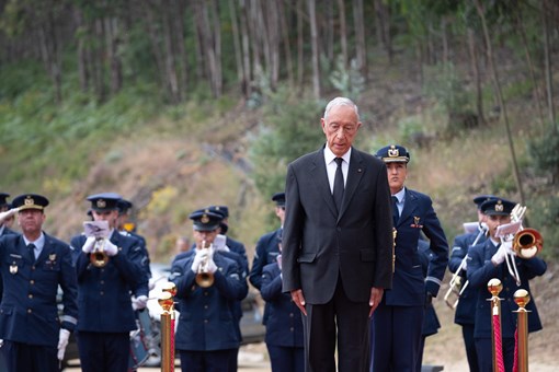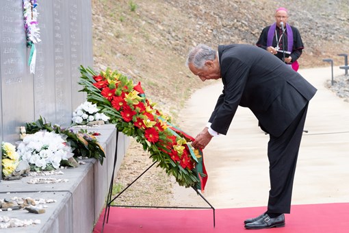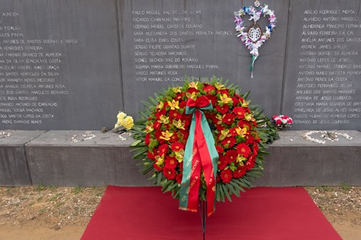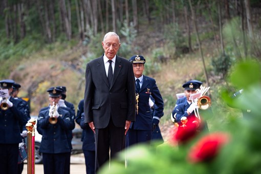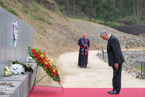 De seguida, o Presidente da República depositou uma coroa de flores junto ao memorial das vítimas dos incêndios, sendo executada a cerimónia de homenagem aos mortos, com um terno de clarins da mesma banda e sobrevoo de quatro aeronaves F-16 da Força Aérea Portuguesa.