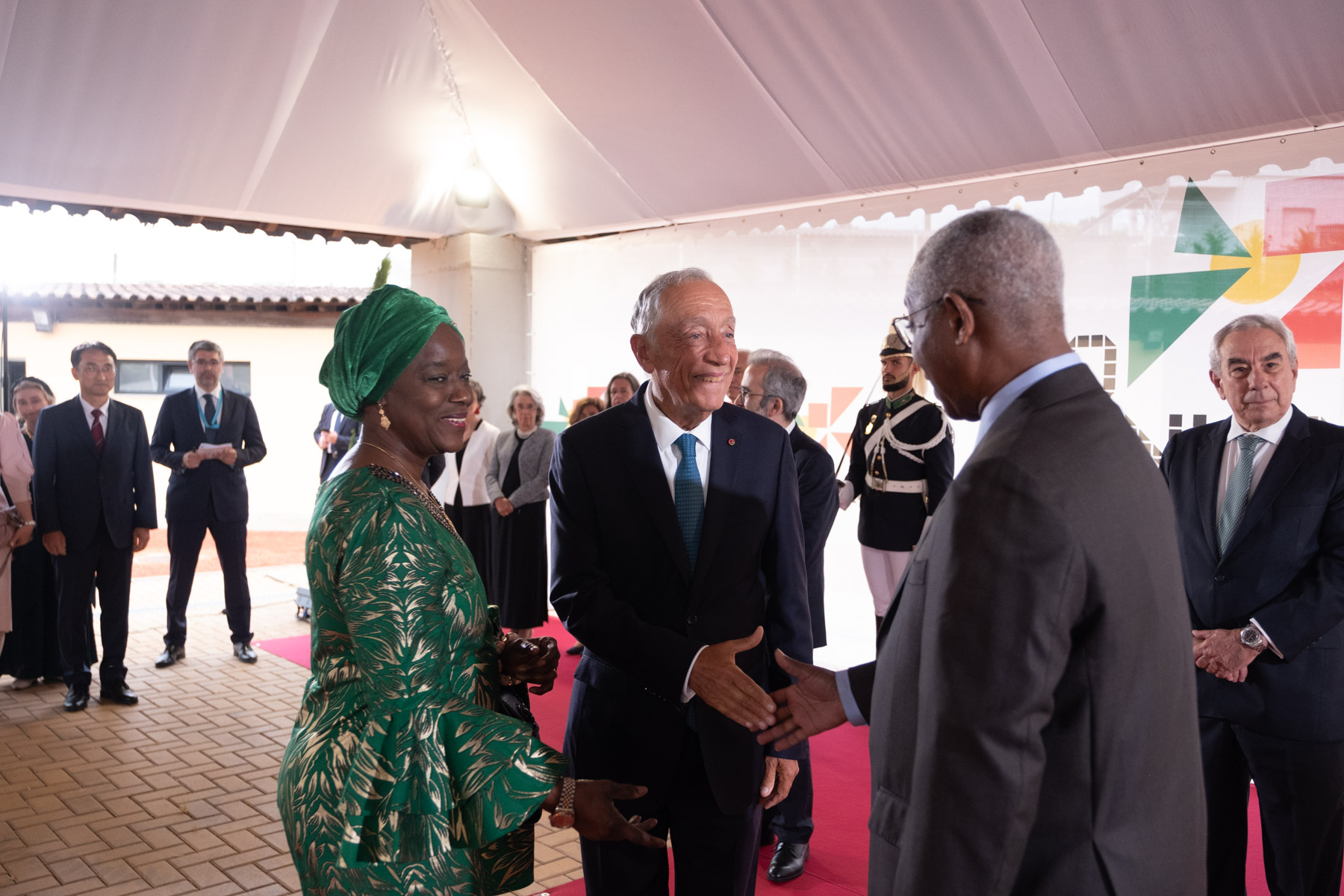 O Presidente também participou no cocktail que se seguiu e assistiu, com os representantes diplomáticos, a um concerto da Orquestra Ligeira do Exército e a um espetáculo.