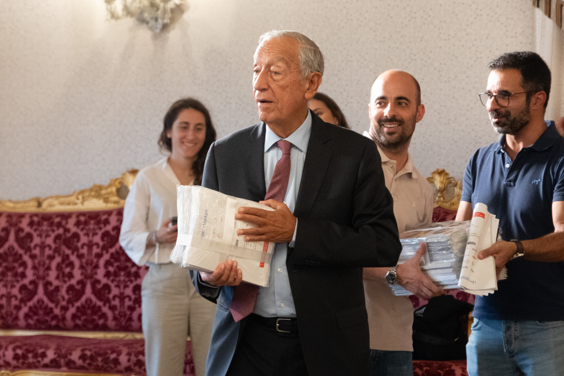 O Presidente da República, editor convidado do número de outubro da revista CAIS, recebeu, no Palácio de Belém, um grupo alargado de vendedores da revista.