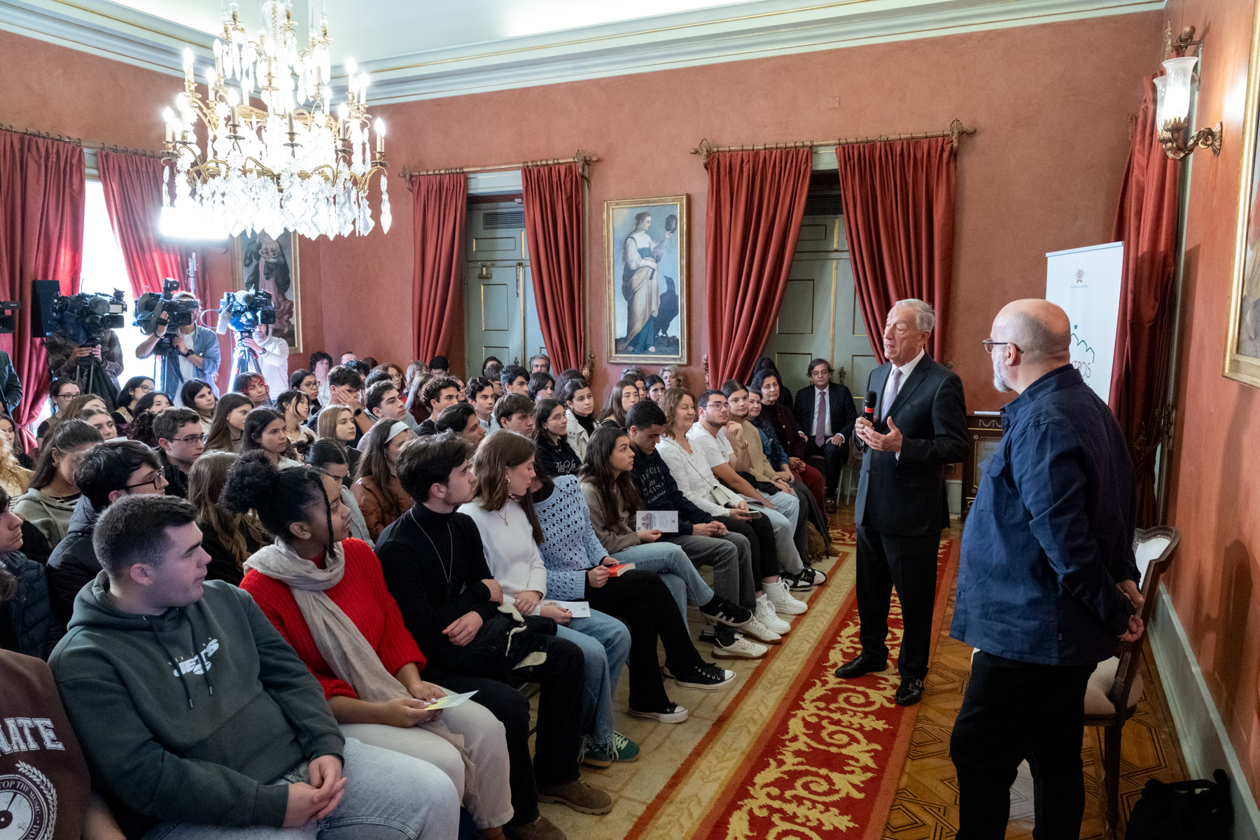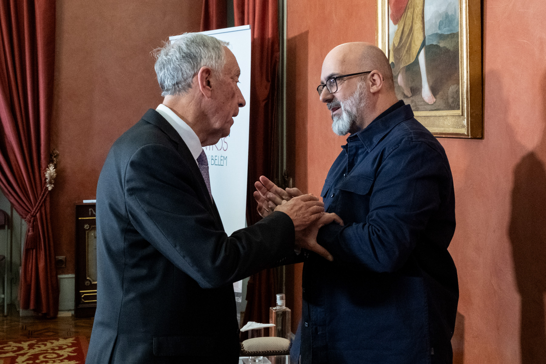 O escritor Valter Hugo Mãe foi o convidado da terceira sessão do programa “Encontros no Palácio de Belém”, na qual participou o Presidente da República que, com esta iniciativa, sublinha a importância das artes e da cultura na construção da identidade portuguesa.