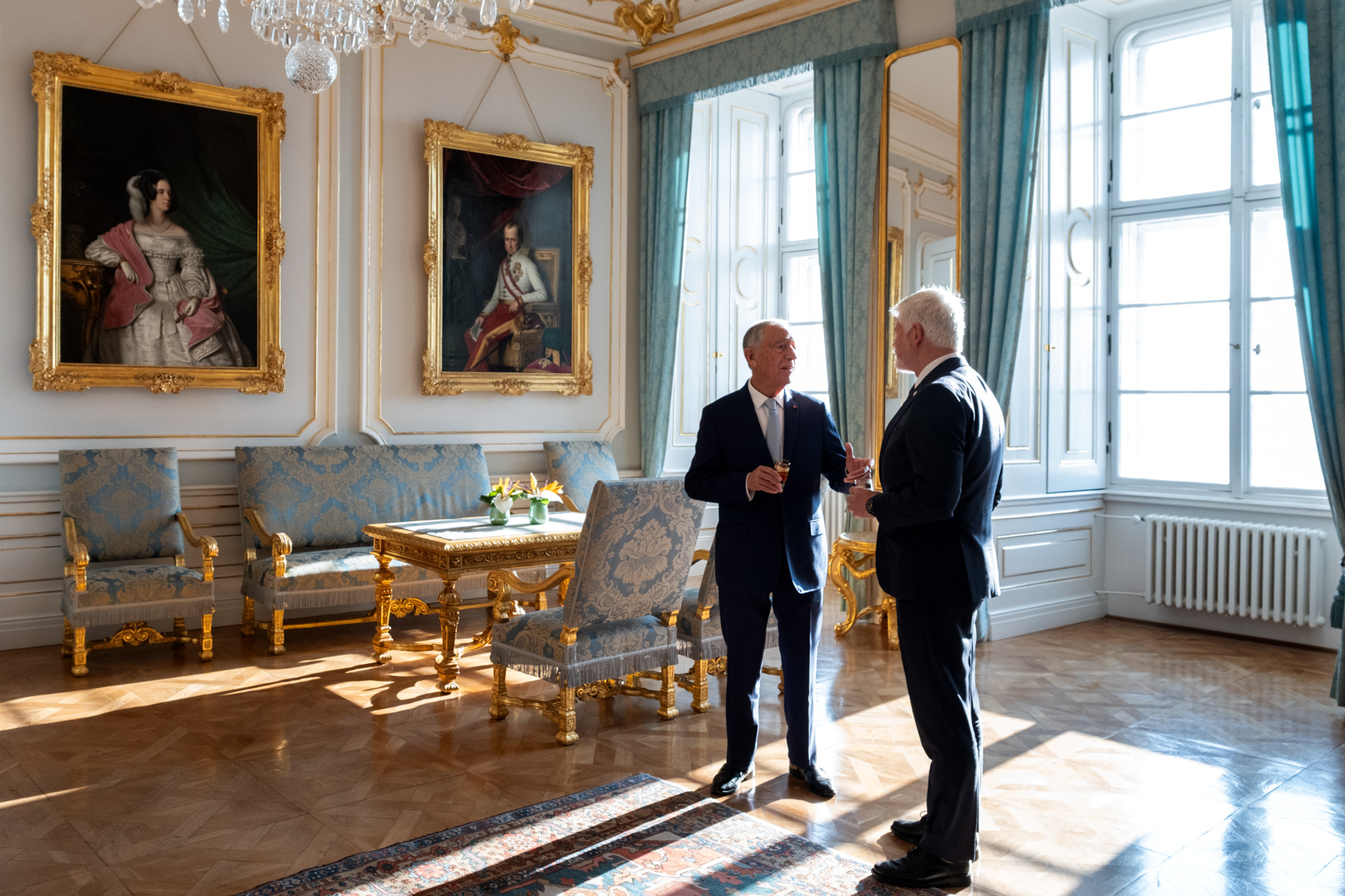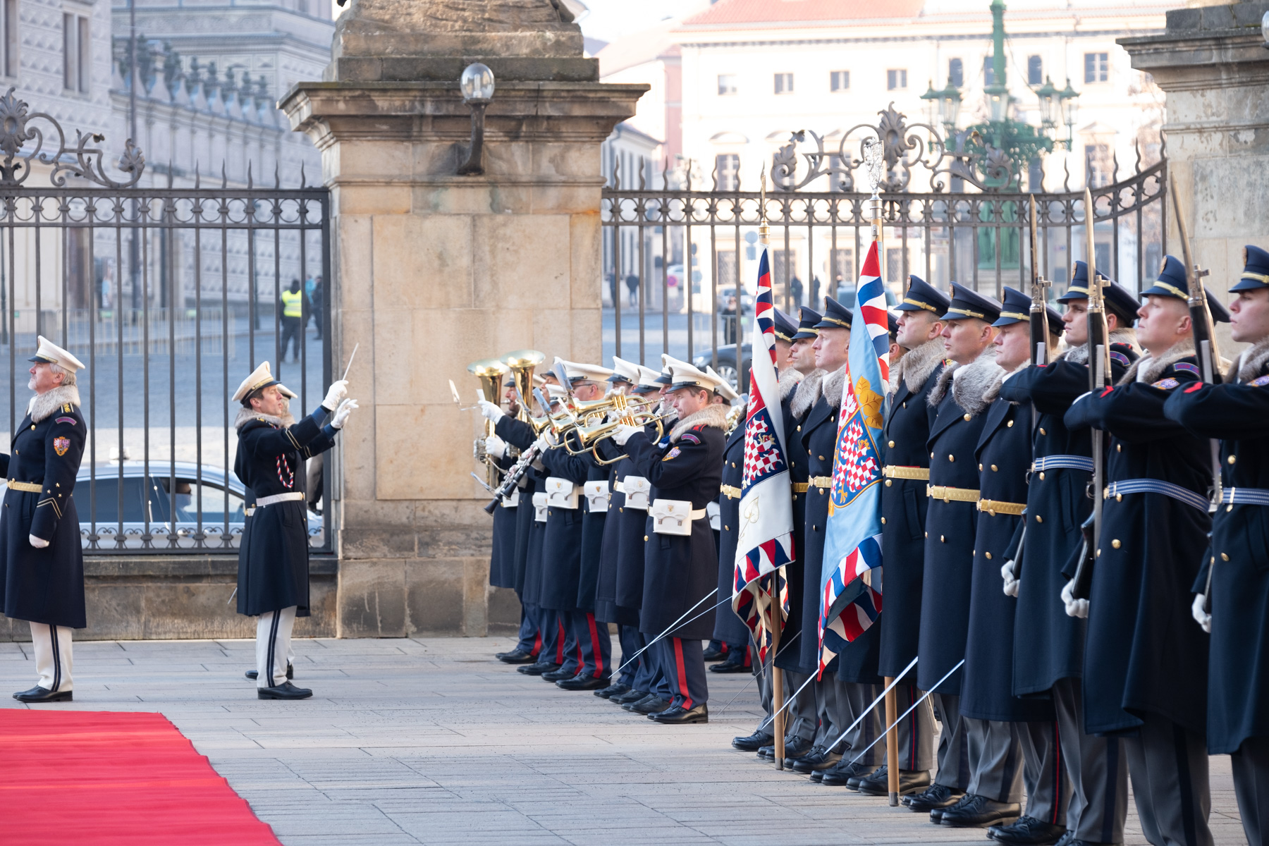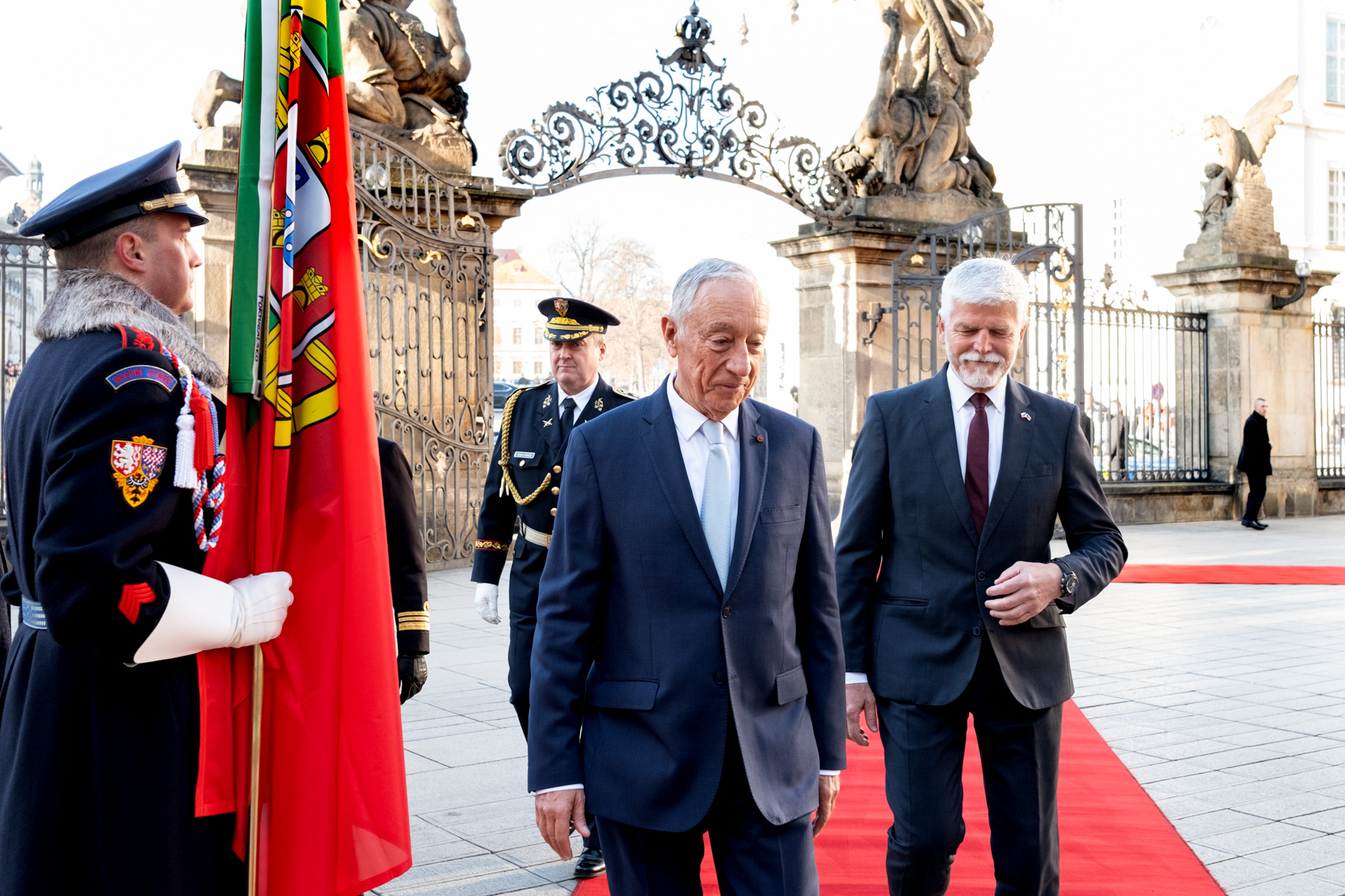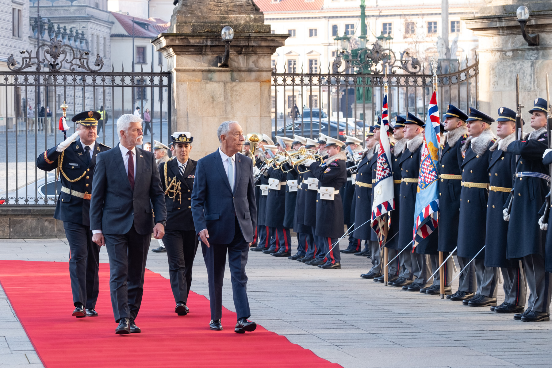 O Presidente da República foi recebido, no Castelo de Praga, pelo Presidente Petr Pavel. Na Cerimónia oficial de boas-vindas foram prestadas Honras Militares, com a execução dos Hinos Nacionais dos dois países e revista à Guarda de Honra.