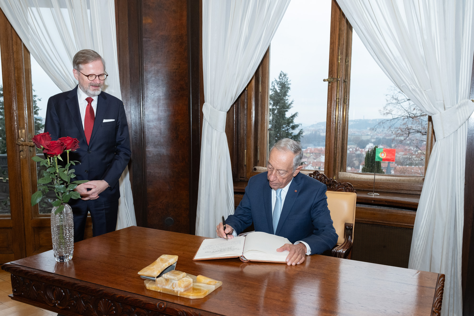 O Presidente da República reuniu-se, em Kramář’s Vila, com o Primeiro-Ministro da Chéquia, Petr Fiala, tendo ambos estado acompanhados pelas respetivas delegações.