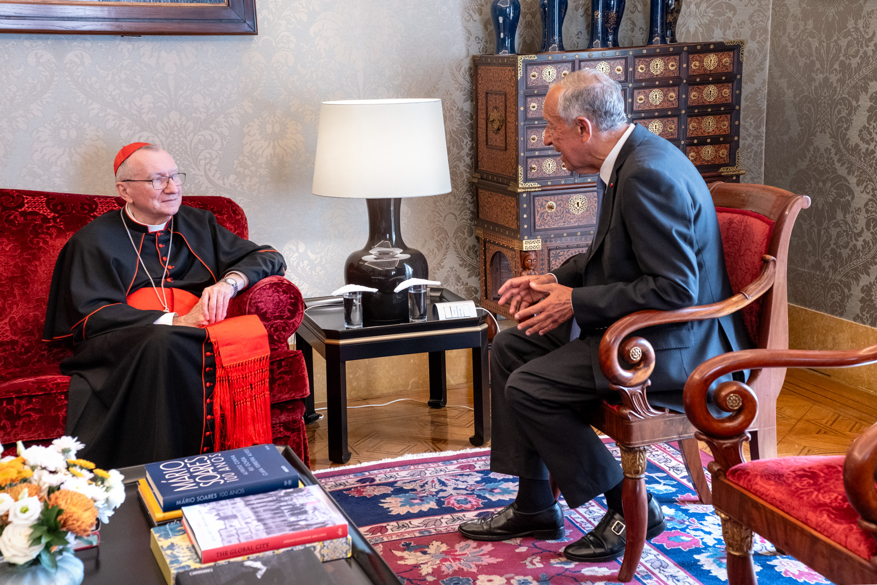 O Senhor Presidente e o Cardeal Parolin passaram em revista as relações bilaterais de excelência entre Portugal e a Santa Sé e trocaram pontos de vista sobre os principais assuntos da atualidade internacional.