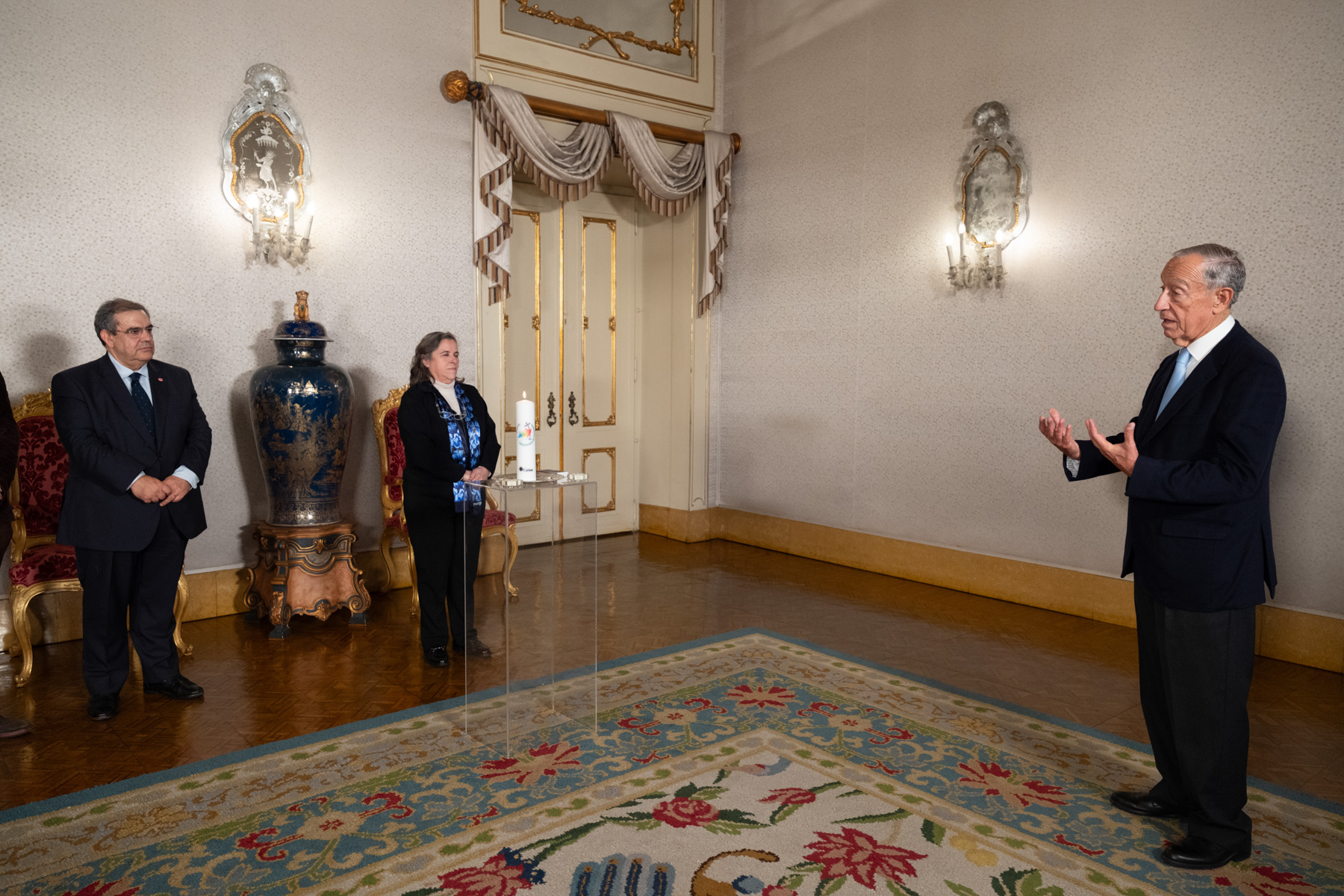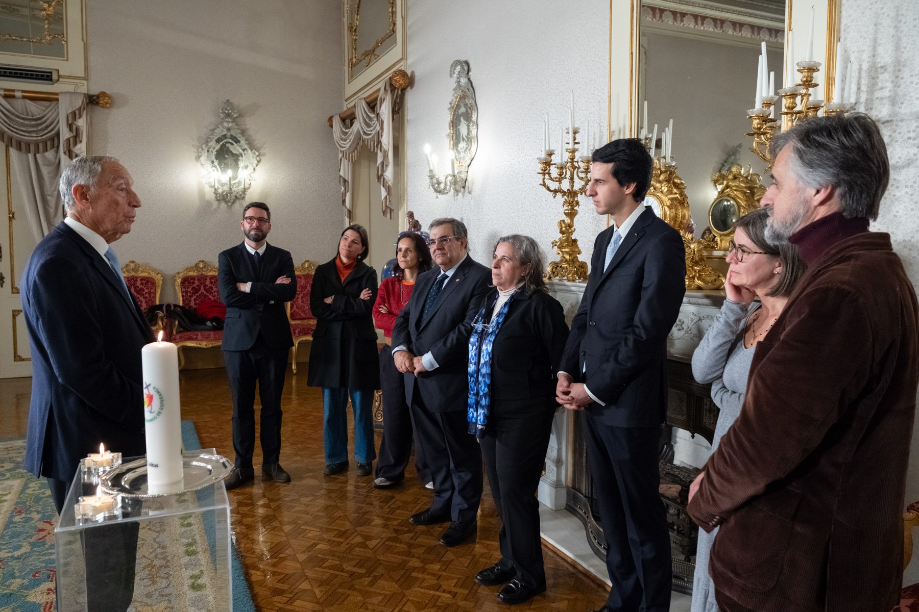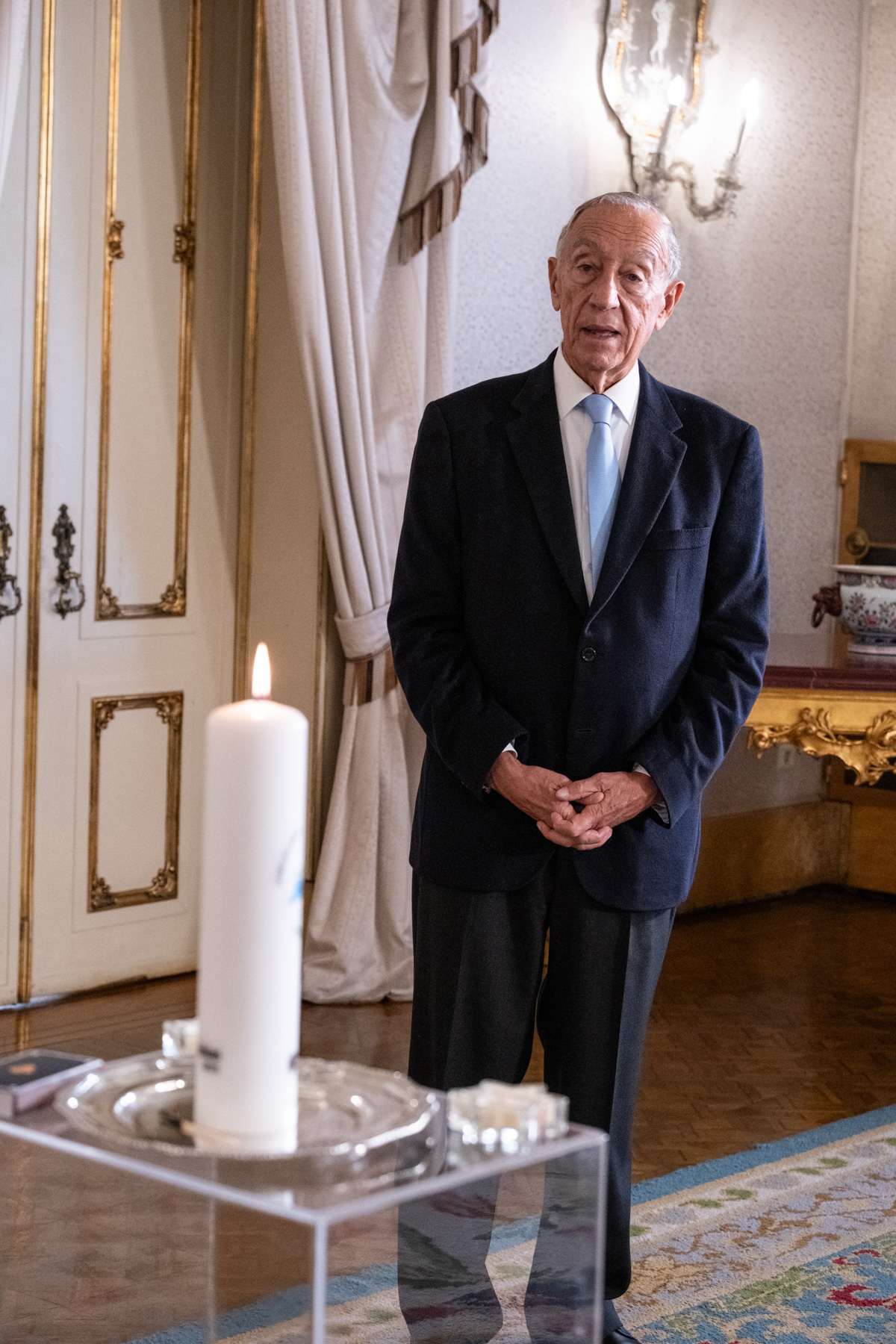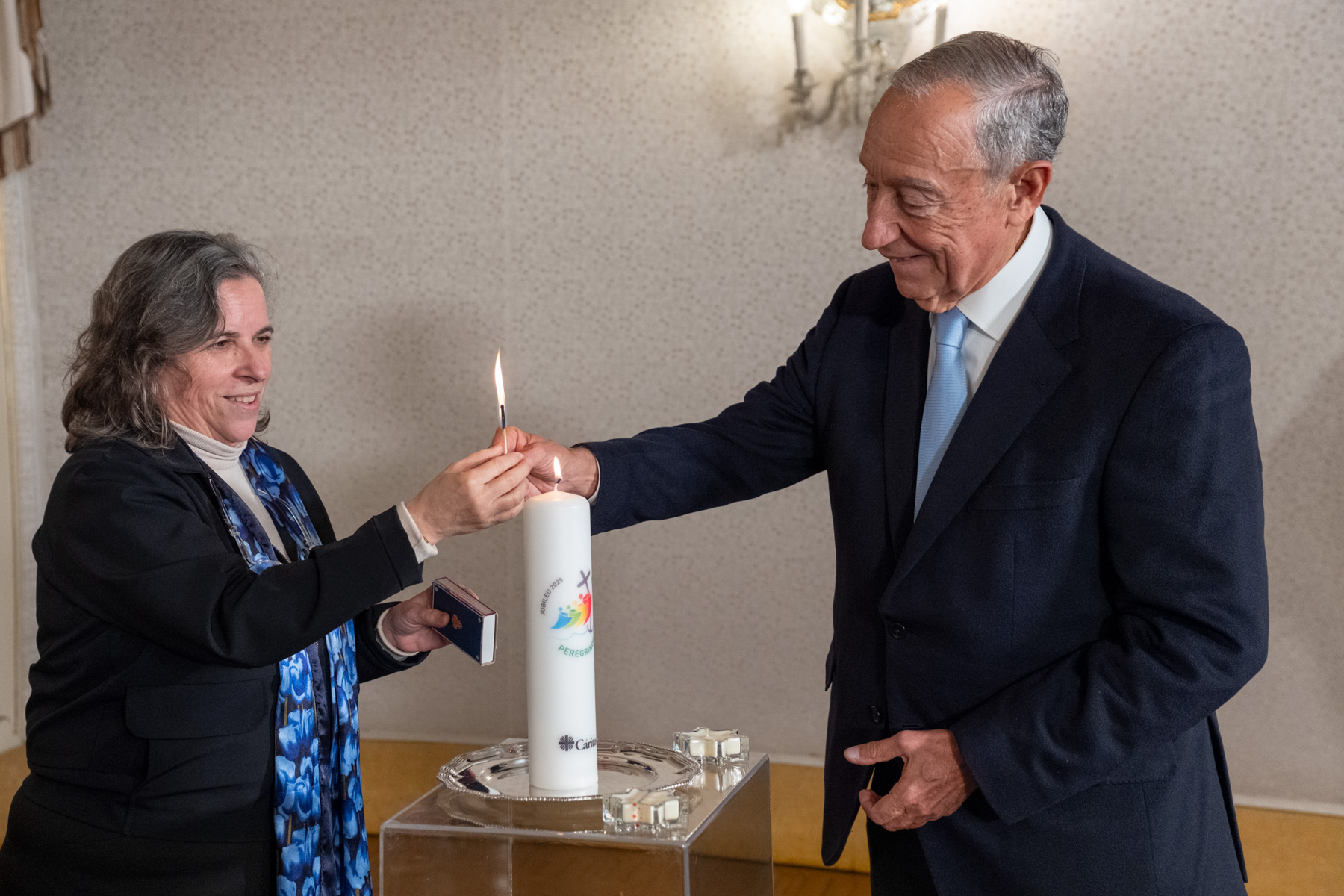 O Presidente Marcelo Rebelo de Sousa acendeu a Vela da Cáritas, uma iniciativa da campanha “10 Milhões de Estrelas - Um Gesto Pela Paz” 2025, um gesto simbólico que reforça a dimensão de cuidado e serviço da Cáritas aos mais vulneráveis.