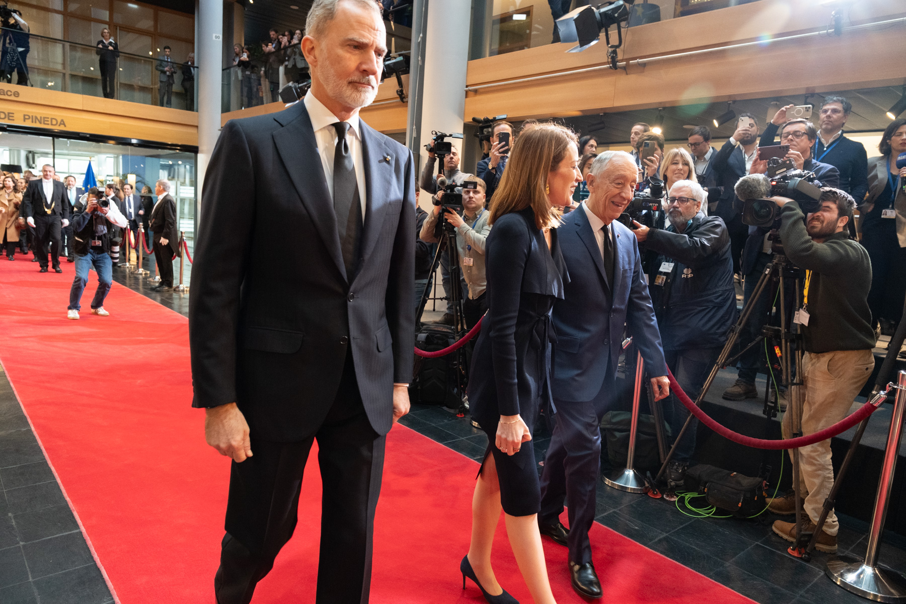 Após a fotografia oficial e a execução dos hinos nacionais, os dois Chefes de Estado reuniram-se com a Presidente do Parlamento Europeu. Concluído o encontro, o Presidente Marcelo Rebelo de Sousa e o Rei Felipe VI de Espanha discursaram na sessão plenária solene.