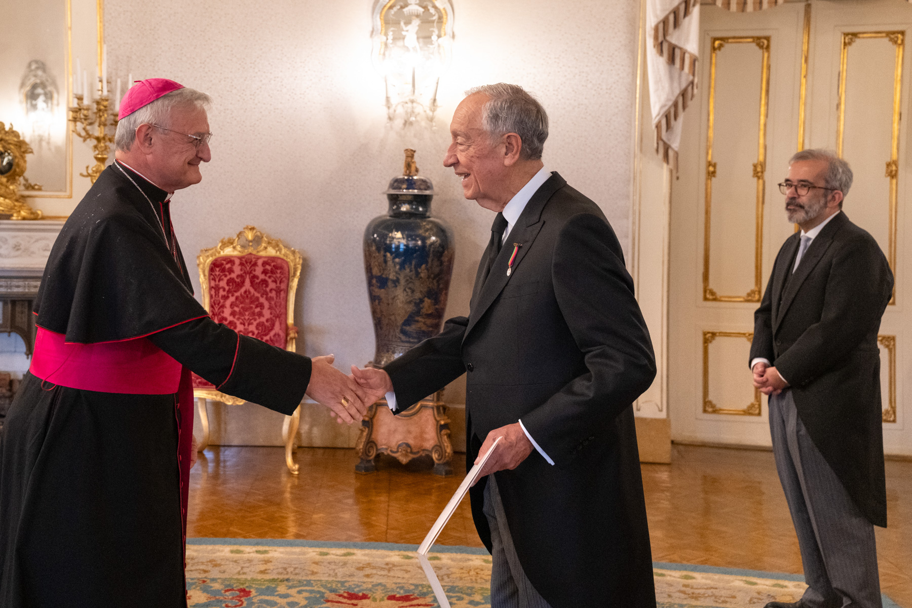 O Presidente Marcelo Rebelo de Sousa recebeu, em cerimónia no Palácio de Belém, as cartas credenciais do novo Núncio Apostólico em Portugal, D. Andrés Carrascosa Coso.