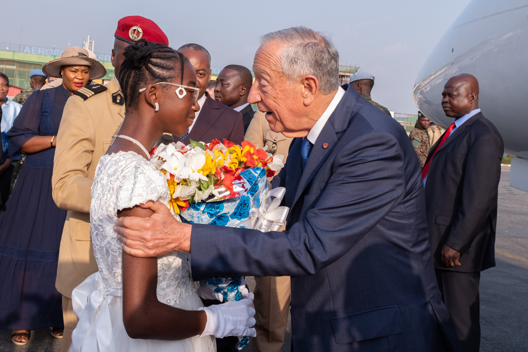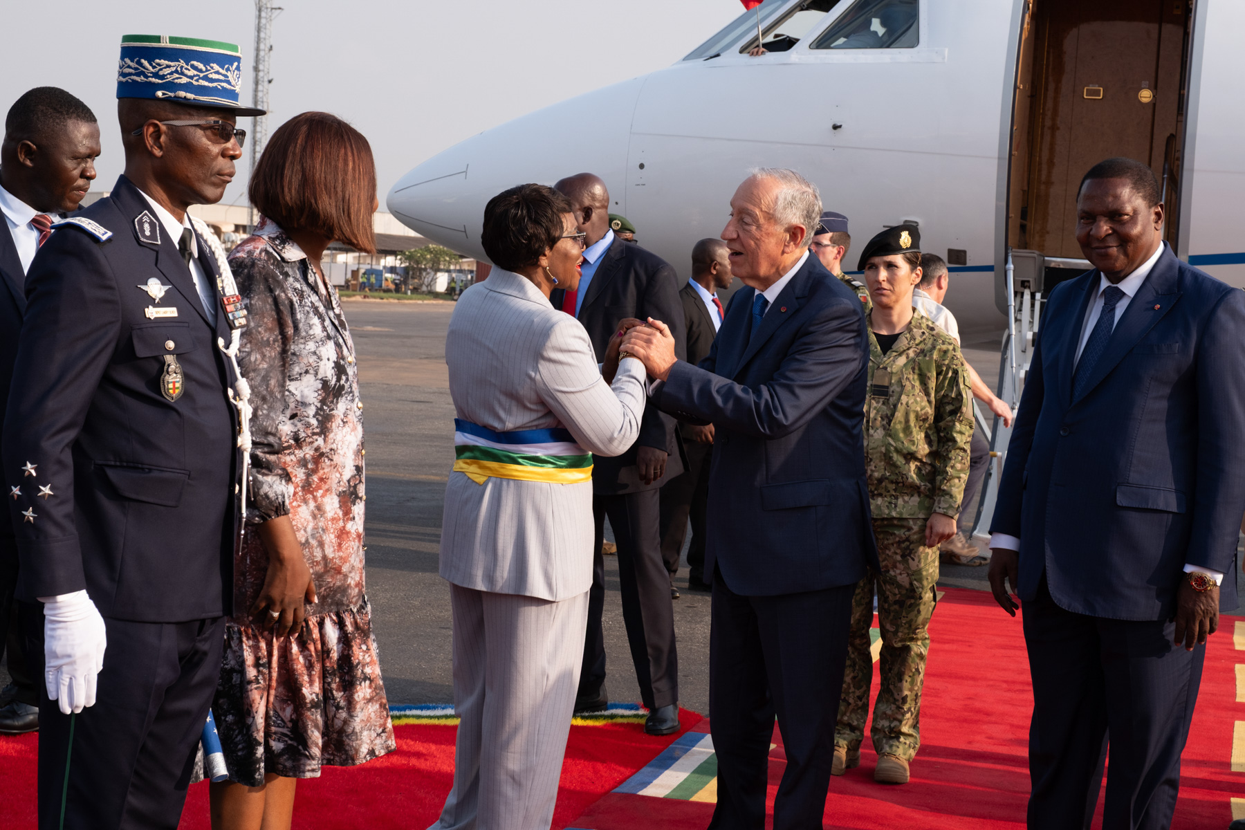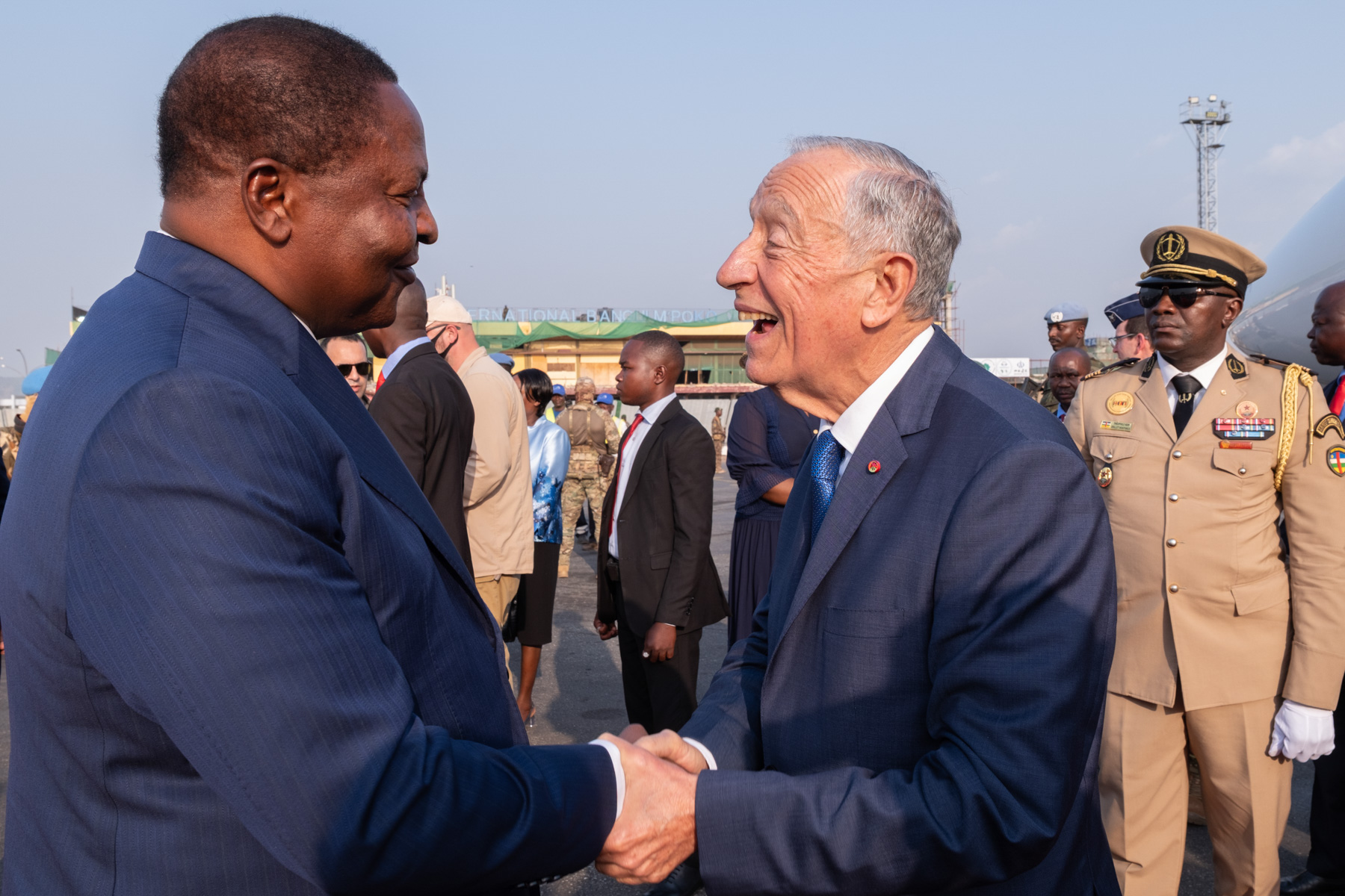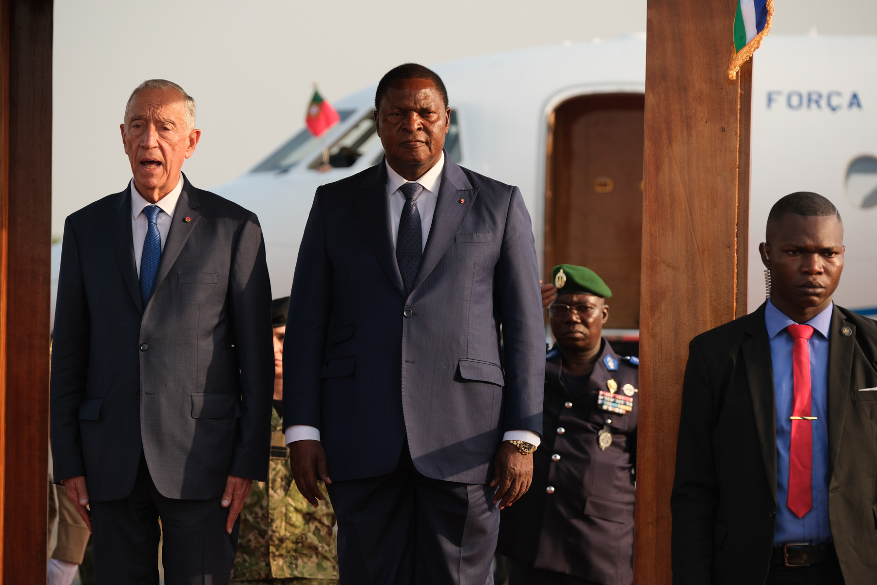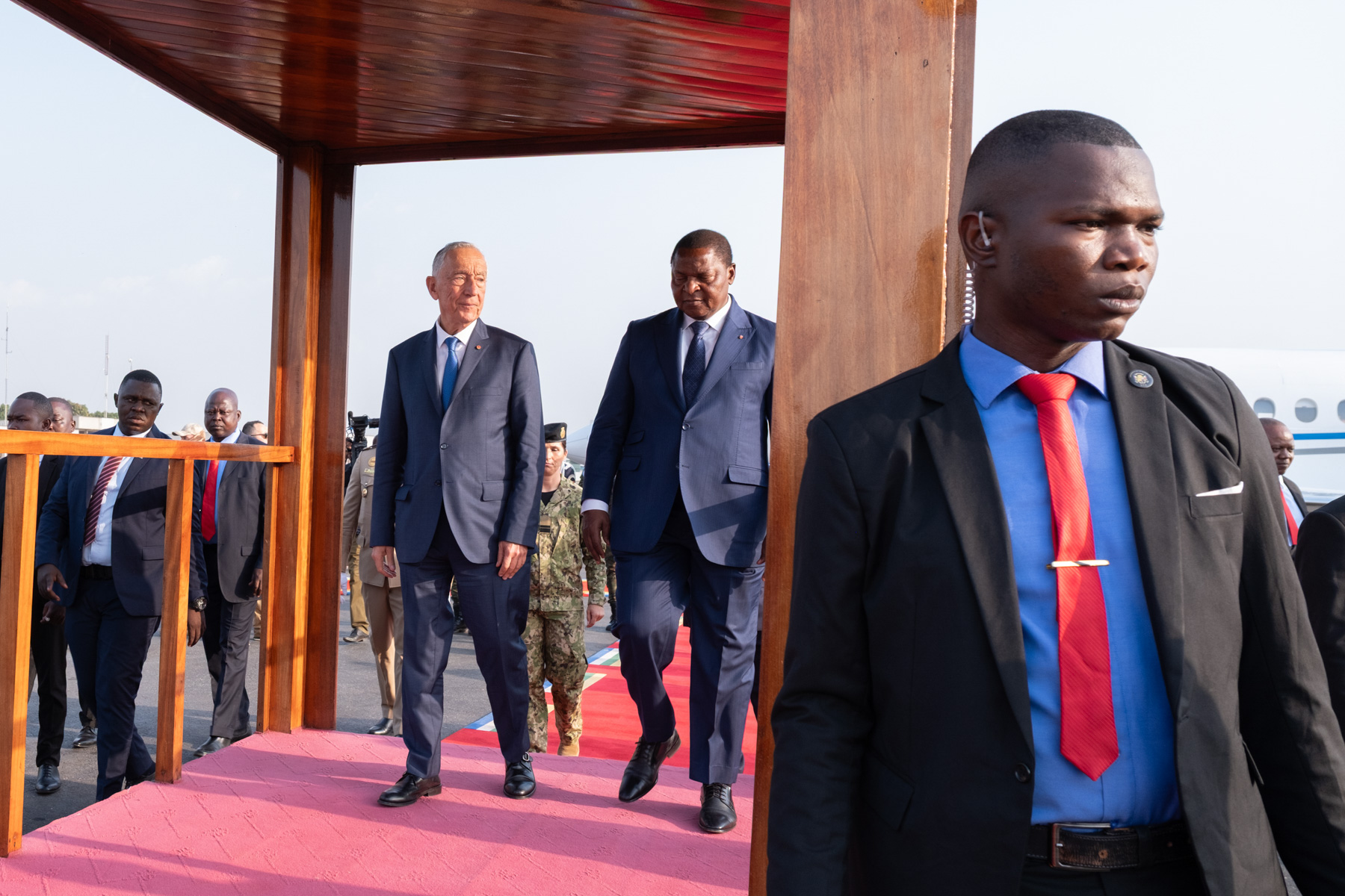 O Presidente Marcelo Rebelo de Sousa foi recebido no aeroporto pelo Presidente da RCA, Faustin-Archange Touadéra, com quem teve conversações no quadro do relacionamento bilateral.