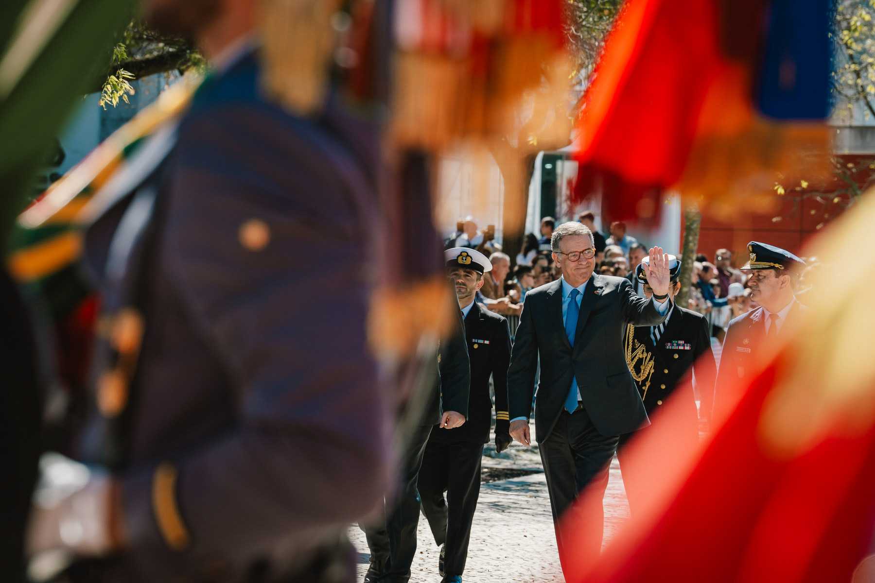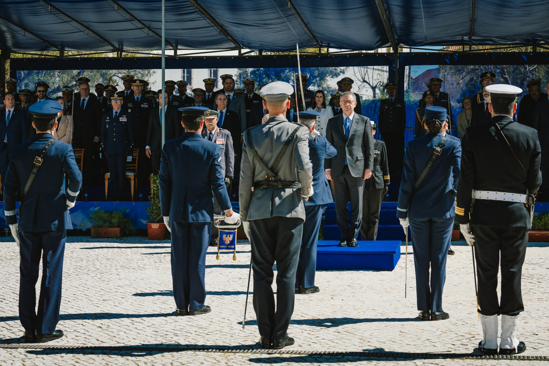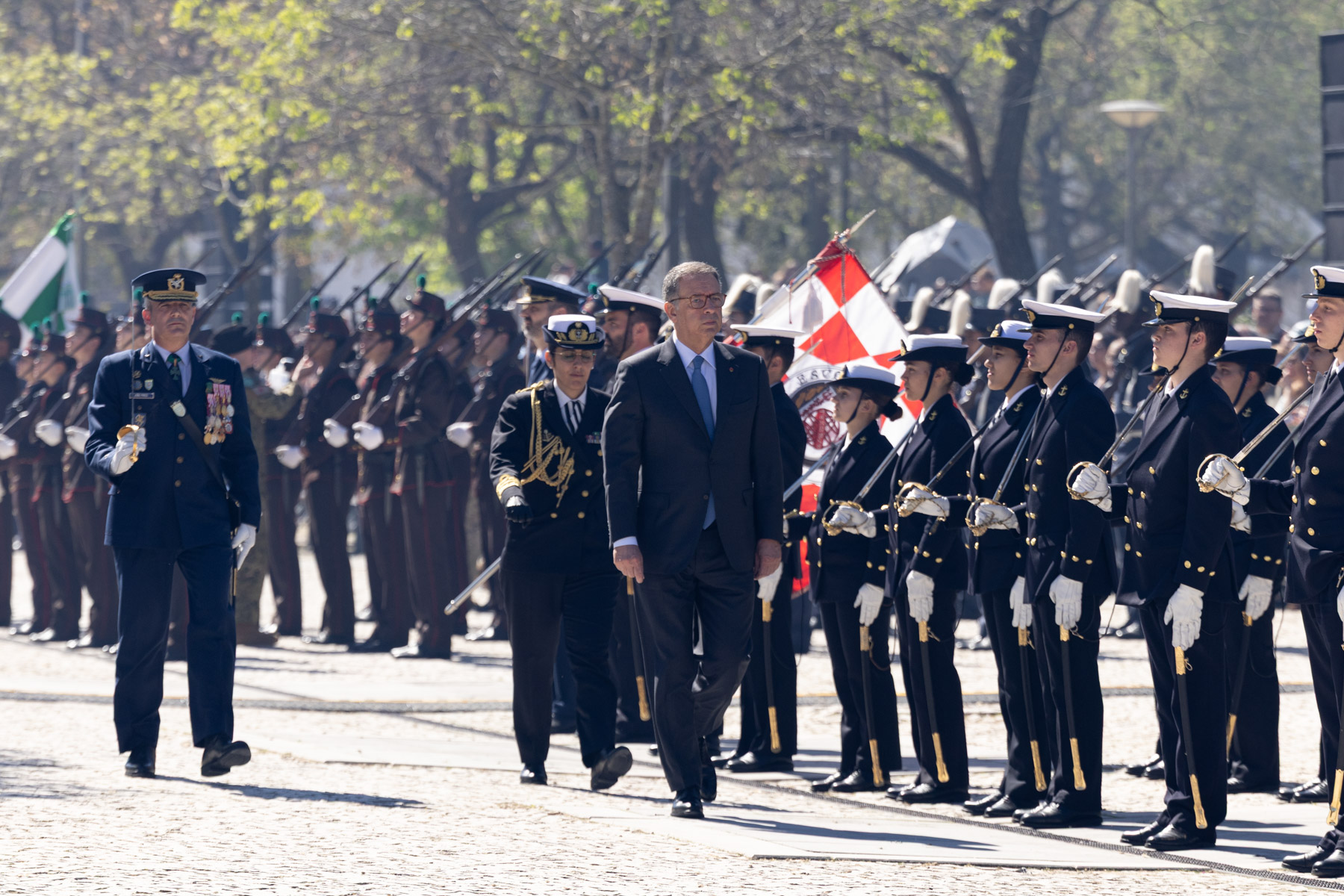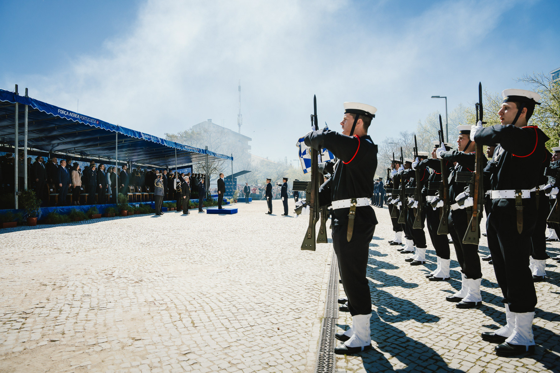 A cerimónia terminou com um desfile das Forças em Parada, das Forças equipadas para Combate, a aterragem de militares da equipa de Paraquedistas Falcões Negros do Exército Português, que transportaram a Bandeira Nacional a qual foi depois dobrada e entregue ao Presidente da República.