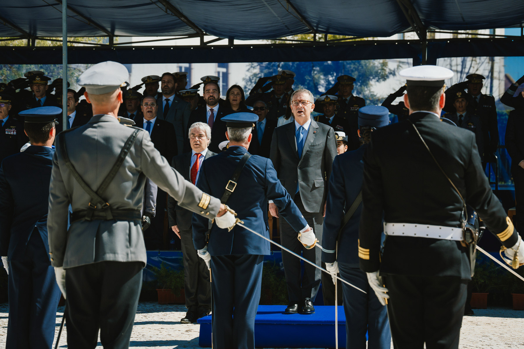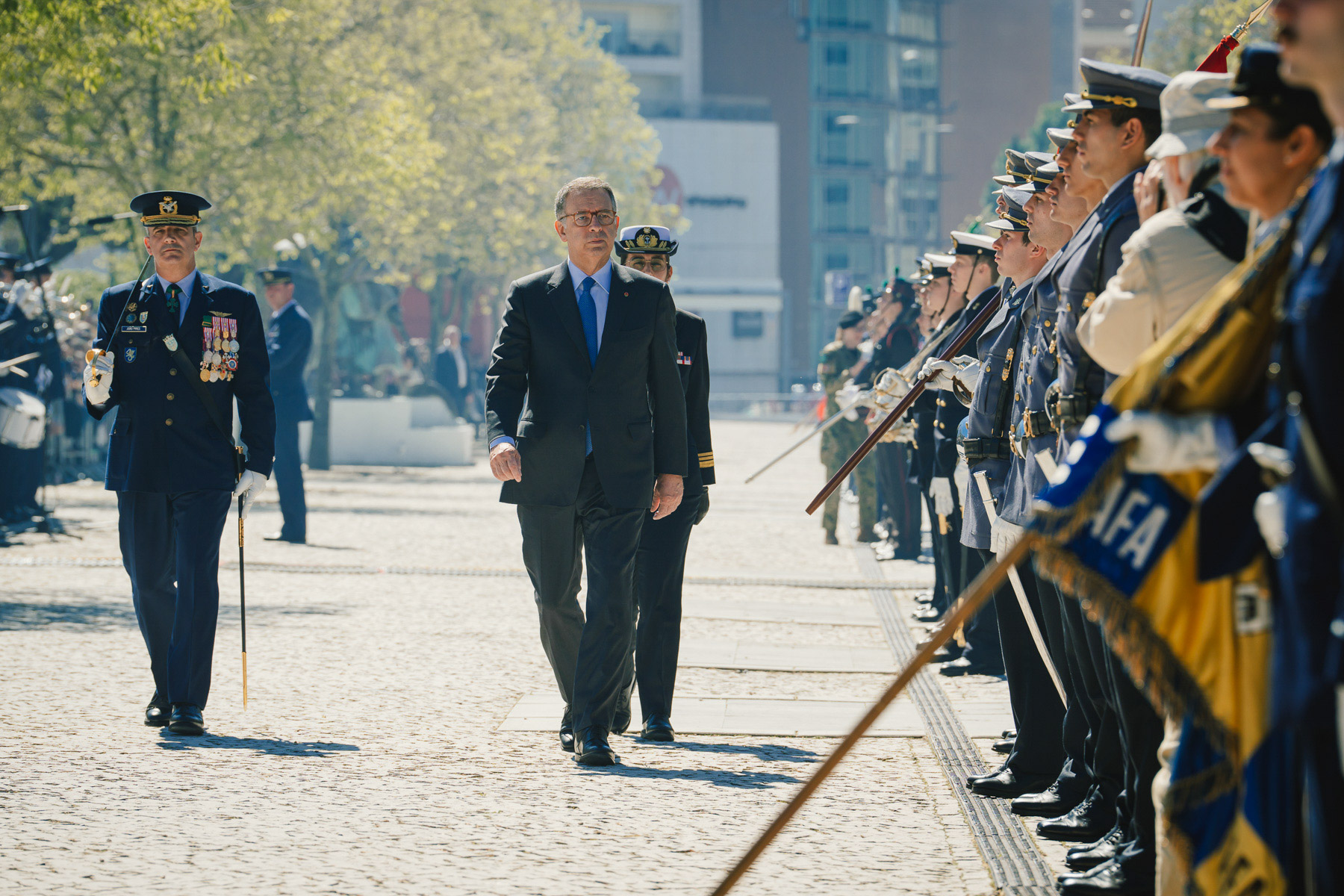 O Comandante Supremo discursou depois perante os militares dos três ramos das Forças Armadas Portuguesas enaltecendo o seu valor e a sua prontidão ao serviço de Portugal.