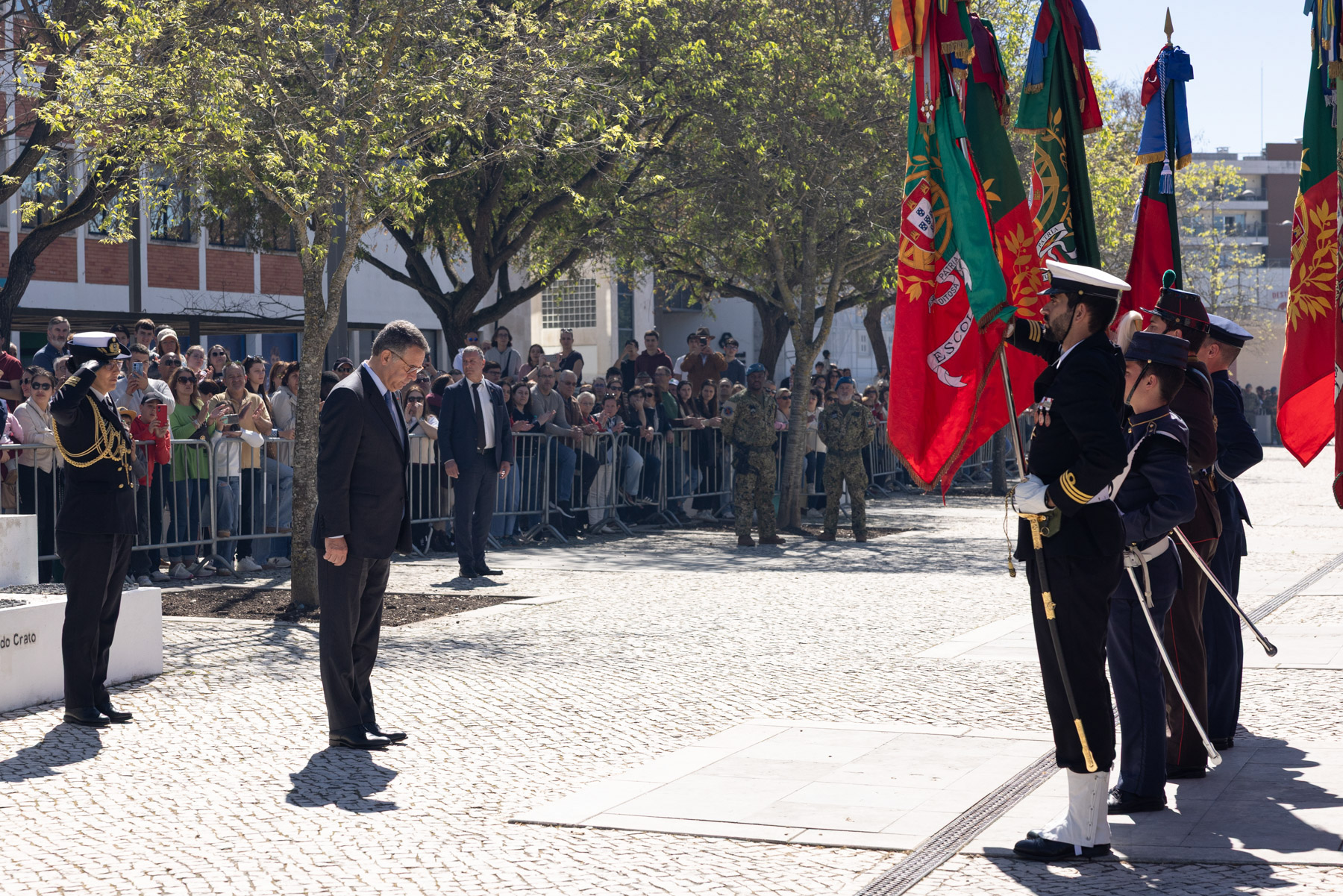 Após ser recebido pelo Ministro da Defesa Nacional, Nuno Melo, e pelo Chefe do Estado-Maior-General das Forças Armadas, General João Cartaxo Alves, o Presidente António José Seguro recebeu as devidas Honras Militares pelas Forças em Parada, a que se seguiu a cerimónia de homenagem aos mortos em combate e a interveção do Chefe do Estado-Maior-General das Forças Armadas.