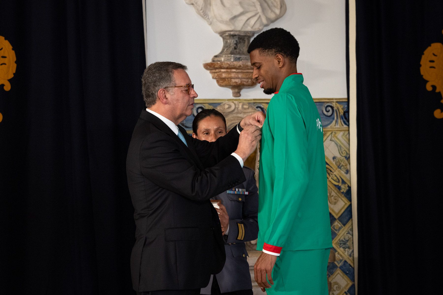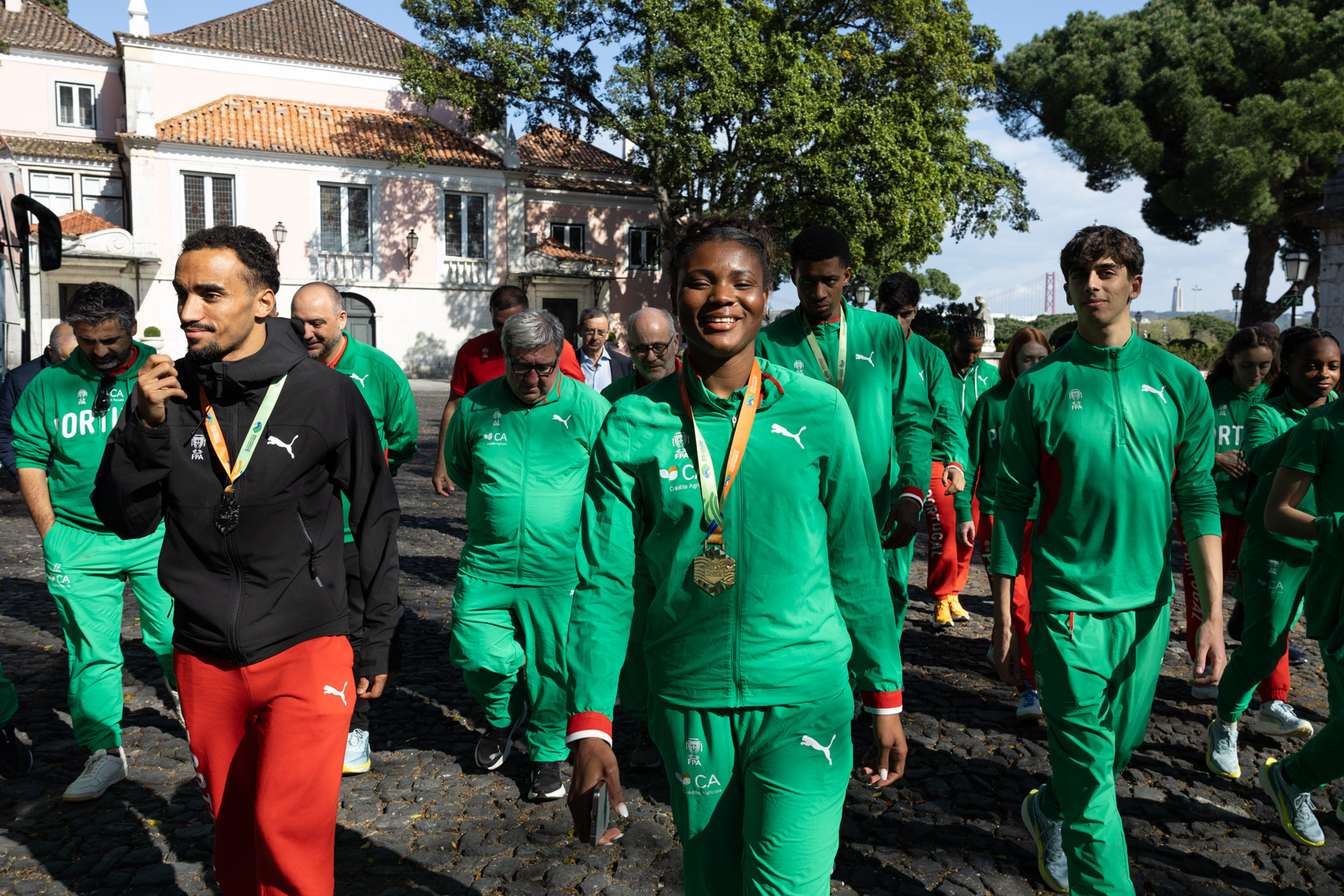 Na cerimónia, onde estiveram presentes o Primeiro-Ministro, Luís Montenegro, o Presidente do Comité Olímpico de Portugal, Fernando Gomes, e o Presidente da Federeção Portuguesa de Atletismo, Domingos Castro, o Presidente da República condecorou, com o grau de Oficial da Ordem do Mérito, os três atletas medalhados nestes mundiais: Agate de Sousa, Gerson Baldé e Isaac Nader.