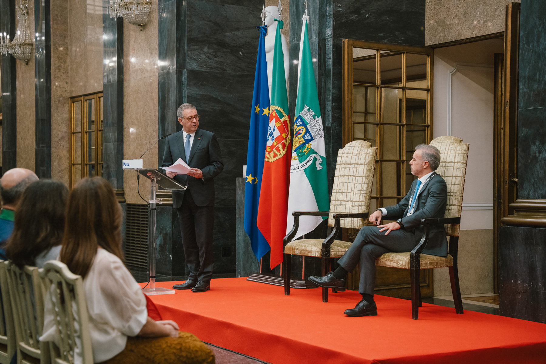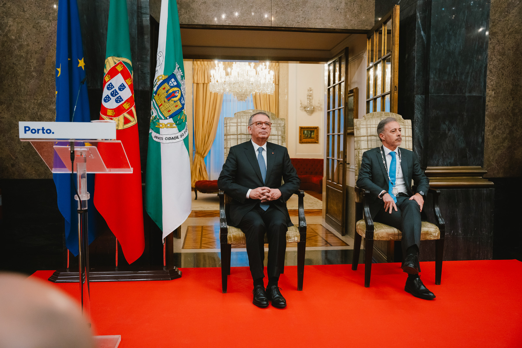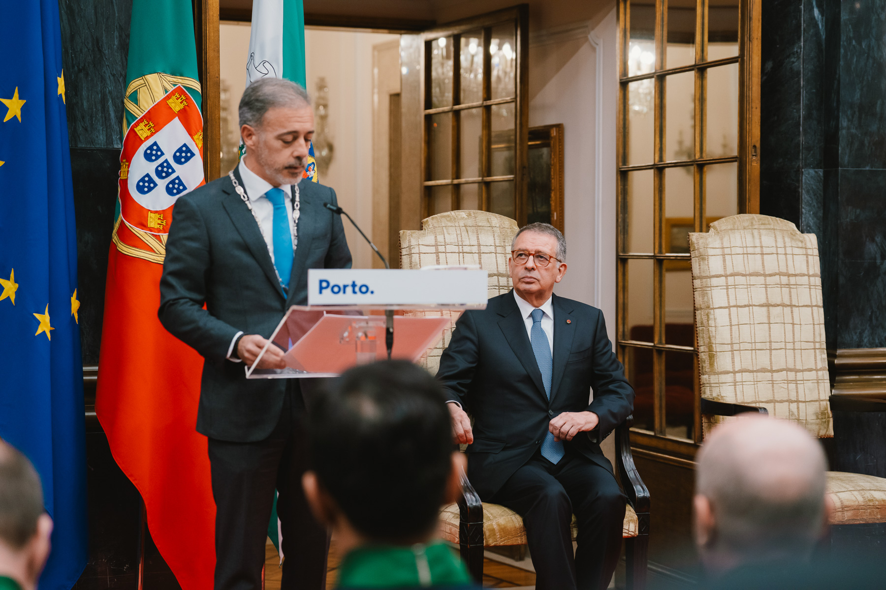 O Presidente António José Seguro foi recebido, nos Paços do Concelho do Porto, pelo Edil Pedro Duarte, que, no final da sua intervenção, assinalou esta visita entregando um prato com o brasão da cidade ao Chefe de Estado.