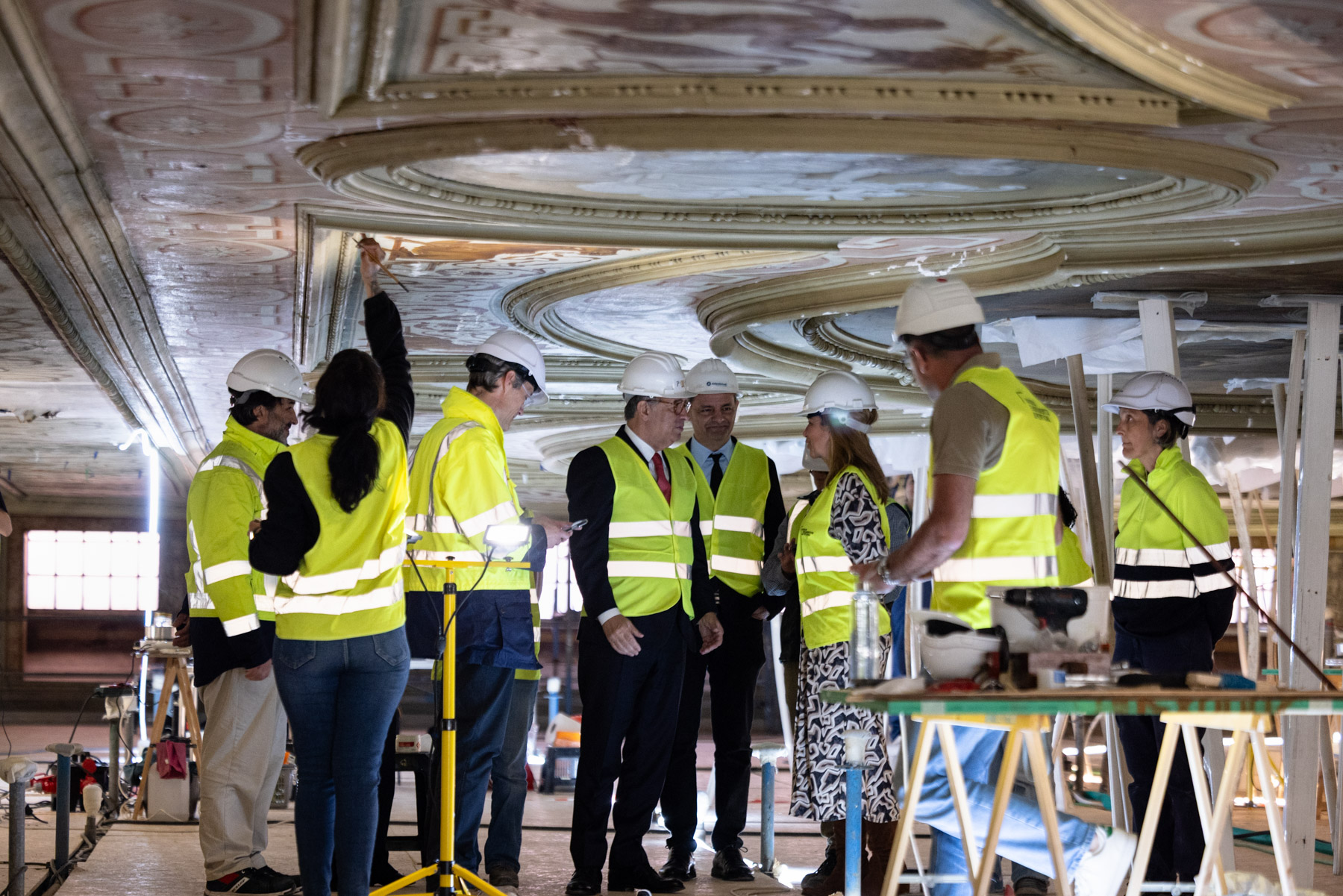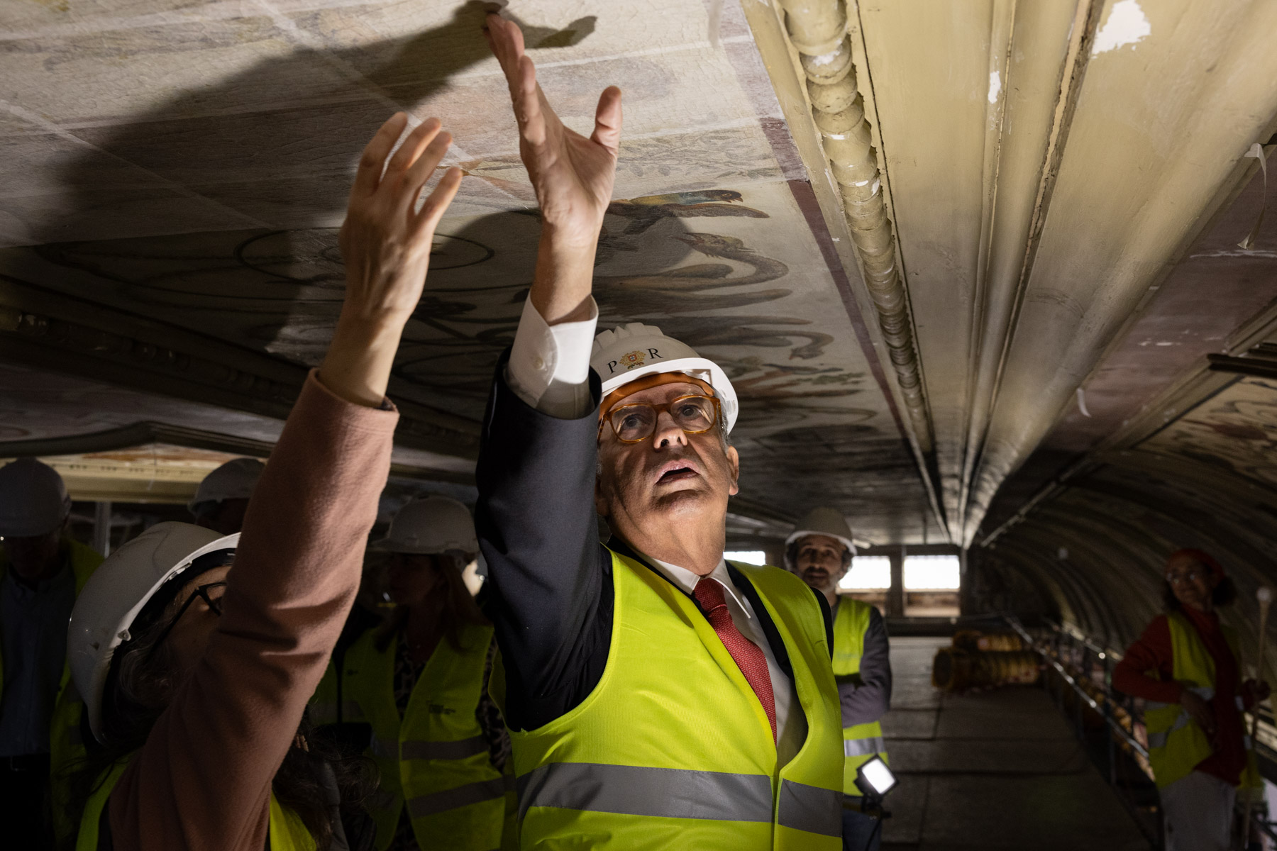 Durante a visita, o Presidente da República foi acompanhado pelo Presidente do Conselho de Administração da Museus e Monumentos de Portugal, Alexandre Nobre Pais, pela Diretora do Museu Nacional dos Coches, Rita Dargent, pelo coordenador do PRR na área da Cultura, André Duque, pelo arquiteto da Presidência da República e coordenador do projeto, Pedro Vaz, e pelo representante do empreiteiro da obra.