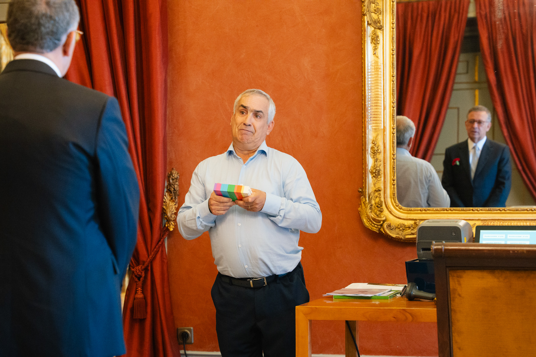O Presidente da República recebeu, no Palácio de Belém, o Presidente da Federação das Associações Portuguesas de Paralisia Cerebral, Rui Alexandre Matos Coimbras, que apresentou e fez uma demonstração de um mecanismo de apoio aos atos eleitorais para pessoas com deficiência e incapacidade.