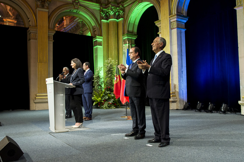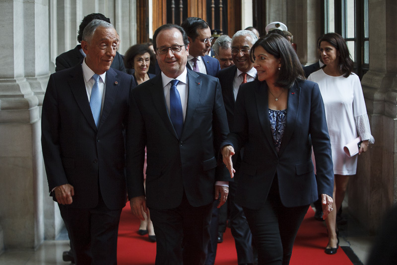 As Comemorações Oficiais do Dia de Portugal, de Camões e das Comunidades Portuguesas prosseguiram na Câmara de Paris, onde o Chefe de Estado Português e o Primeiro-Ministro, acompanhados pelo Presidente Francês, foram recebidos pela Presidente da Câmara de Paris, Anne Hidalgo.